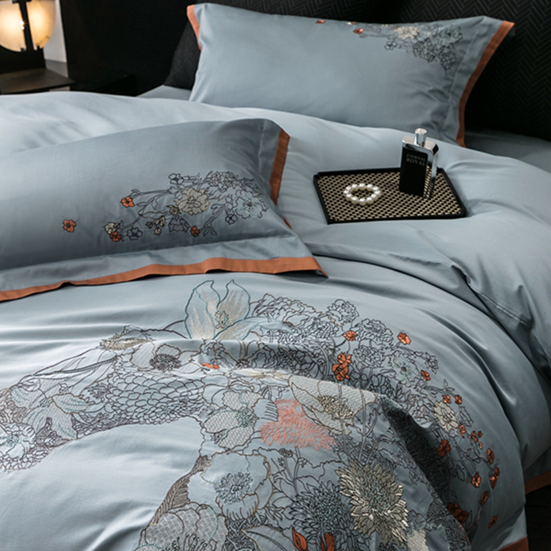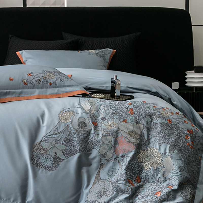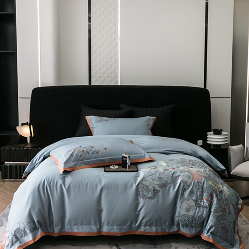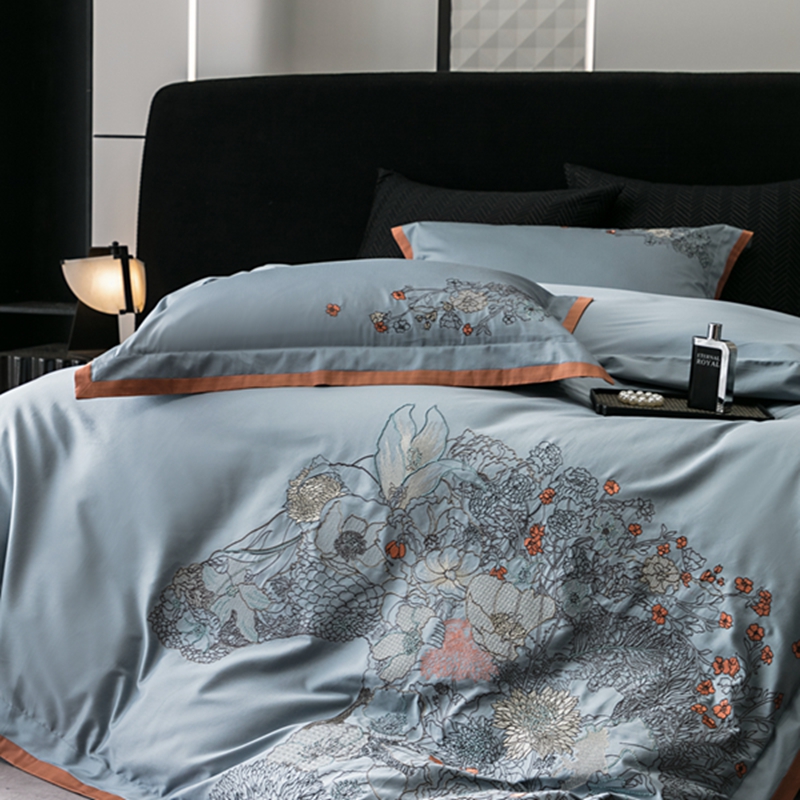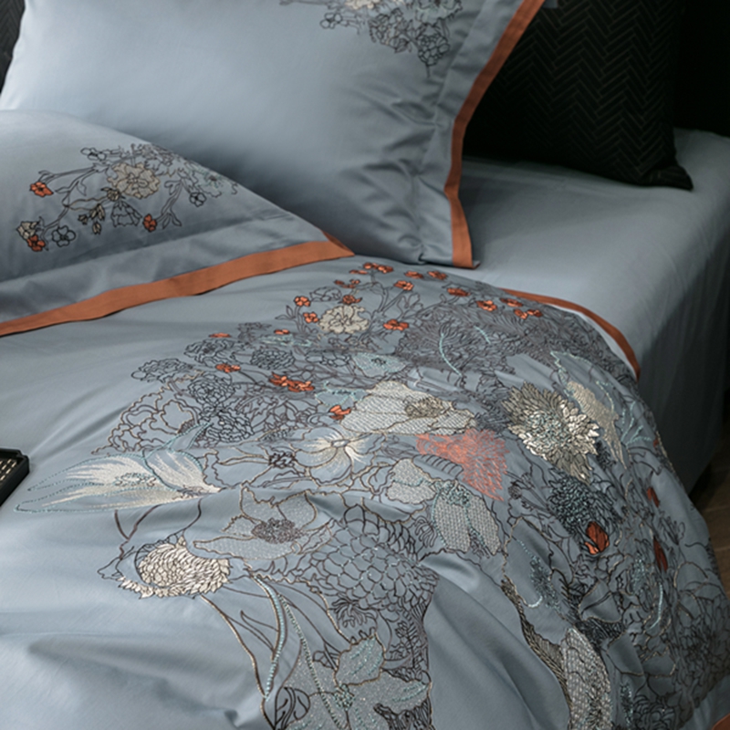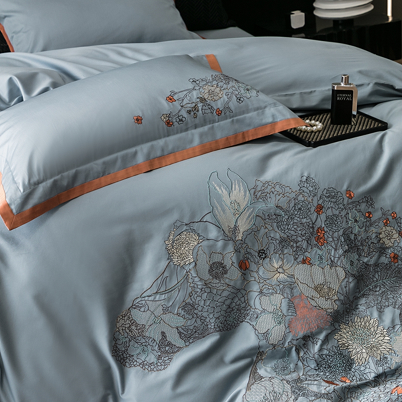 商品名称:云胡 2024新款50s双股长绒棉 精工刺绣 宽边工艺四件套 马德里-蓝