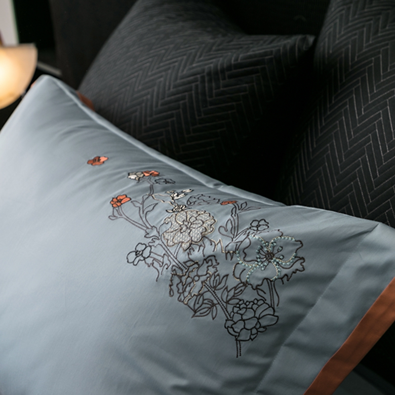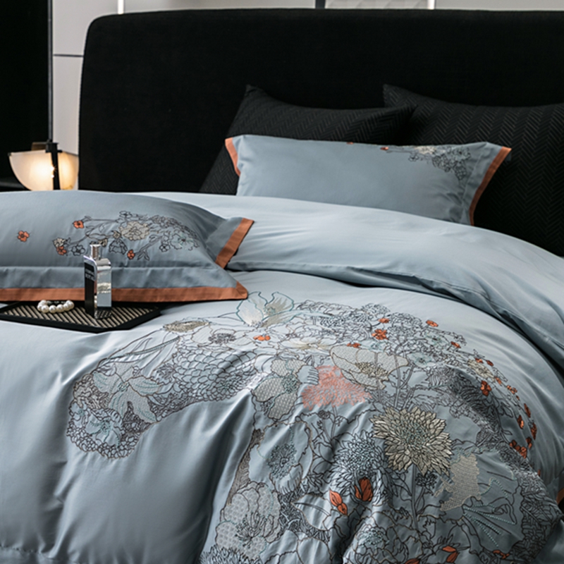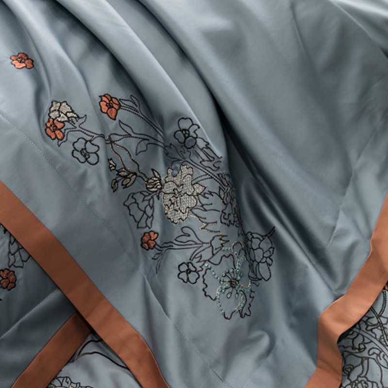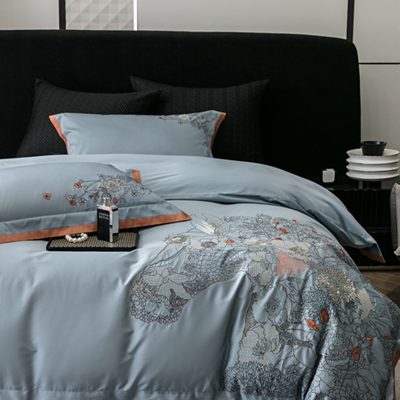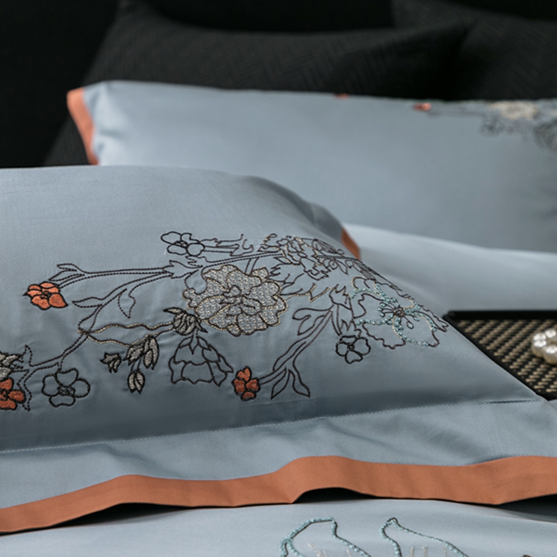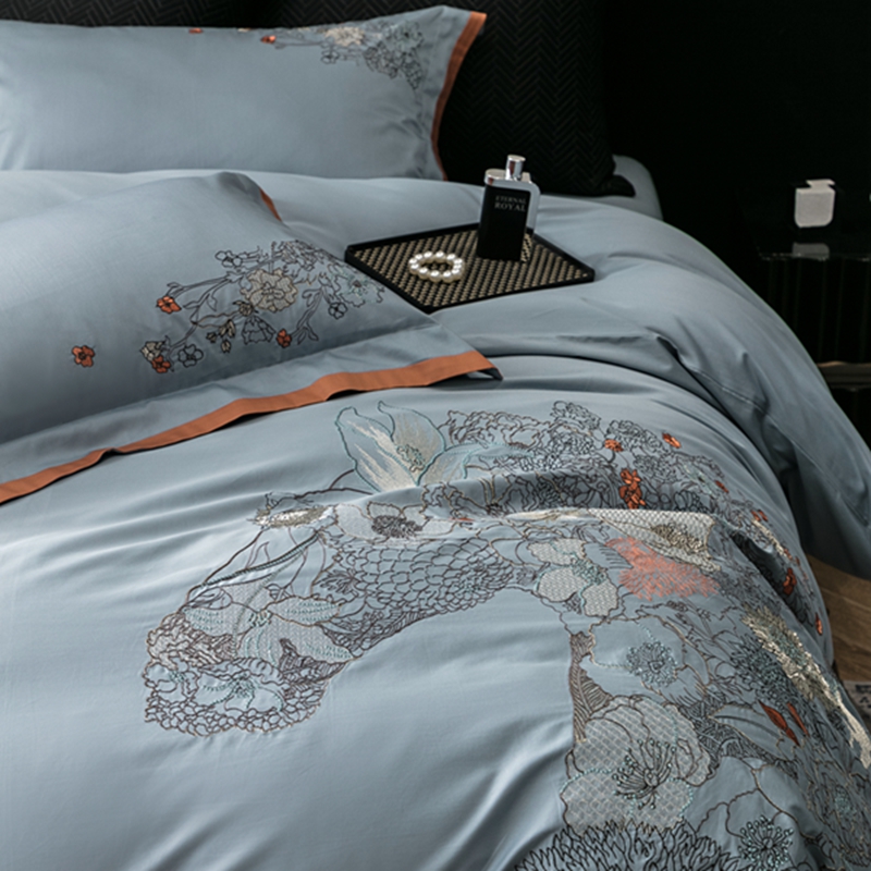 商品名称:云胡 2024新款50s双股长绒棉 精工刺绣 宽边工艺四件套 马德里-蓝