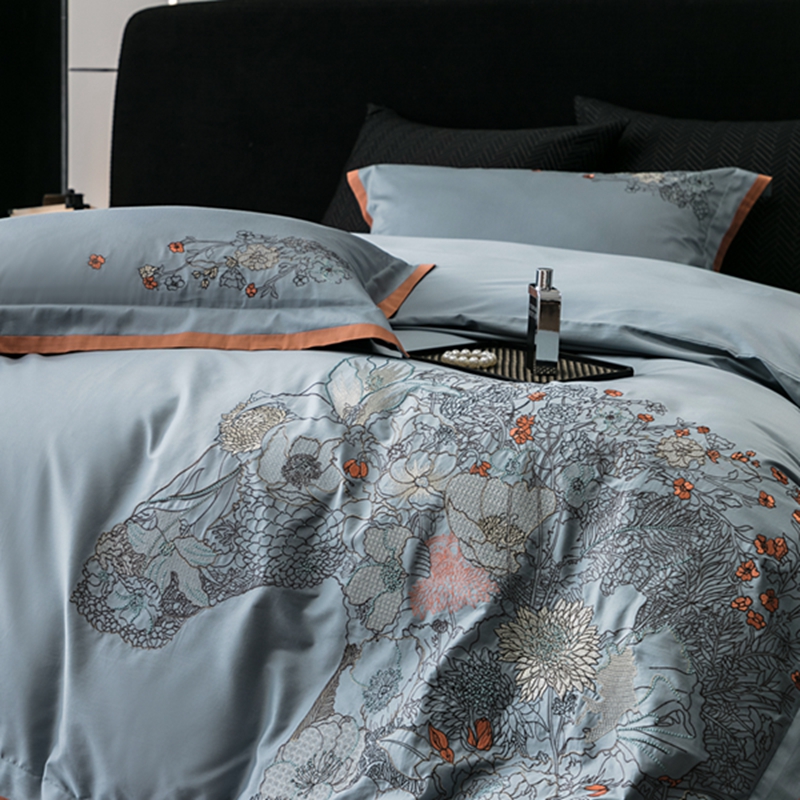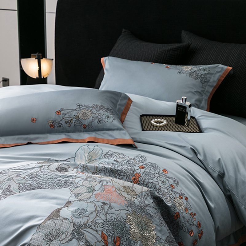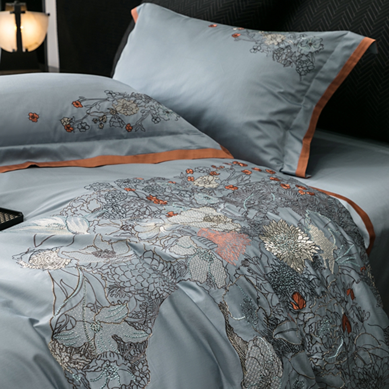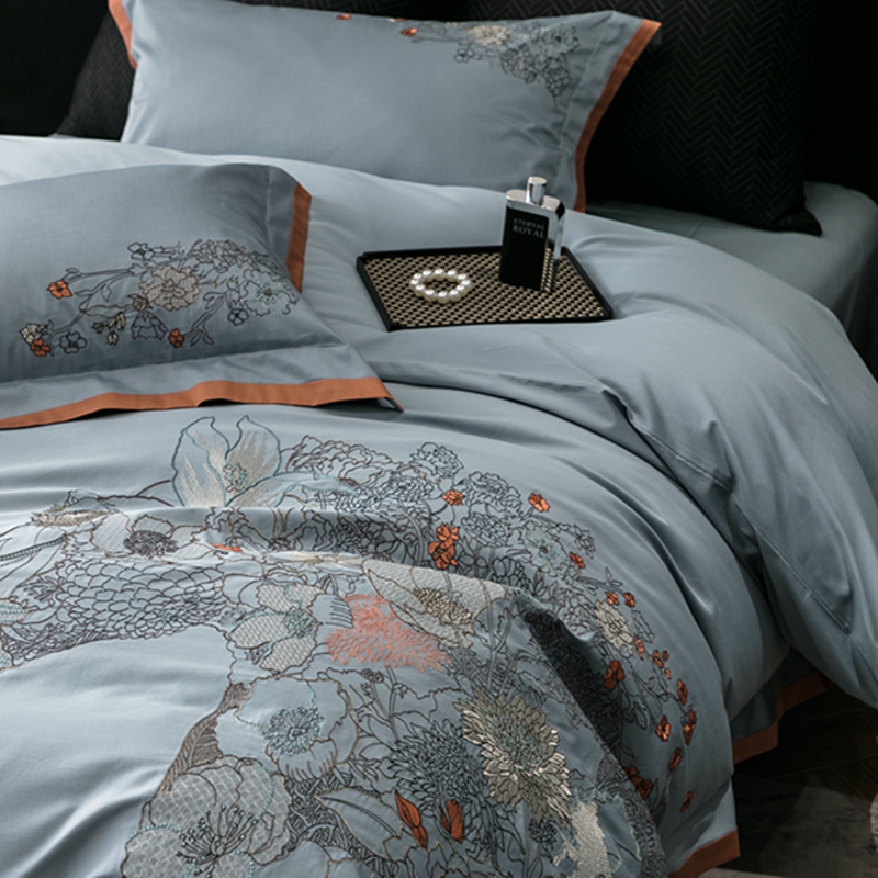 云胡 2024新款50s双股长绒棉 精工刺绣 宽边工艺四件套 马德里-蓝