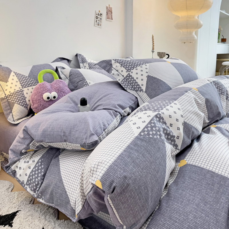 商品名称:云锦家居 2024新款13070纯棉印花吊边款一字绣四件套 菱形格