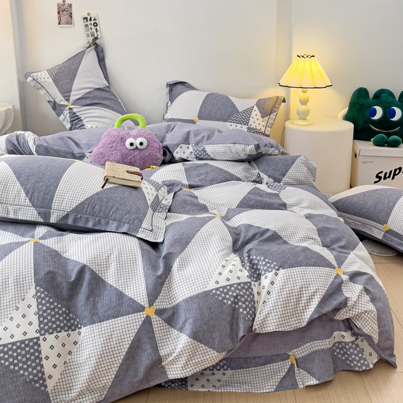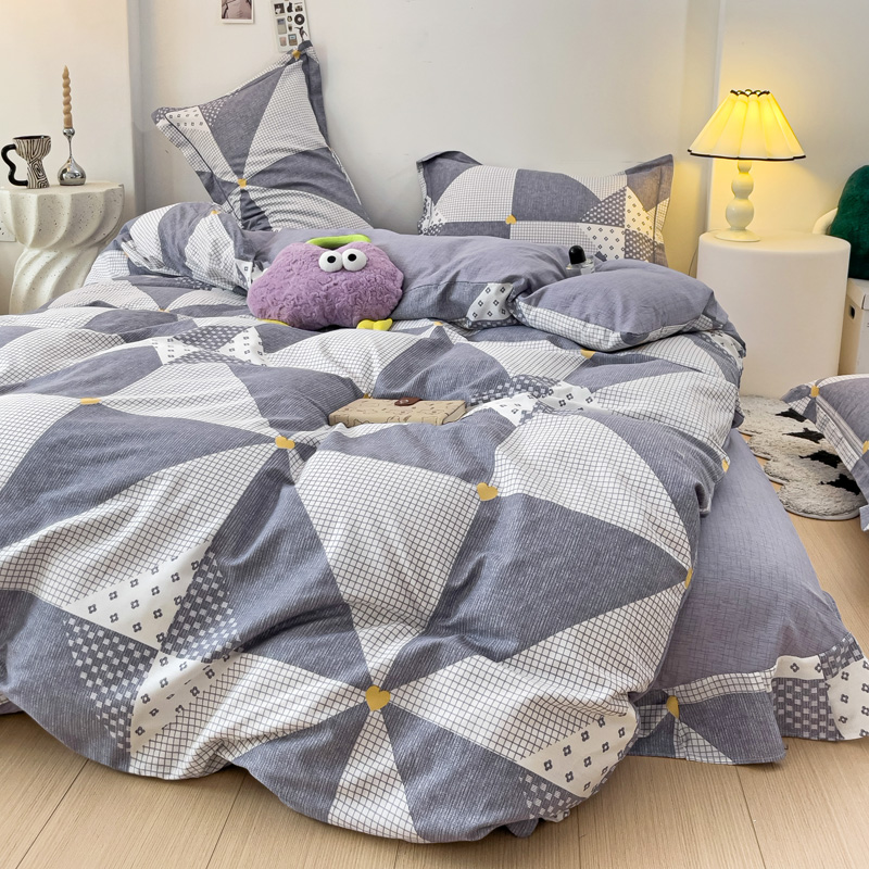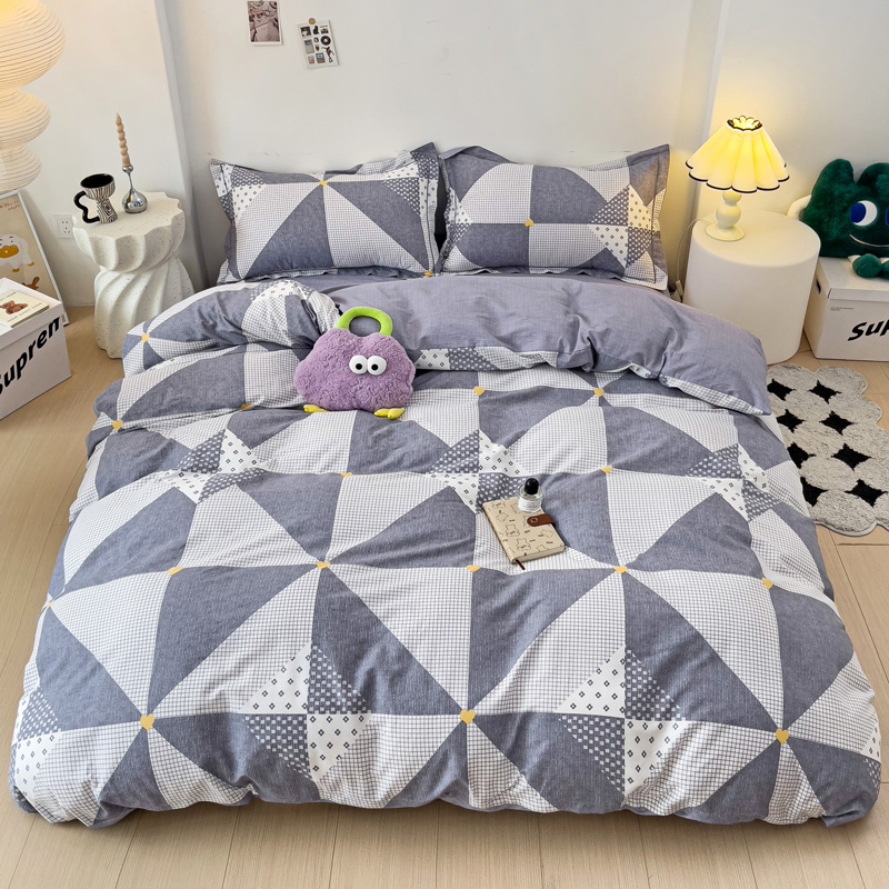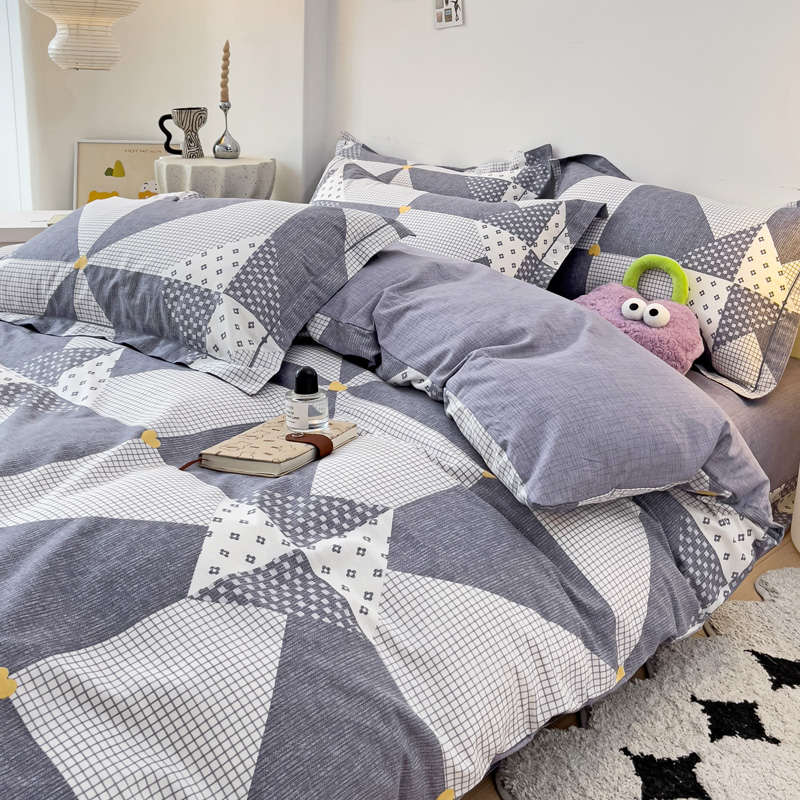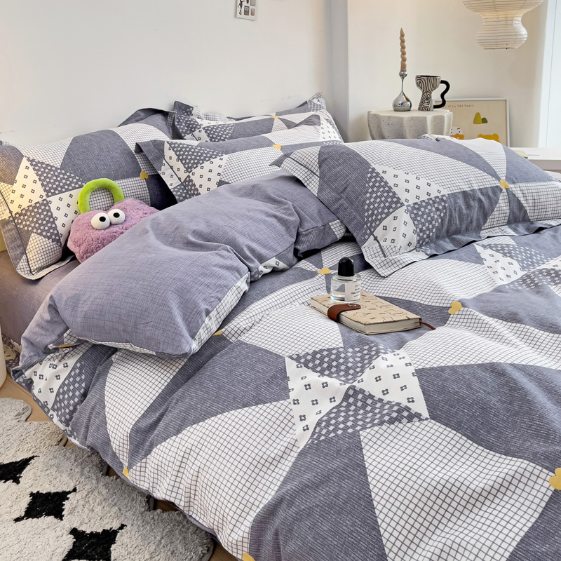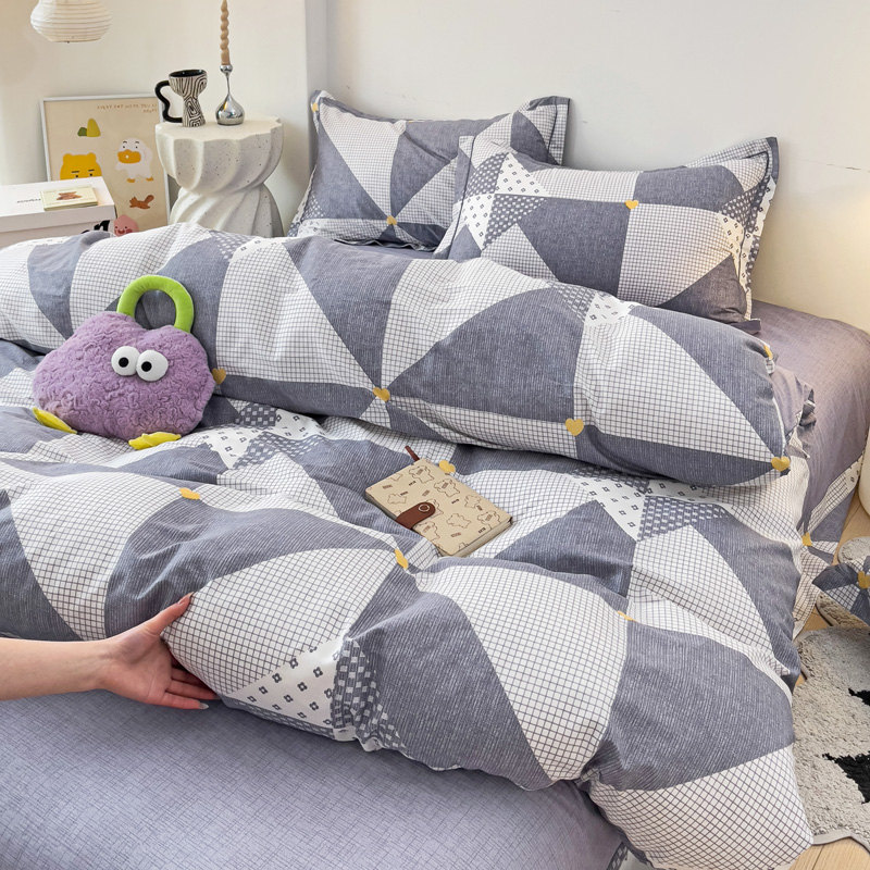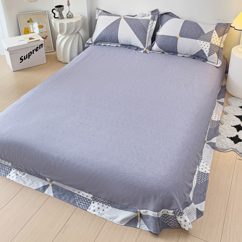 云锦家居 2024新款13070纯棉印花吊边款一字绣四件套 菱形格