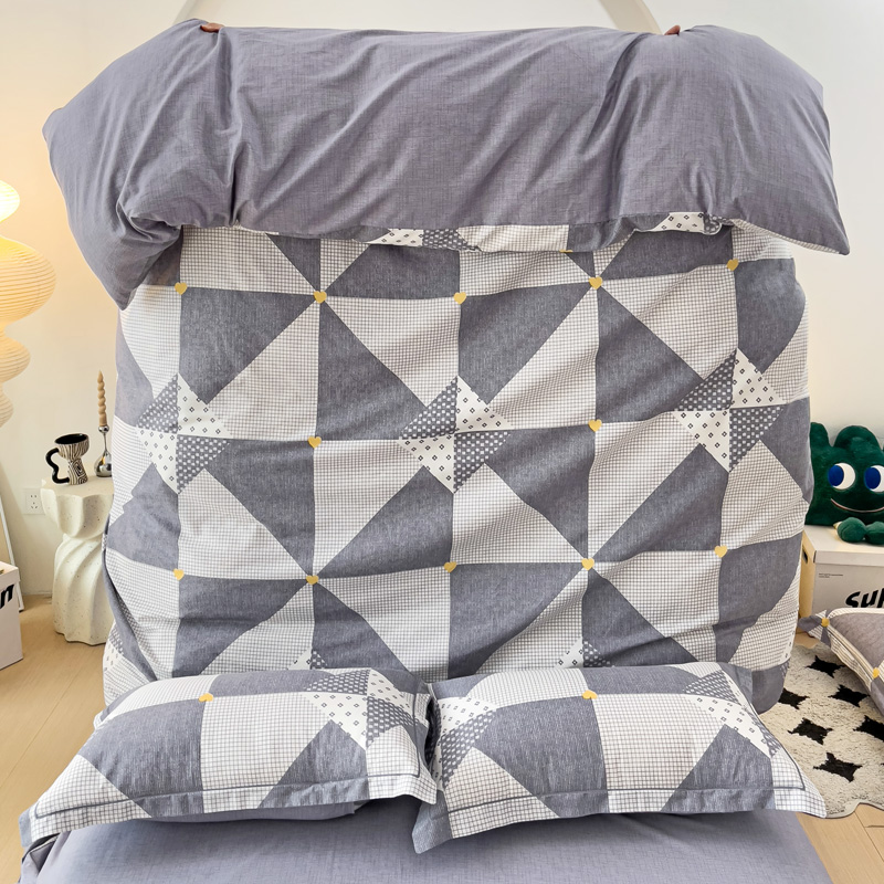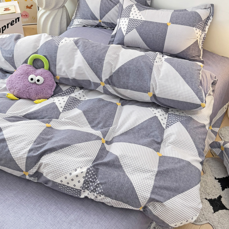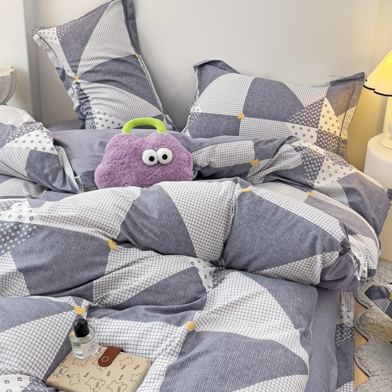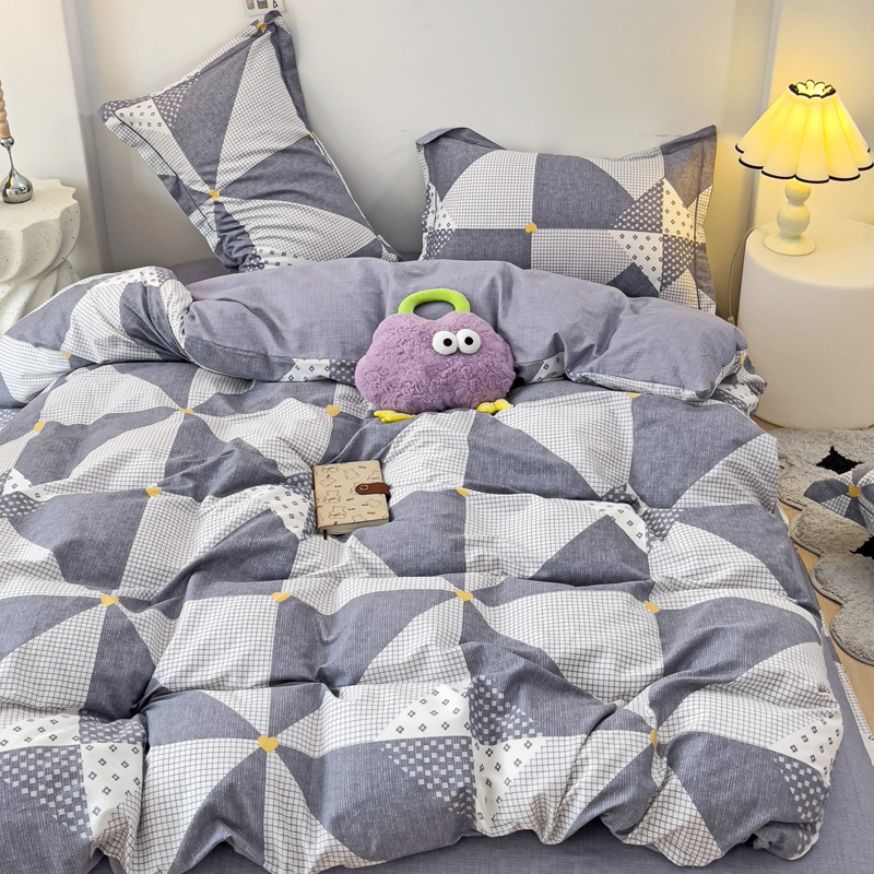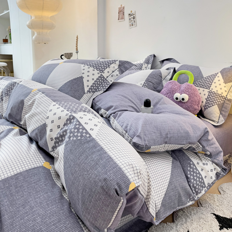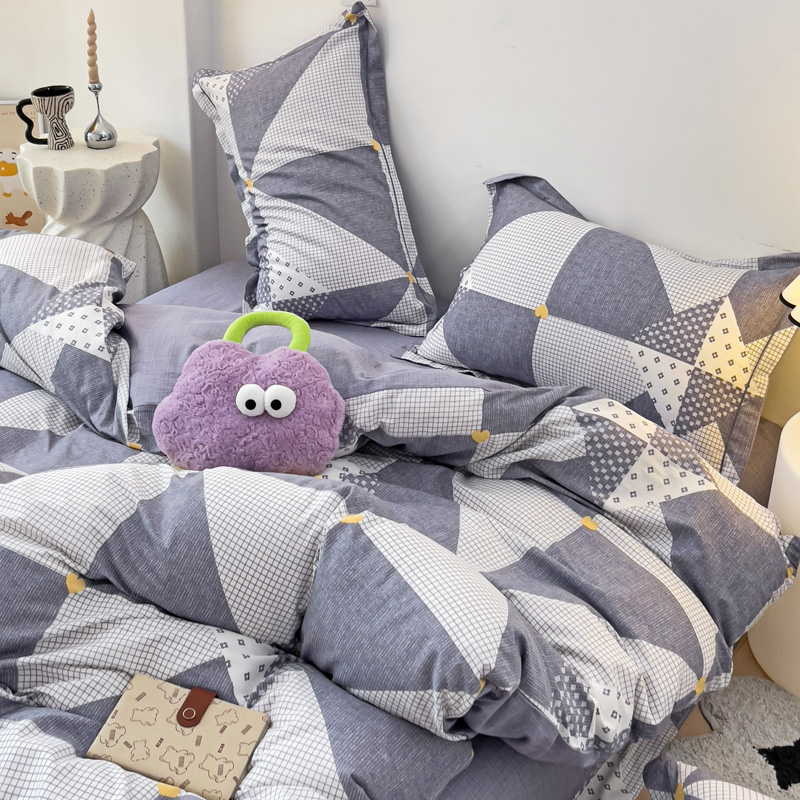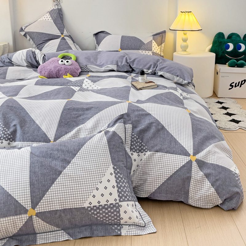 云锦家居 2024新款13070纯棉印花吊边款一字绣四件套 菱形格