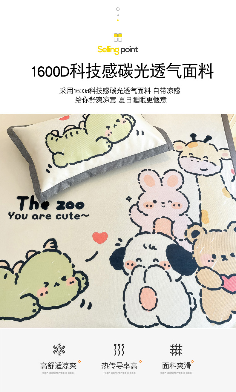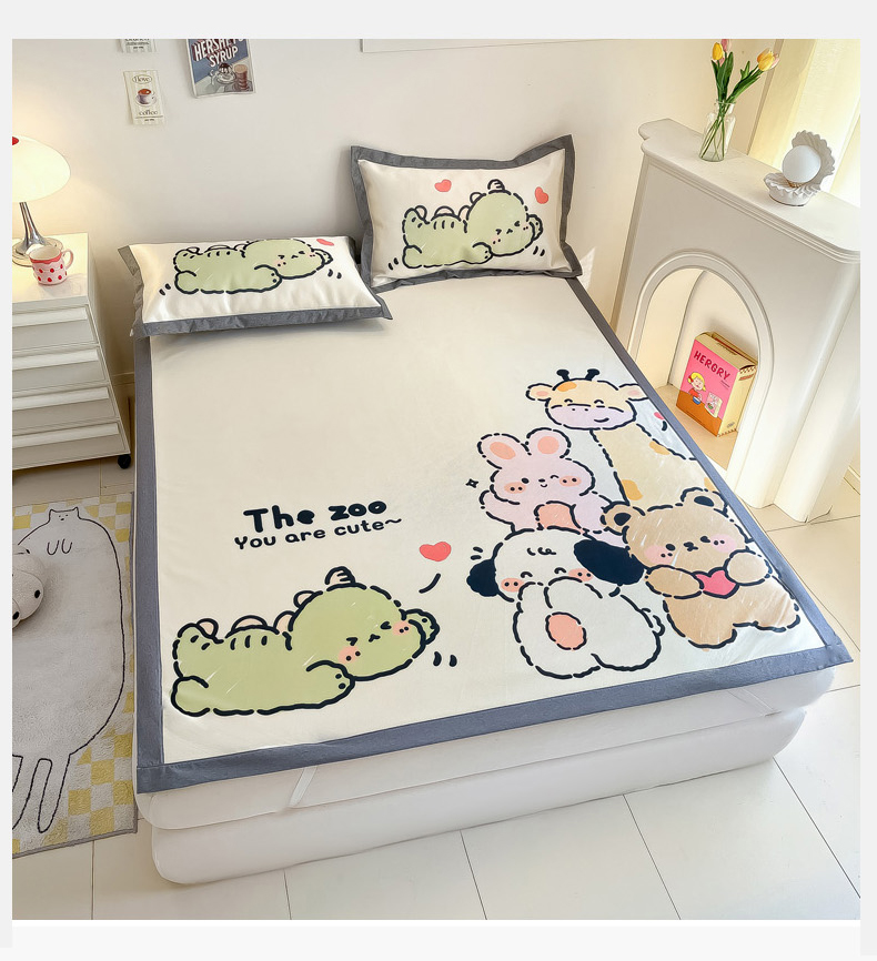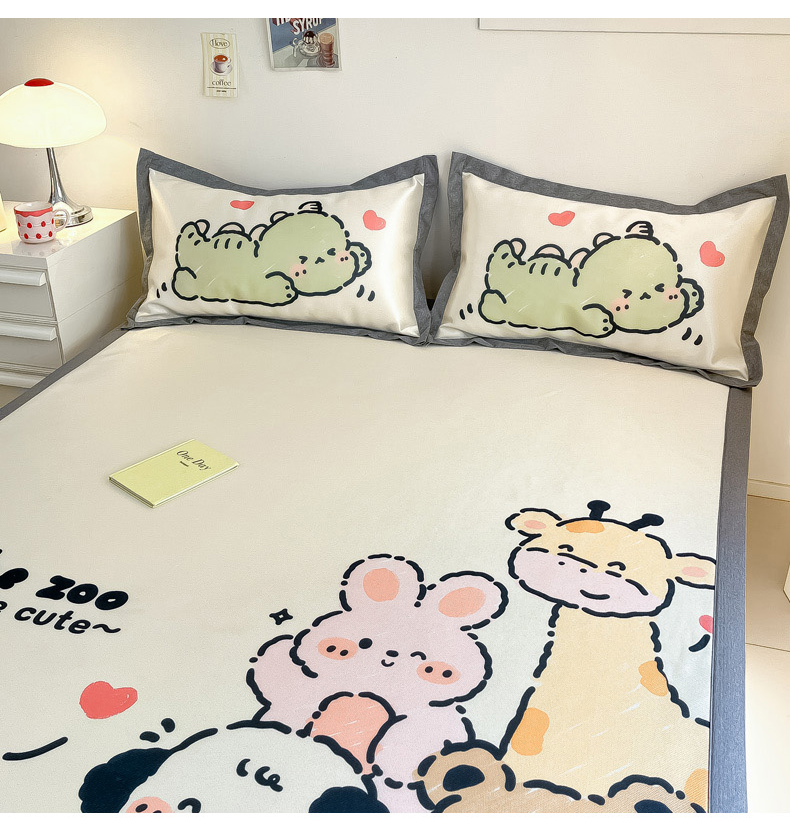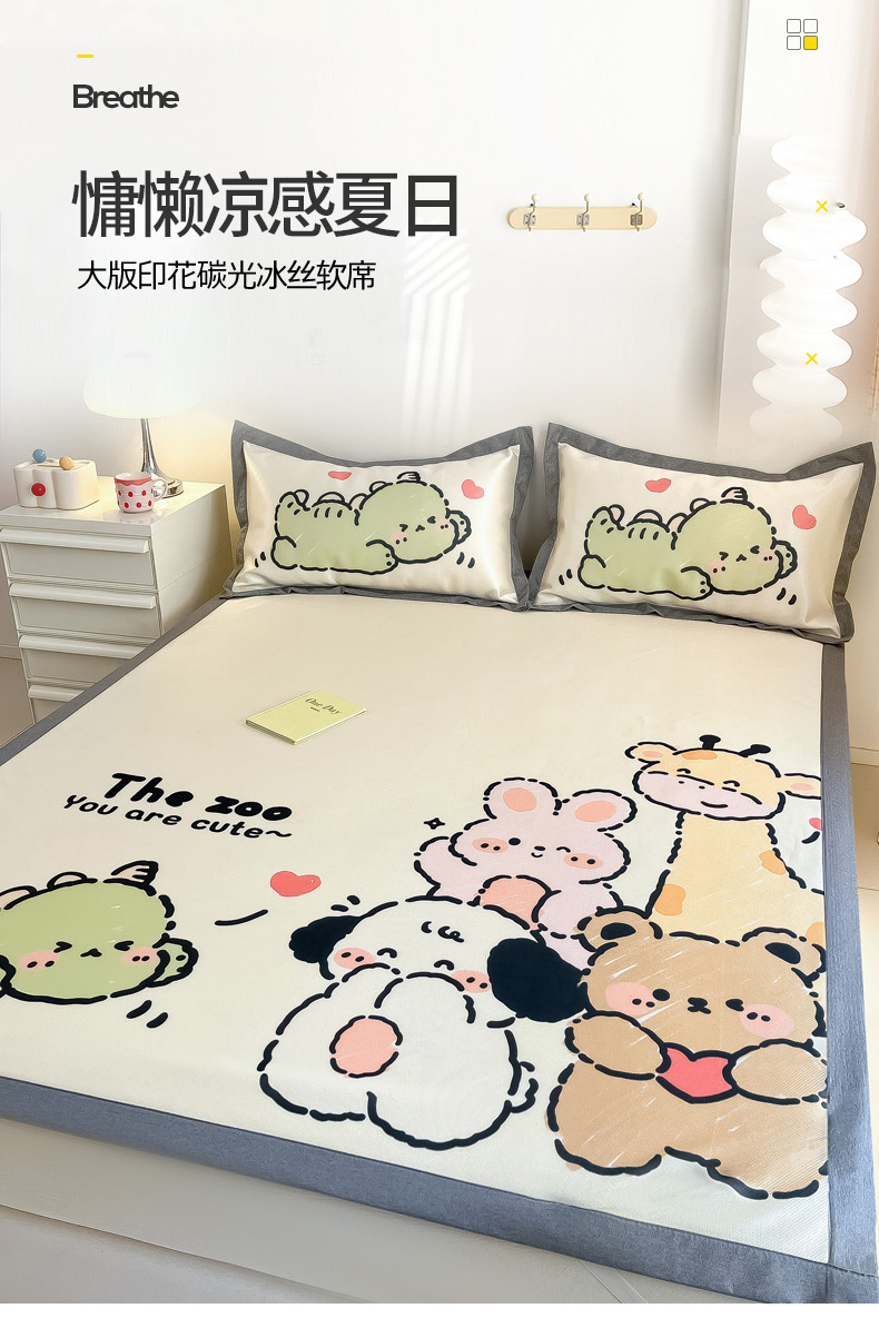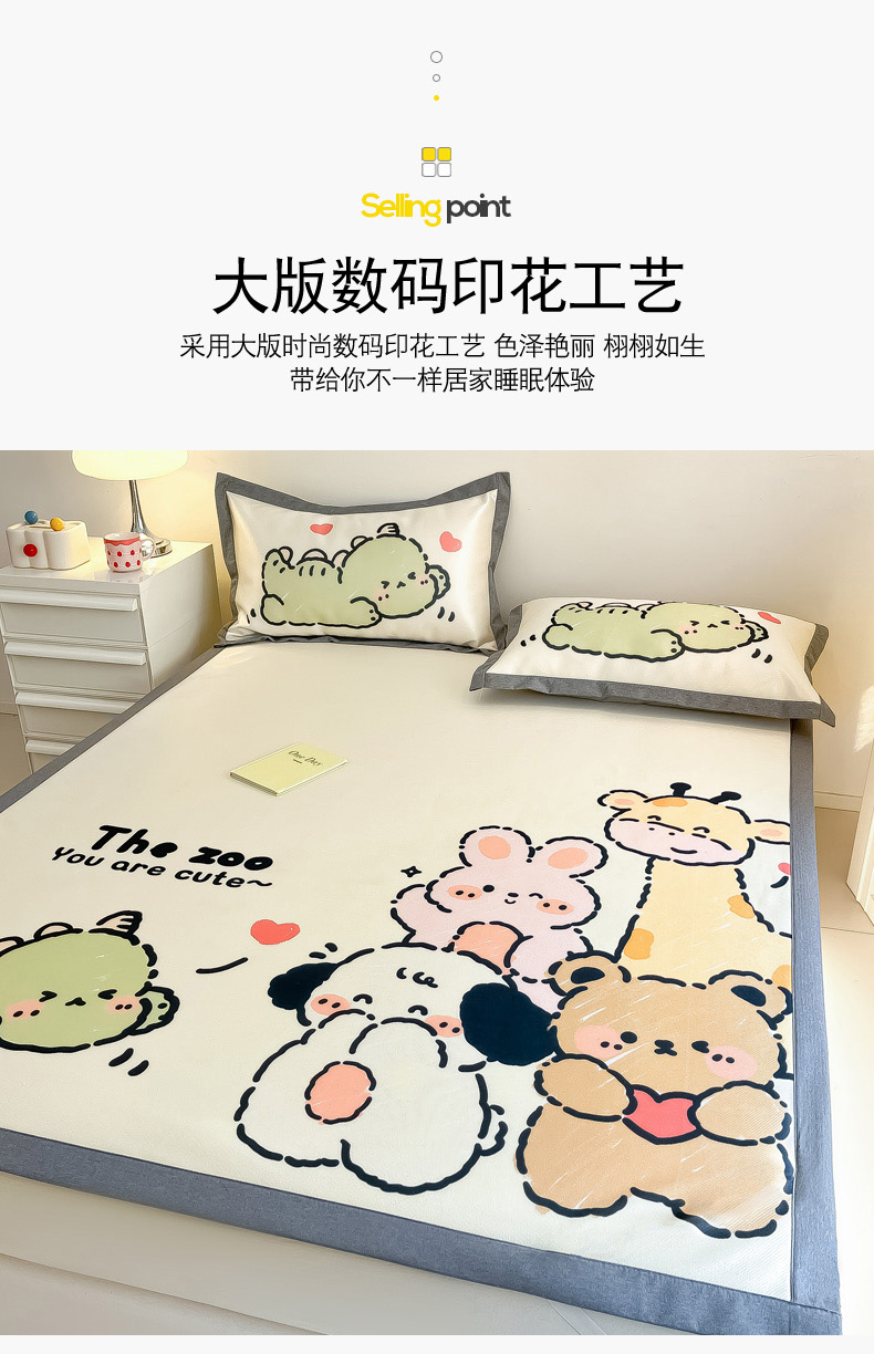 商品名称:柒月 2024新款大版数码印花1600D加厚碳光冰丝席 动物派对