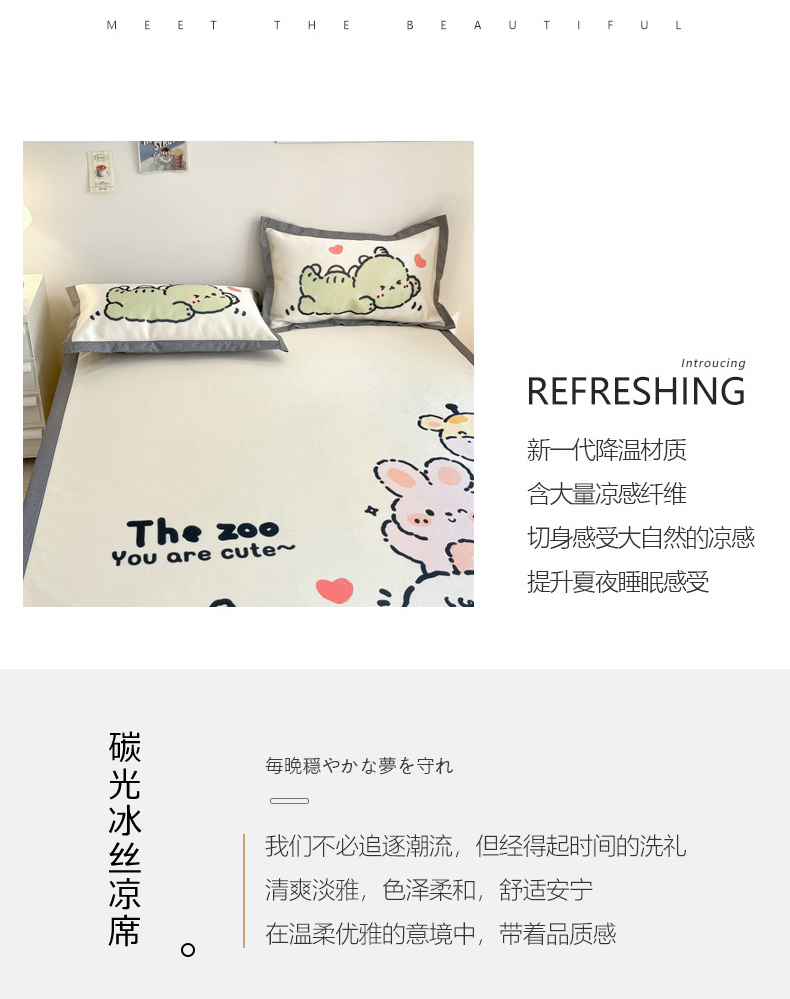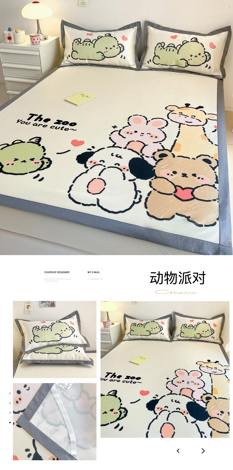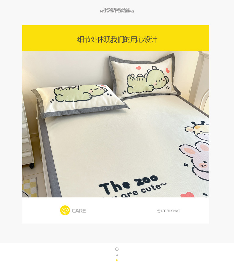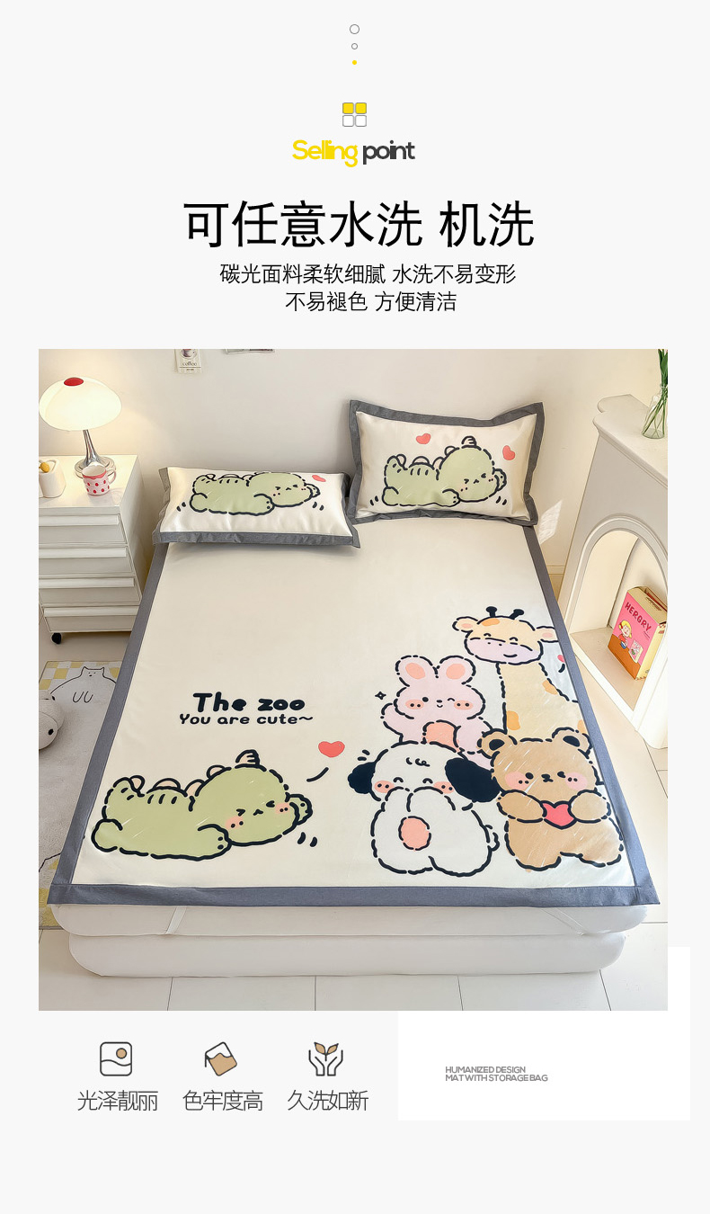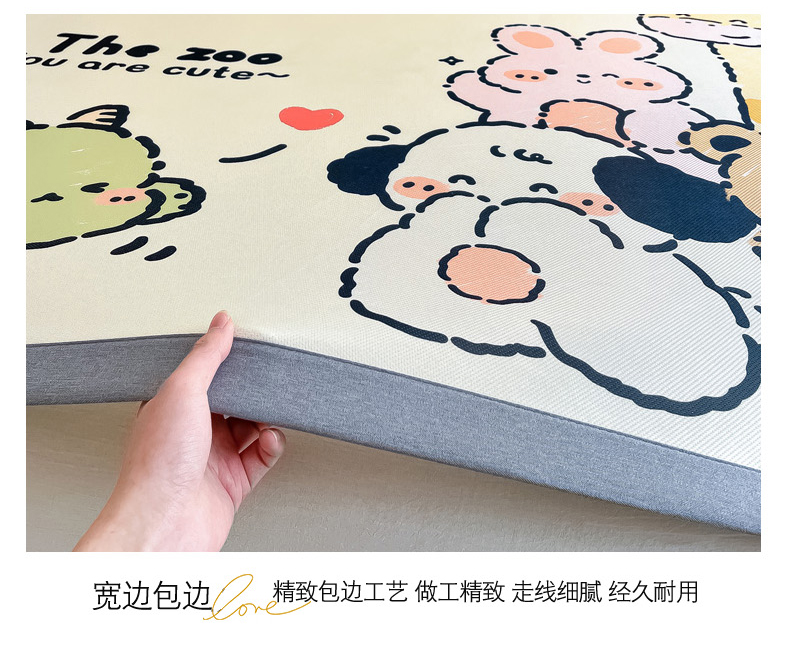 商品名称:柒月 2024新款大版数码印花1600D加厚碳光冰丝席 动物派对