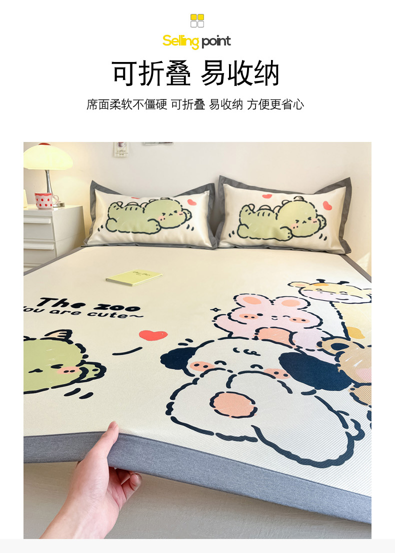 (总)柒月家居 2025新款印花冰藤席(学生床),猫猫日记,爱心布布,爱心蝴蝶结,背影猫,呆萌企鹅,粉色花海,风华-绿,格格熊,花蔓,绿茵,熊猫团子,夜空,字母熊宝