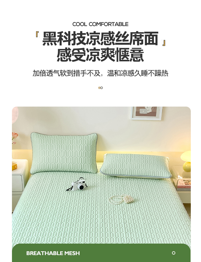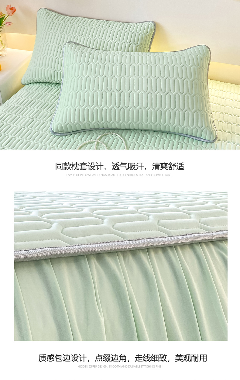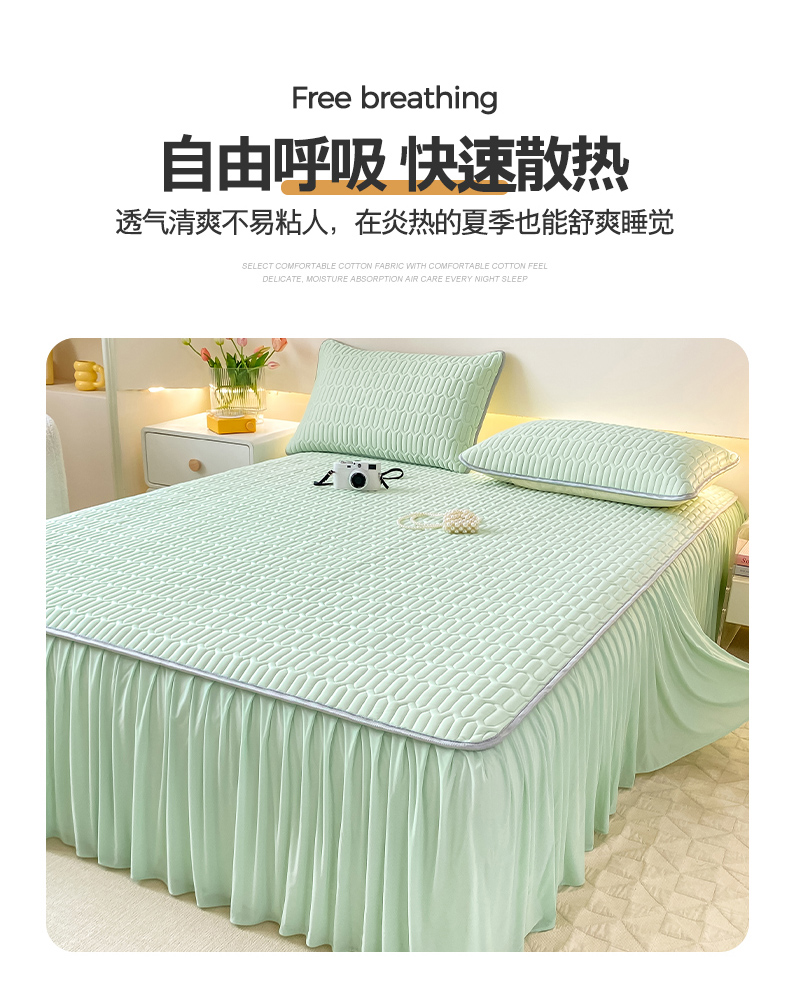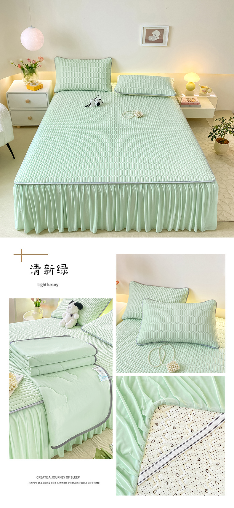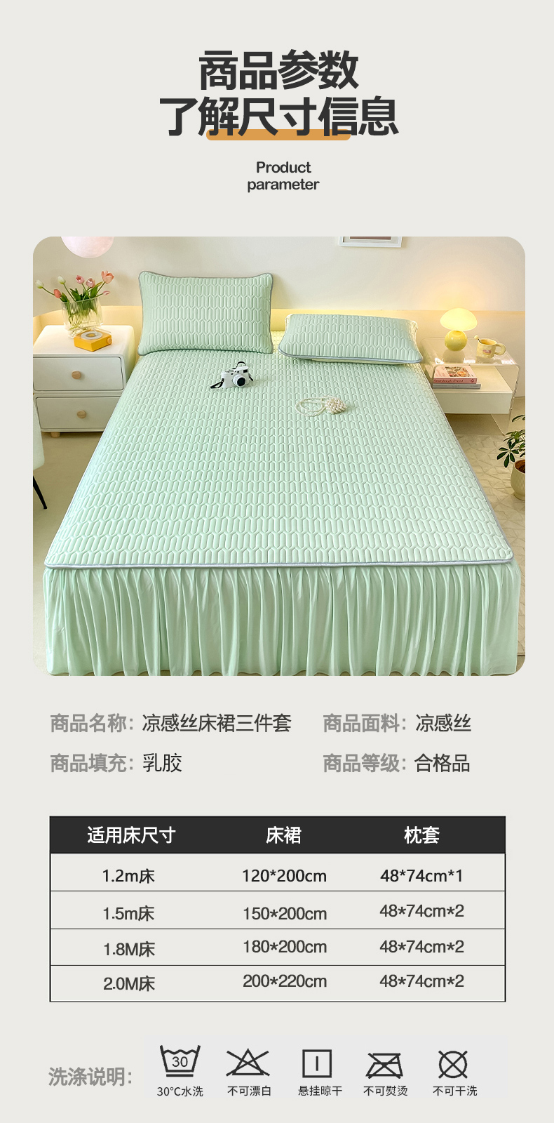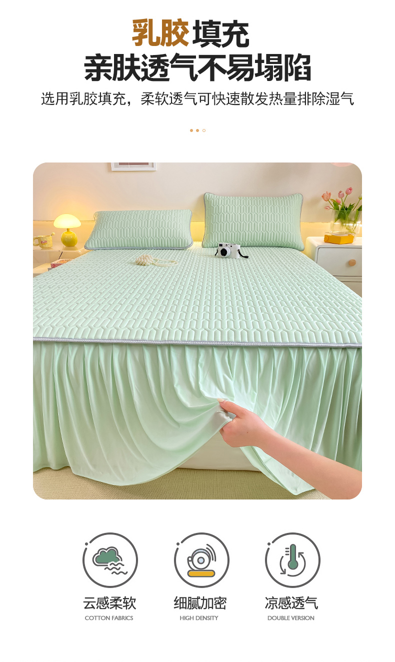 当前位置: 91家纺网 > 商品网购 > 床上用品 > 凉席 > 乳胶凉席 > 康纳利 2024新款纯色加厚床裙乳胶凉席三件套夏被四件套 清新绿