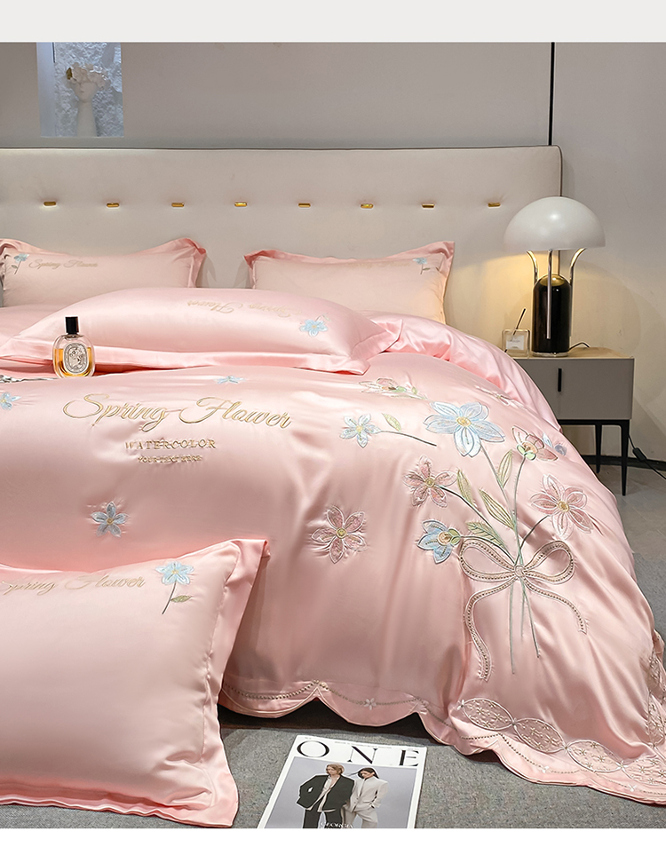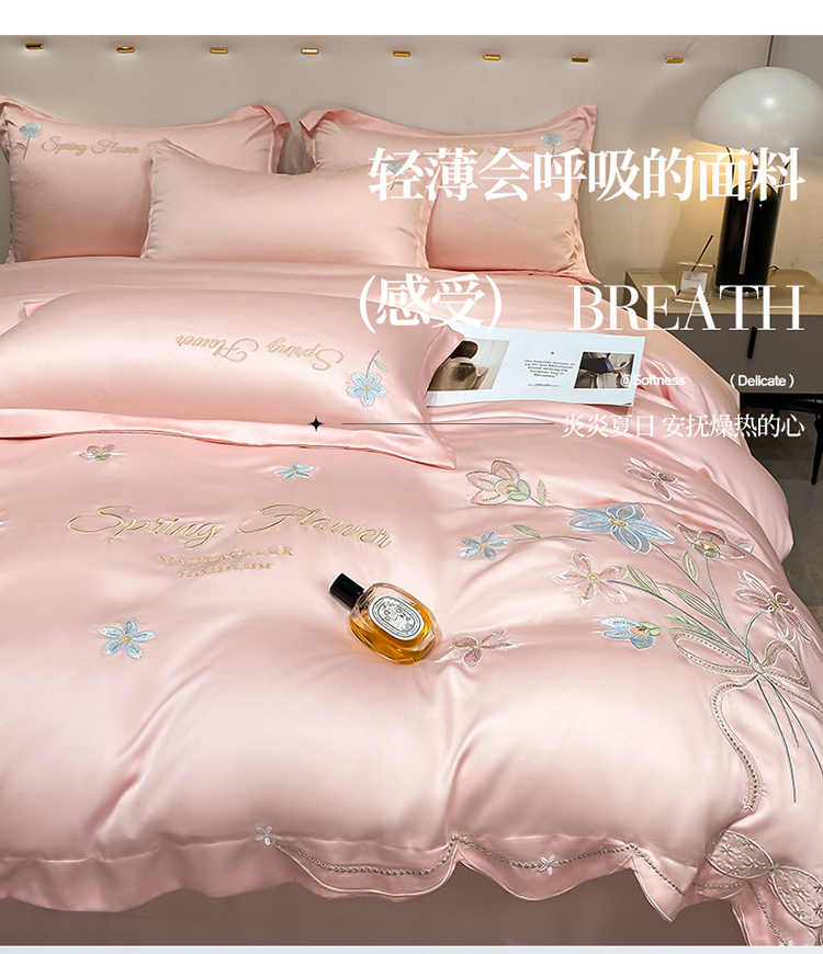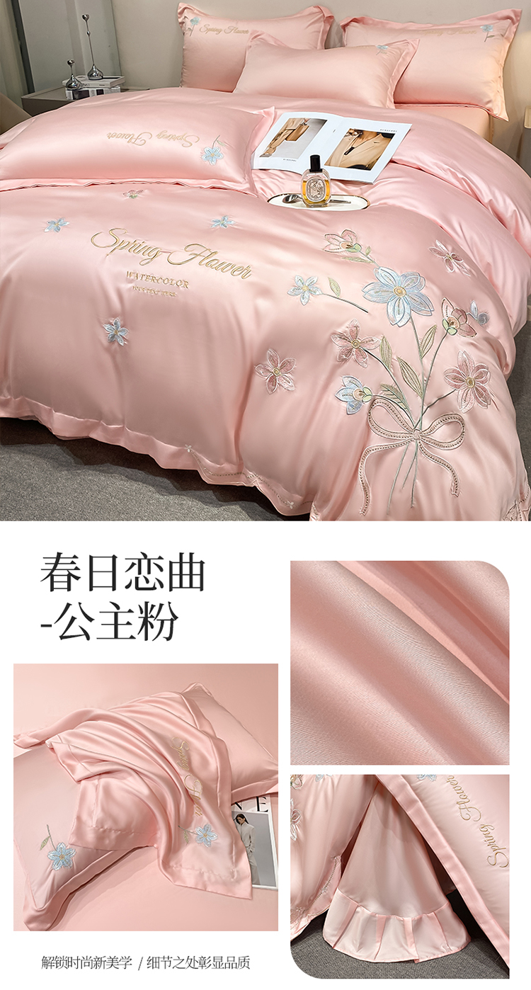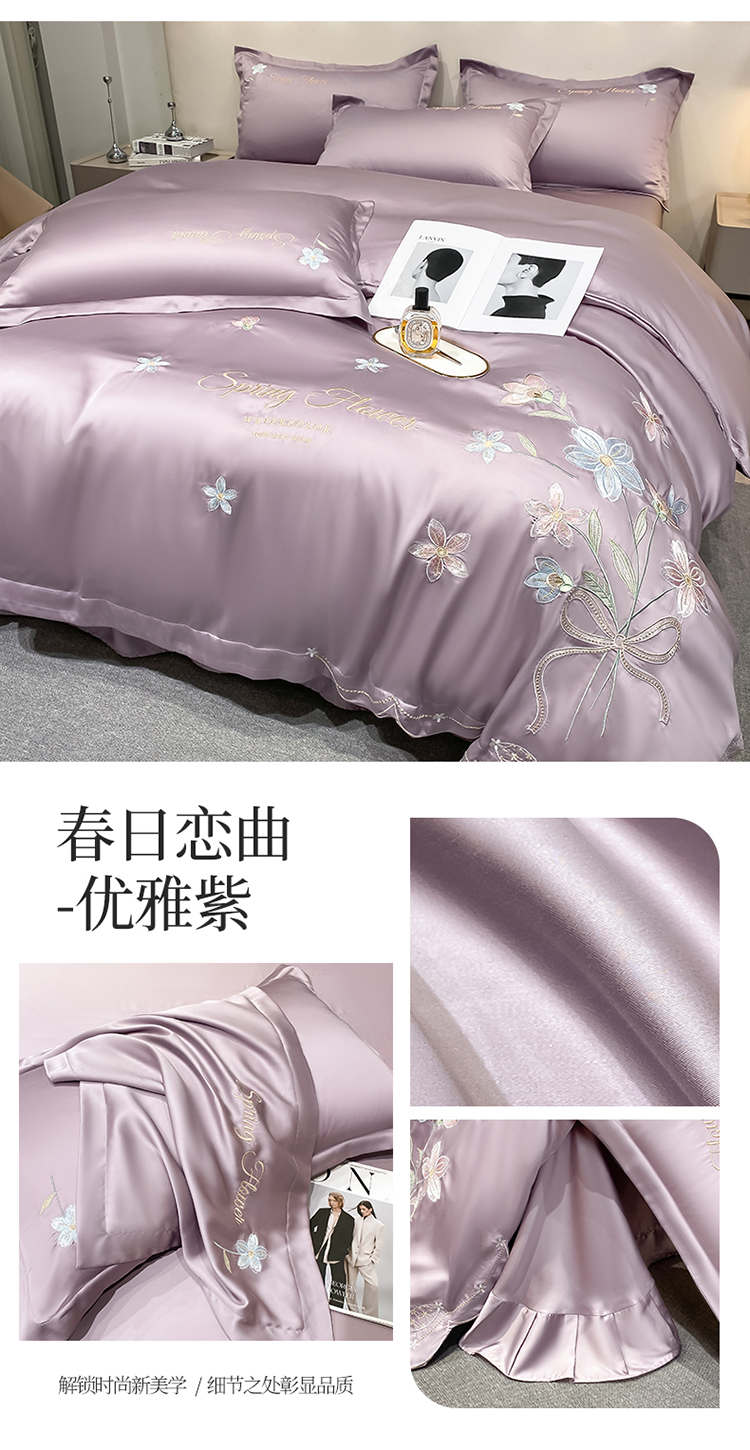 (总)爱家 2025新款雪莲天丝刺绣四件套-春日恋曲(床盖加20)