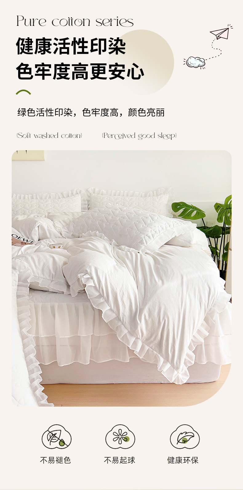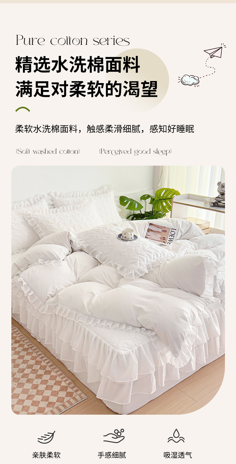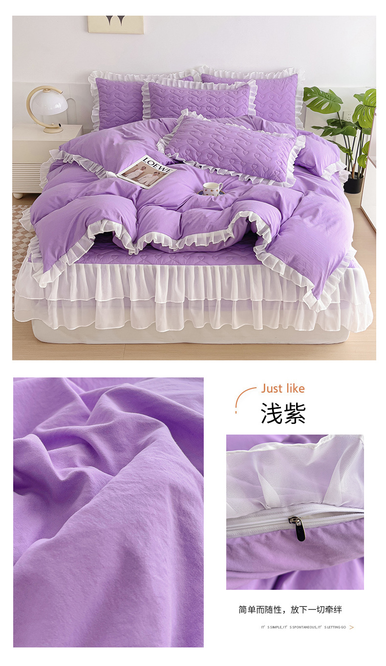 (总)屹成 2024新款水洗棉蕾丝四季款床笠床裙单品套件-床裙三件套,粉玉,豆沙,粉红,大红,橄榄绿,卡其,玫红,浅紫,水绿,天蓝,银灰