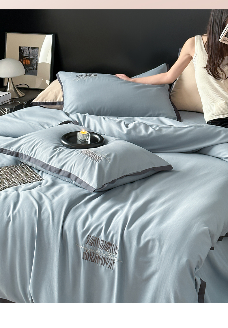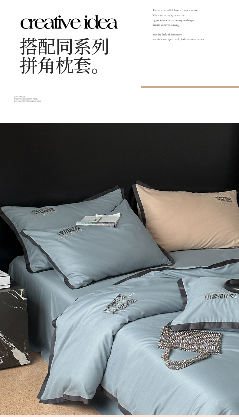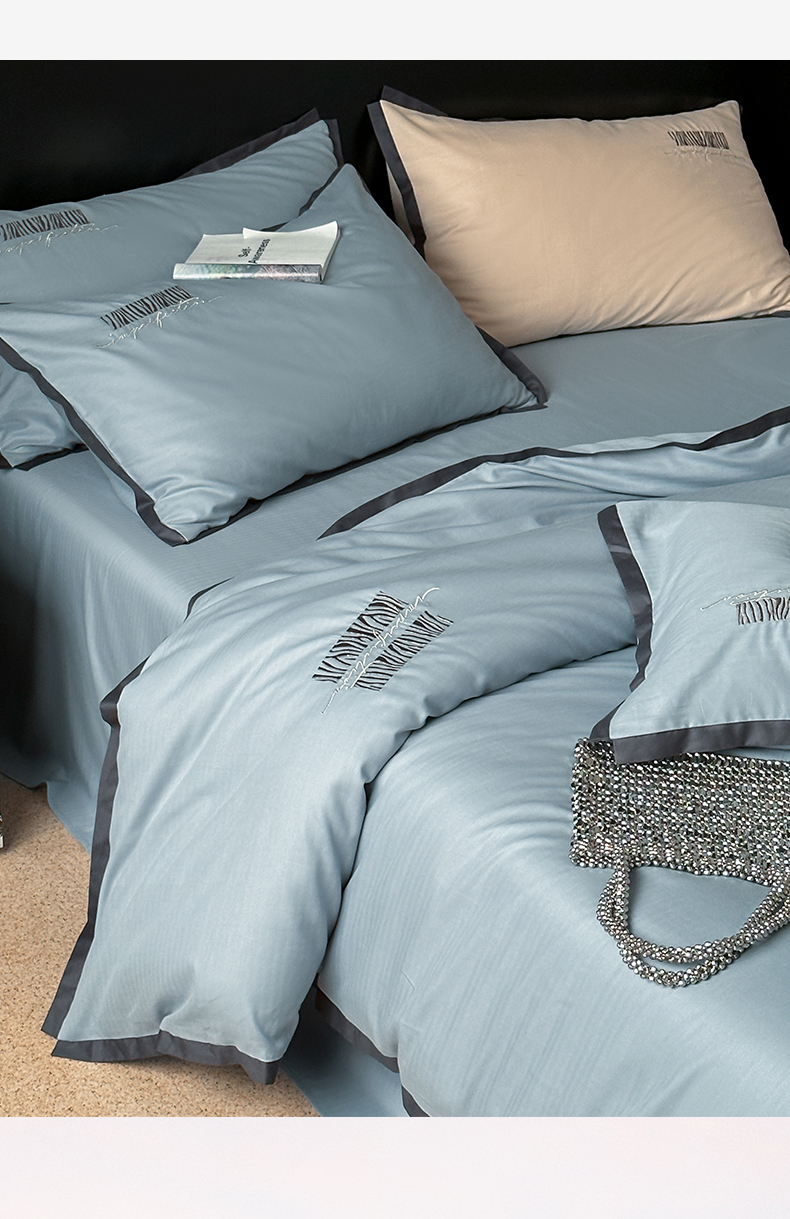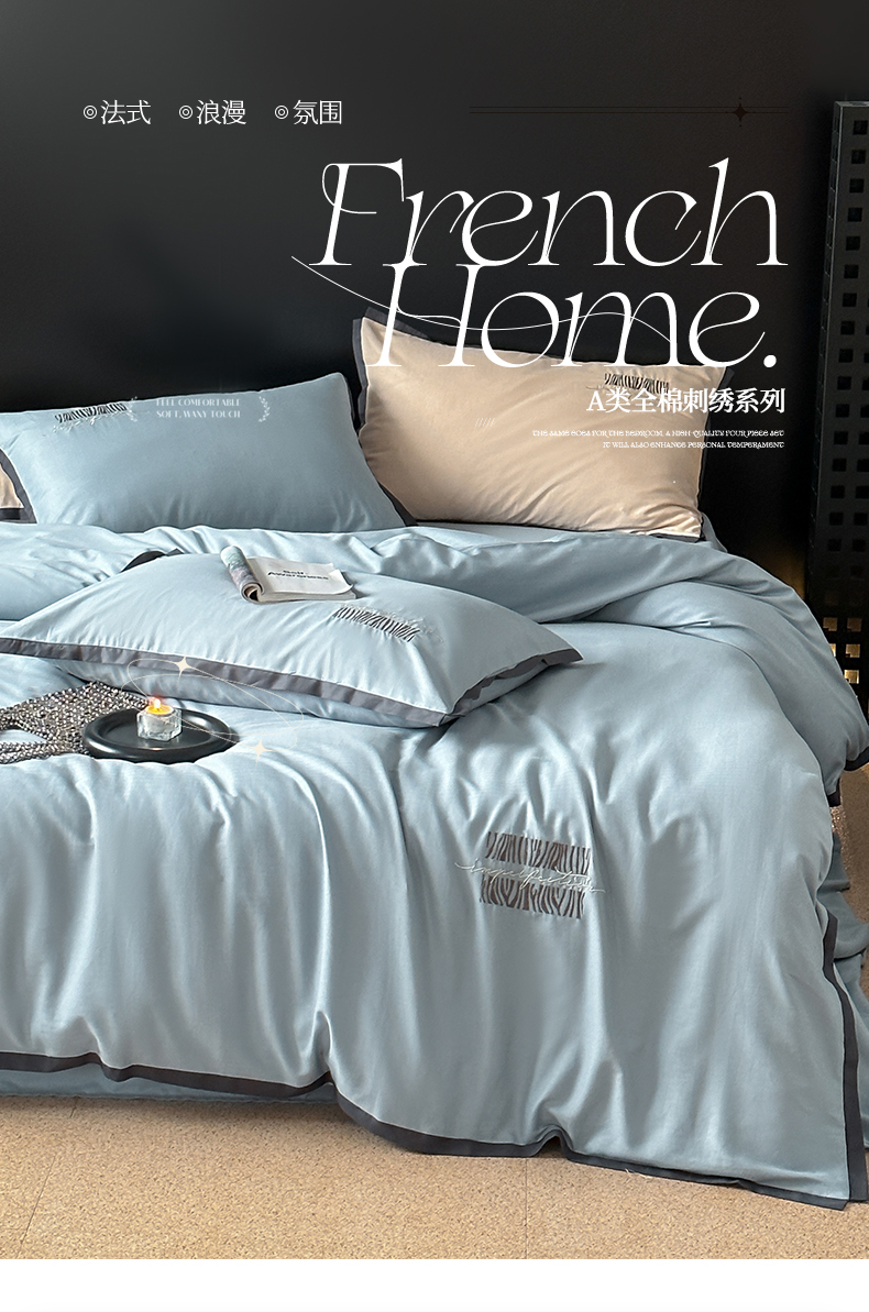 名品优仓 2024新款全棉刺绣四件套-柏菲克 轻奢蓝