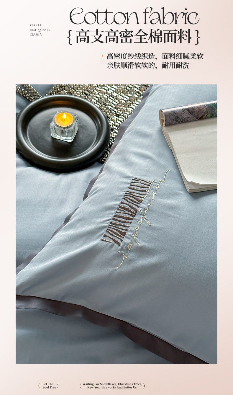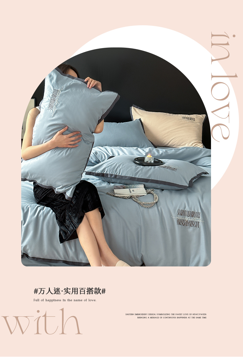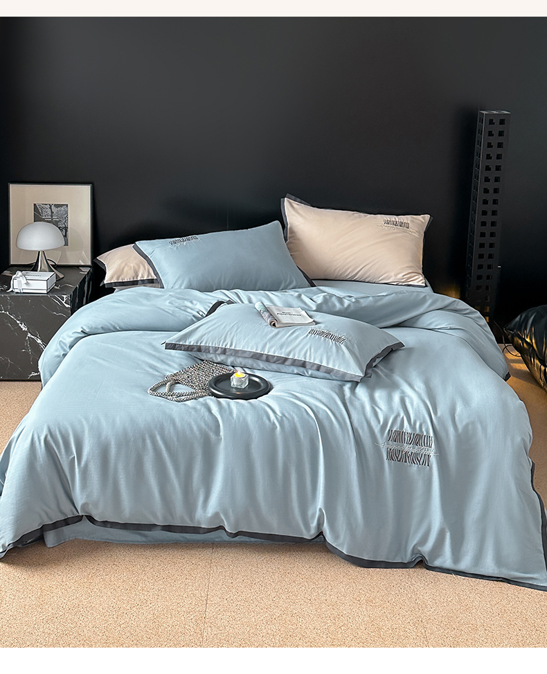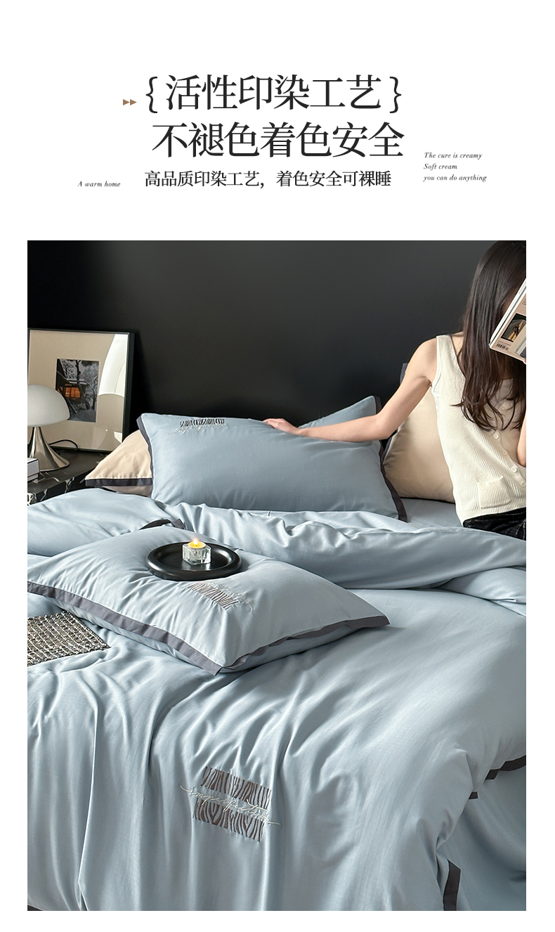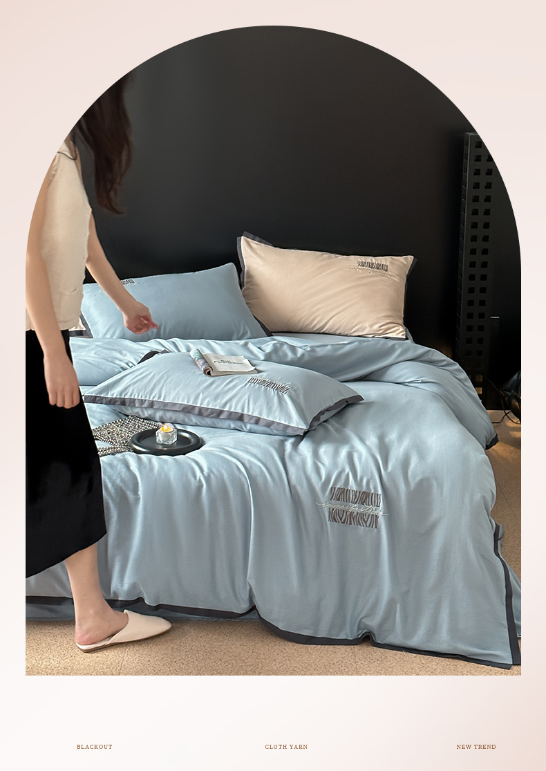 名品优仓 2024新款全棉刺绣四件套-柏菲克 轻奢蓝
