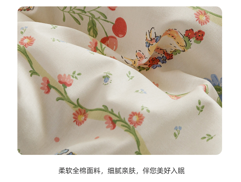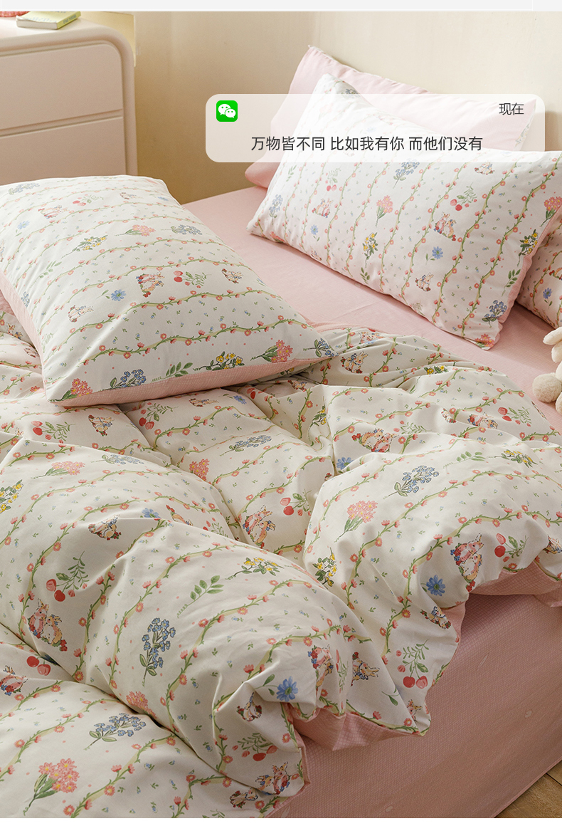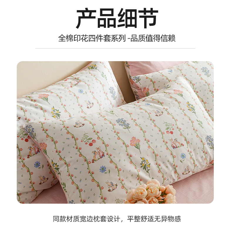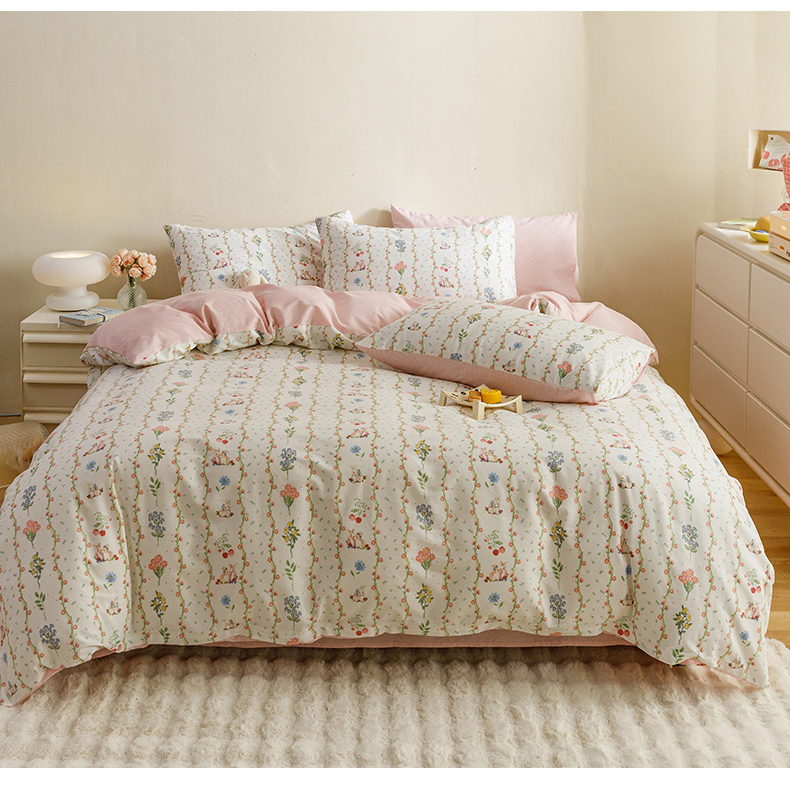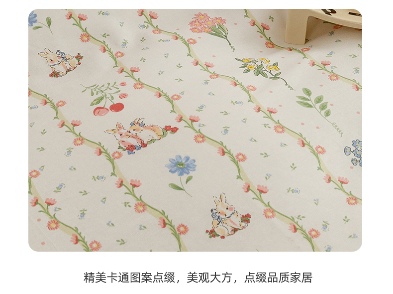 当前位置: 91家纺网 > 商品网购 > 床品套件 > 四件套 > 全棉普通四件套 > 红粉佳人家纺 2024新款纯棉卡通小清新四件套及单品 花间小兔-1