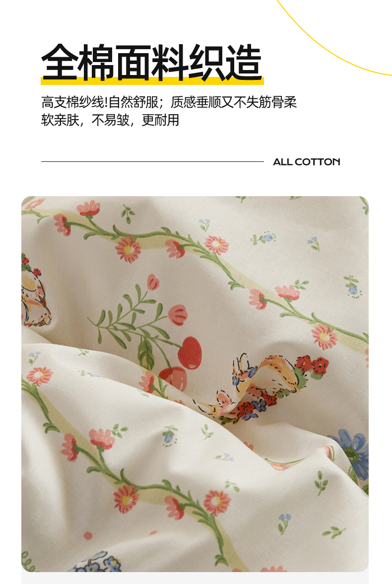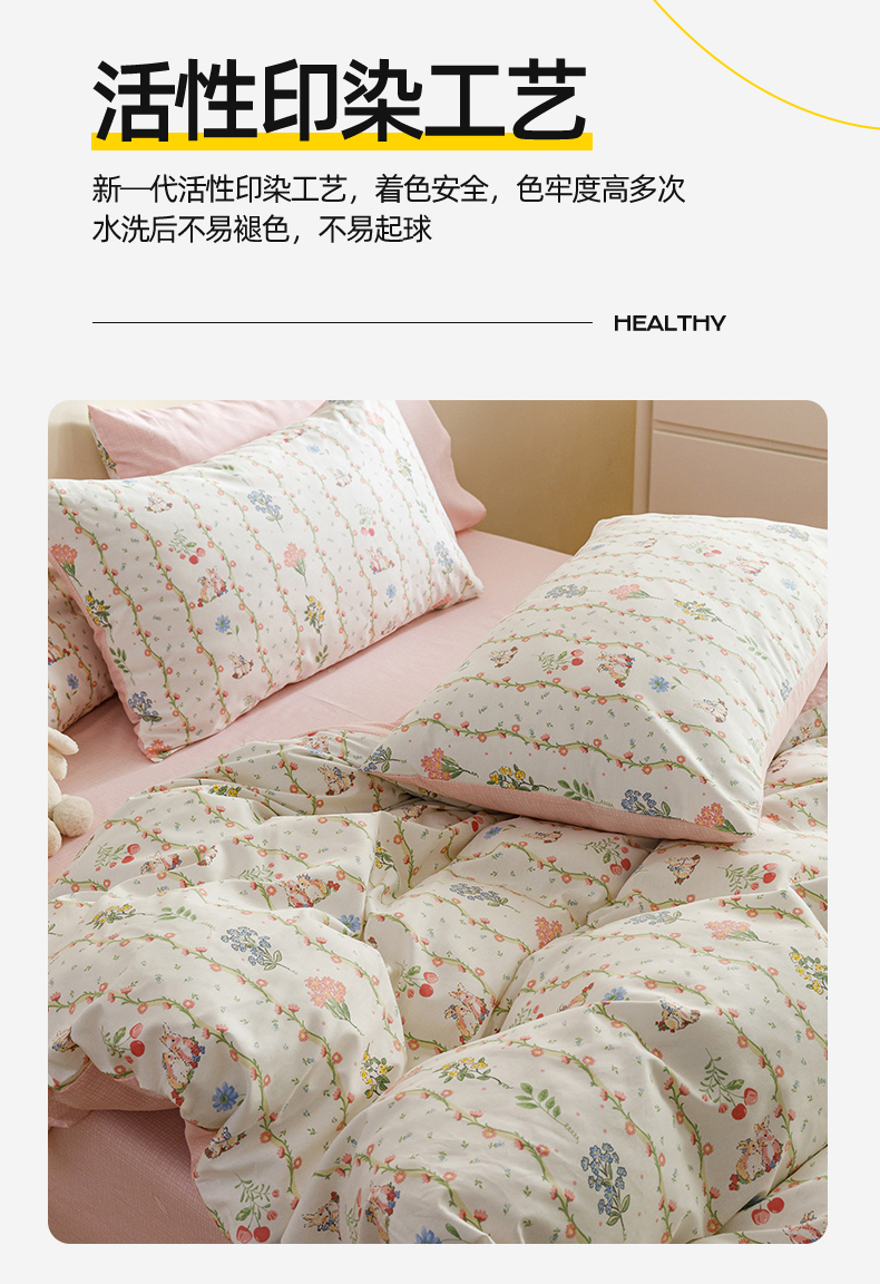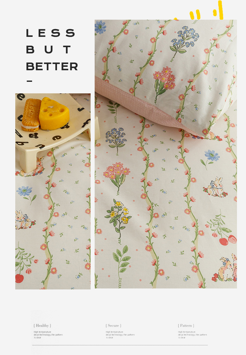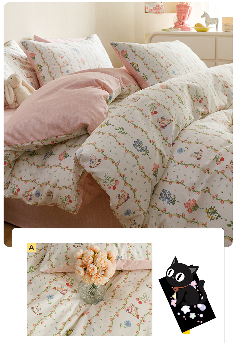 当前位置: 91家纺网 > 商品网购 > 床品套件 > 四件套 > 全棉普通四件套 > 红粉佳人家纺 2024新款纯棉卡通小清新四件套及单品 花间小兔-1