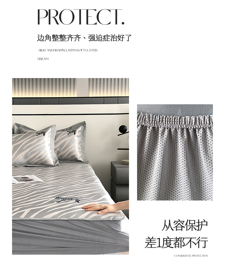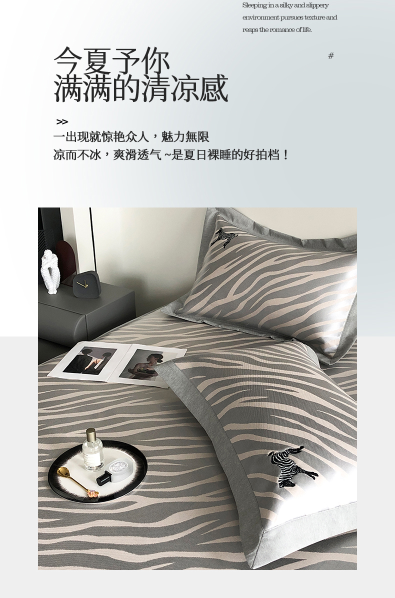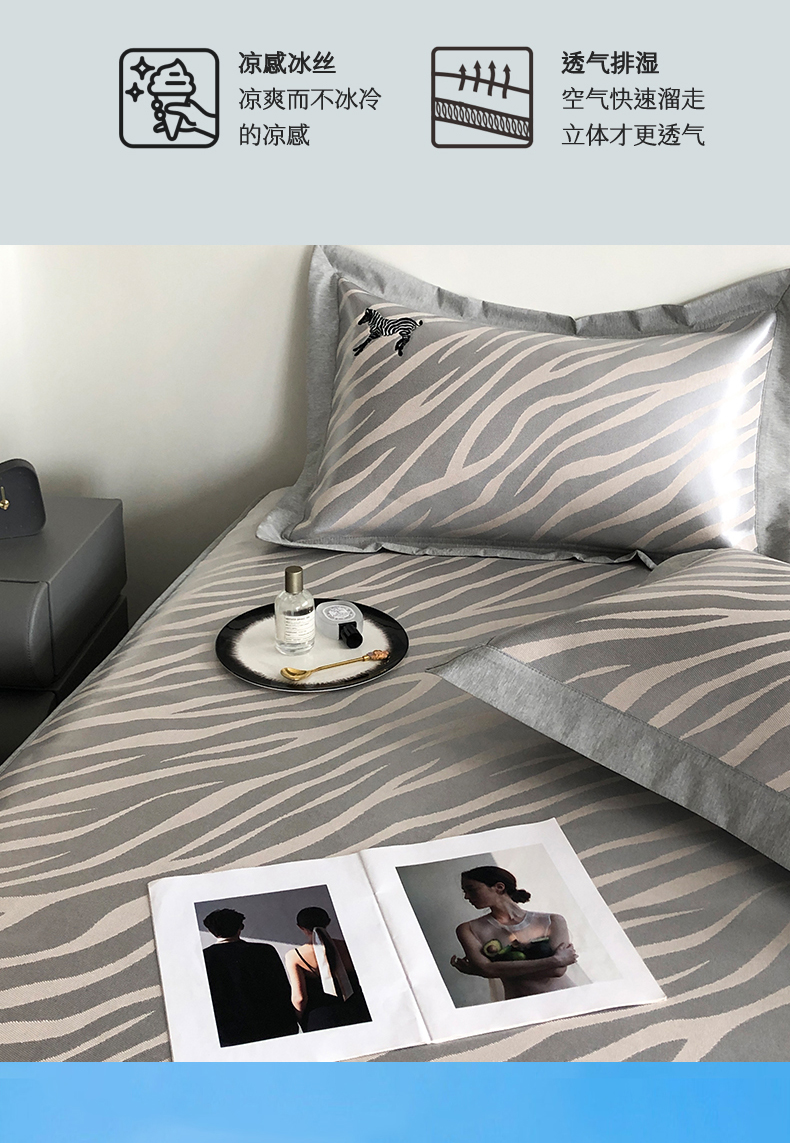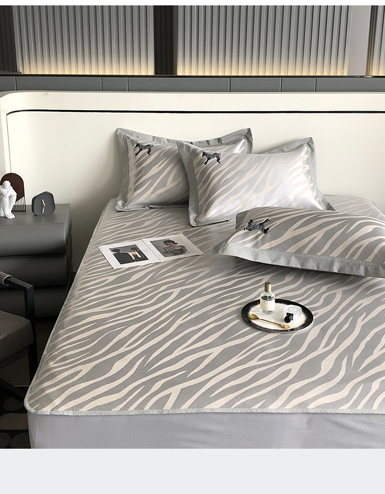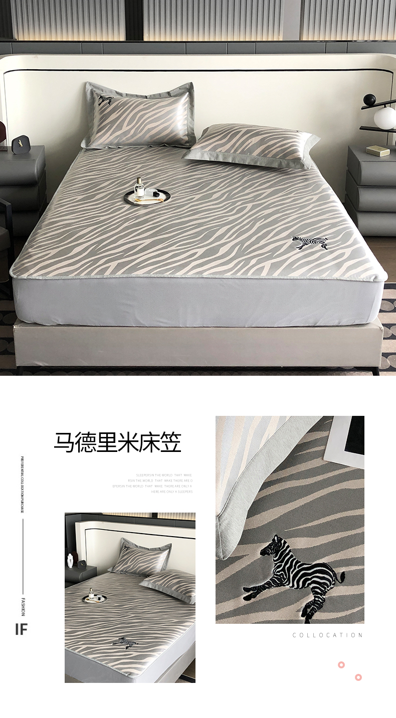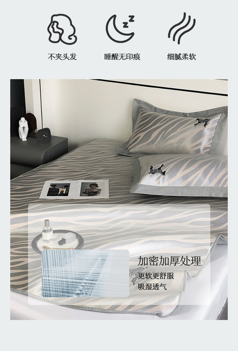 商品名称:三味舒屋 2025新款凉感马德里冰丝提花刺绣凉席 马德里米床笠