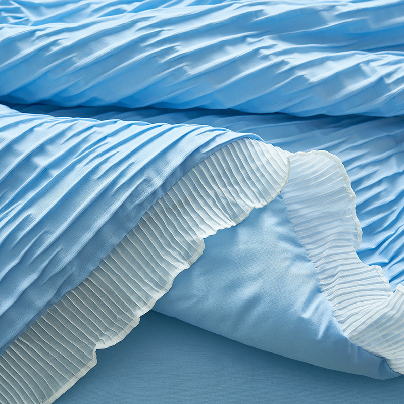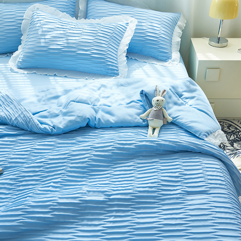 当前位置: 91家纺网 > 商品网购 > 床品套件 > 四件套 > 夏被四件套 > 畅销被业 2024新款泡泡纱花边夏被四件套 花边款泡泡纱-天蓝色