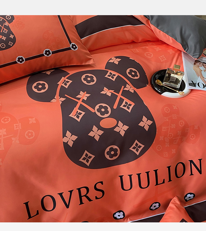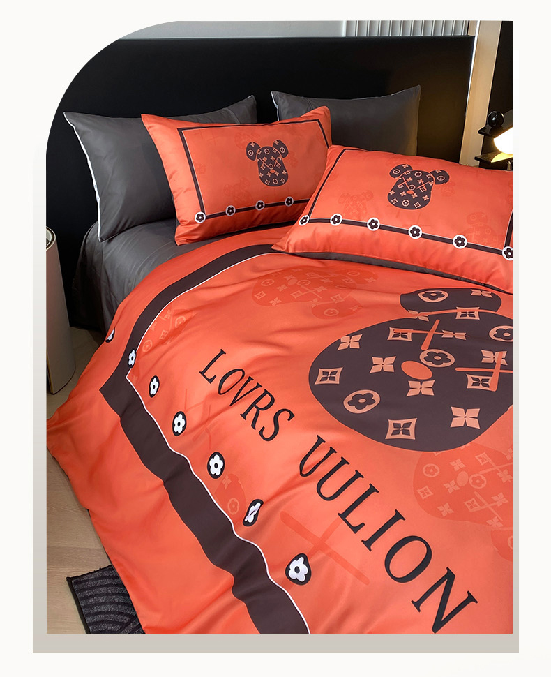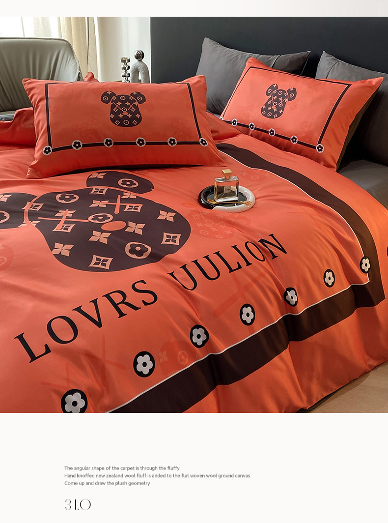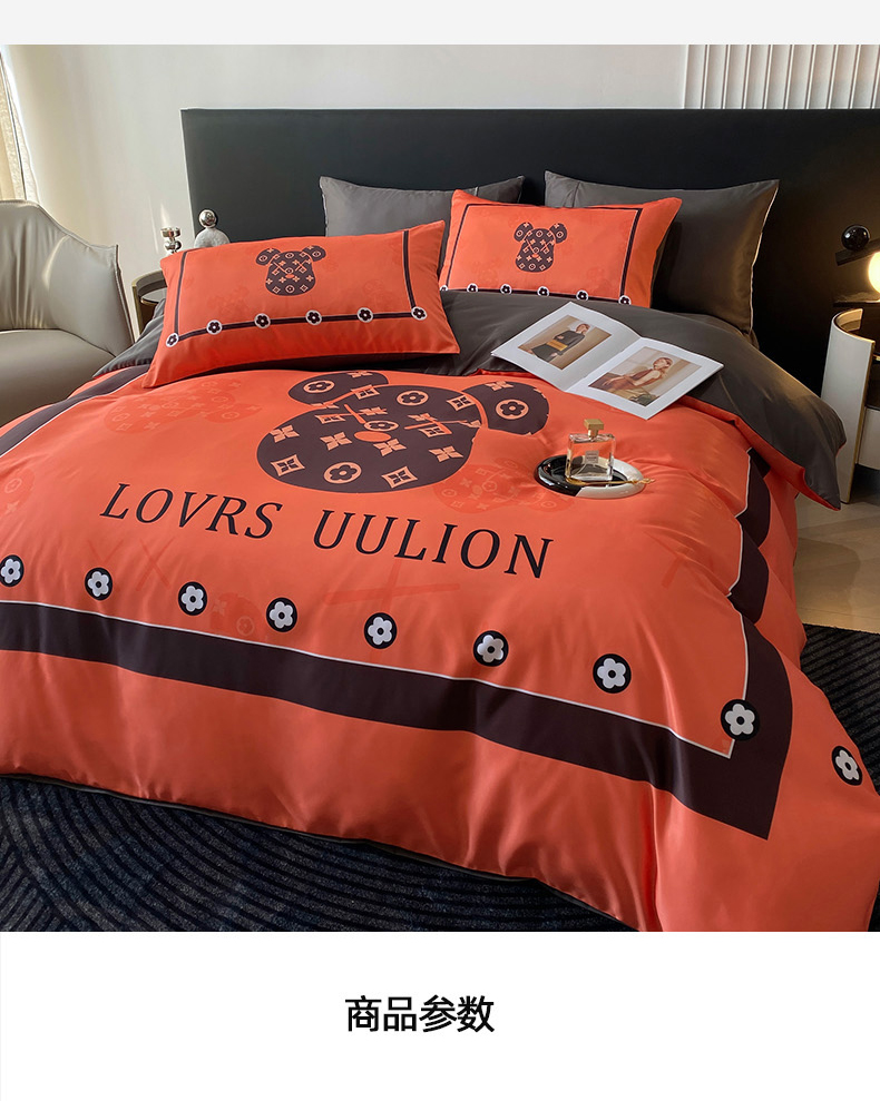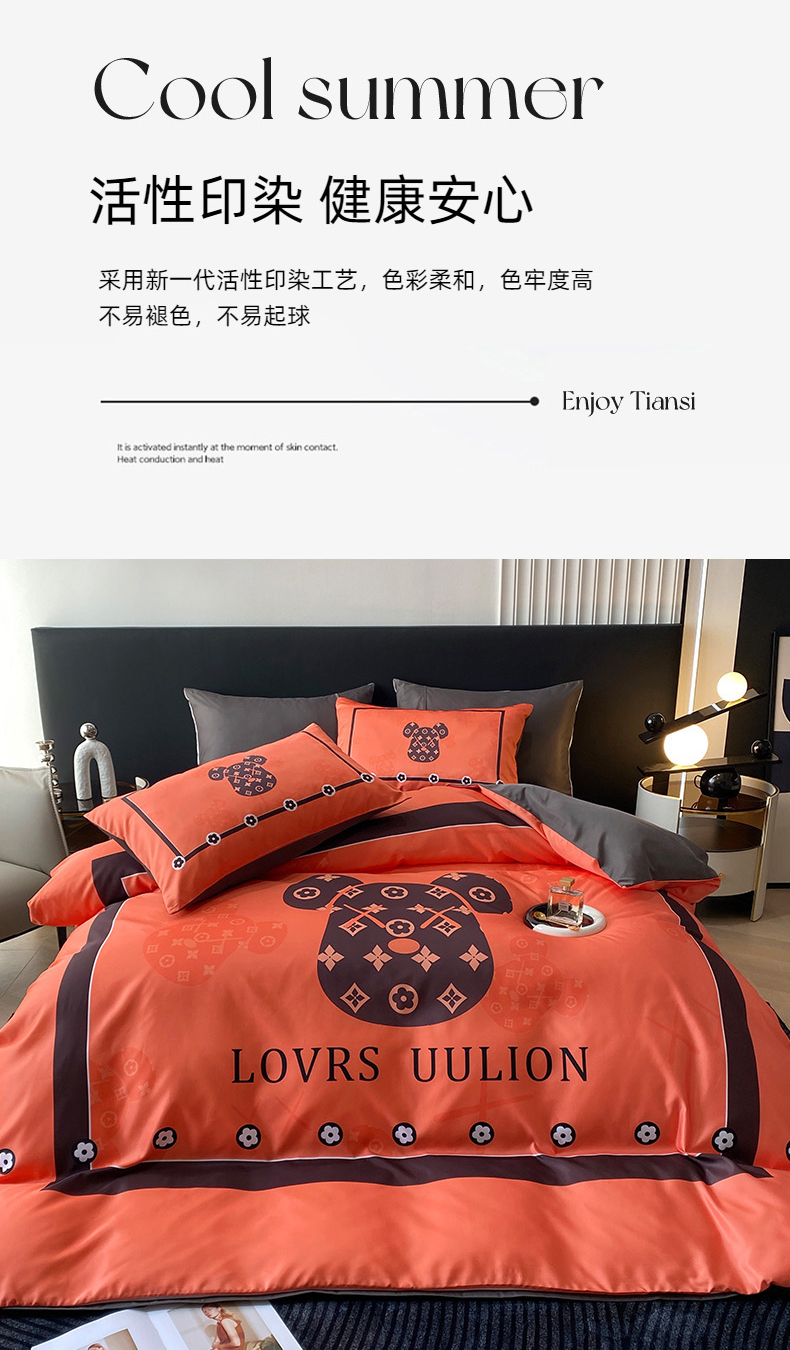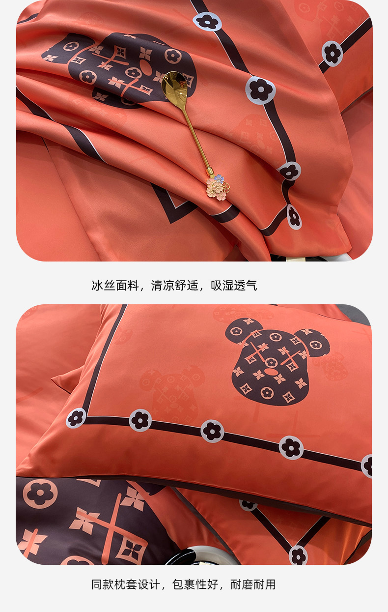 商品名称:色鬼布艺 2024新款冰丝四件套水洗真丝四件套 橘熊1