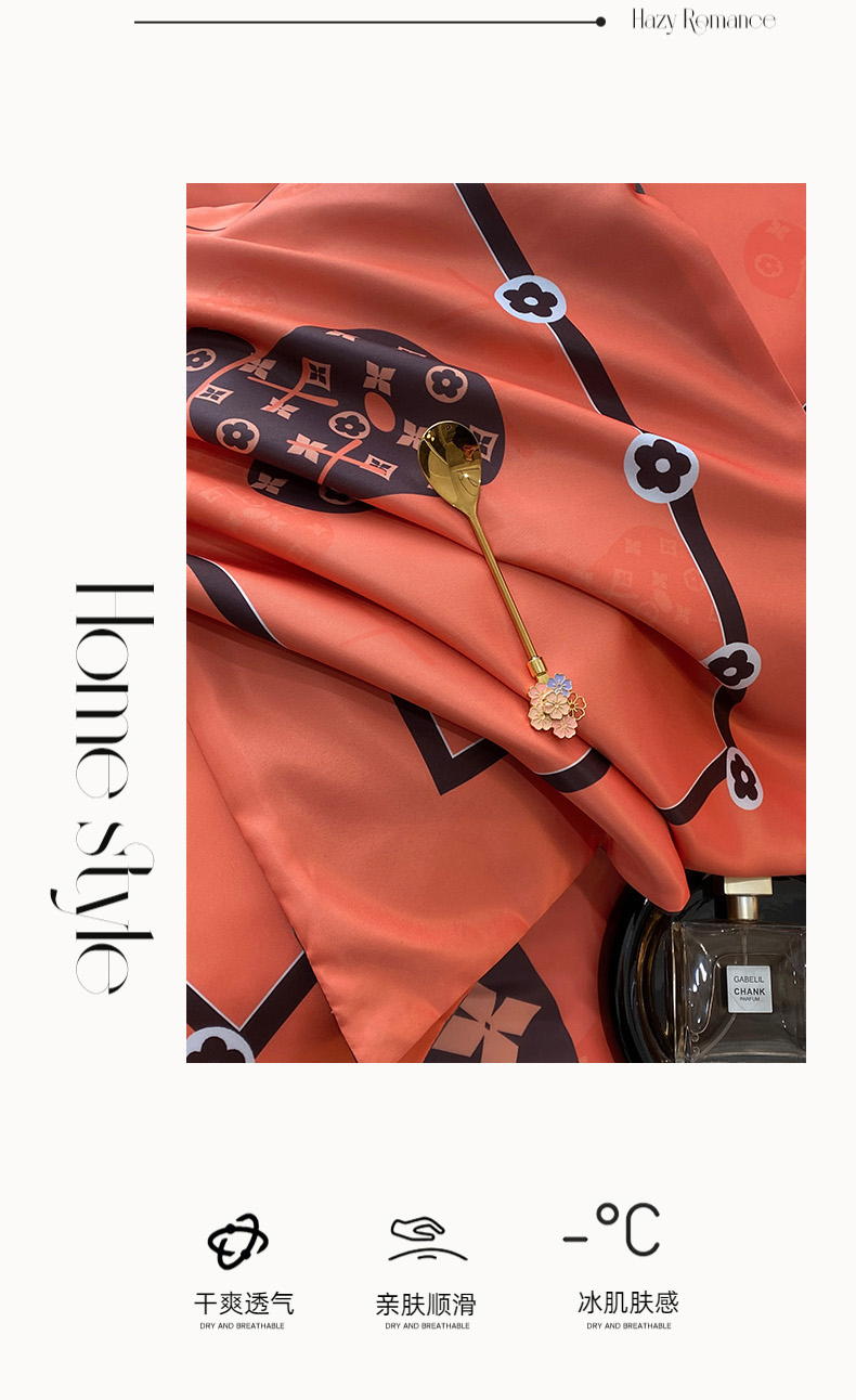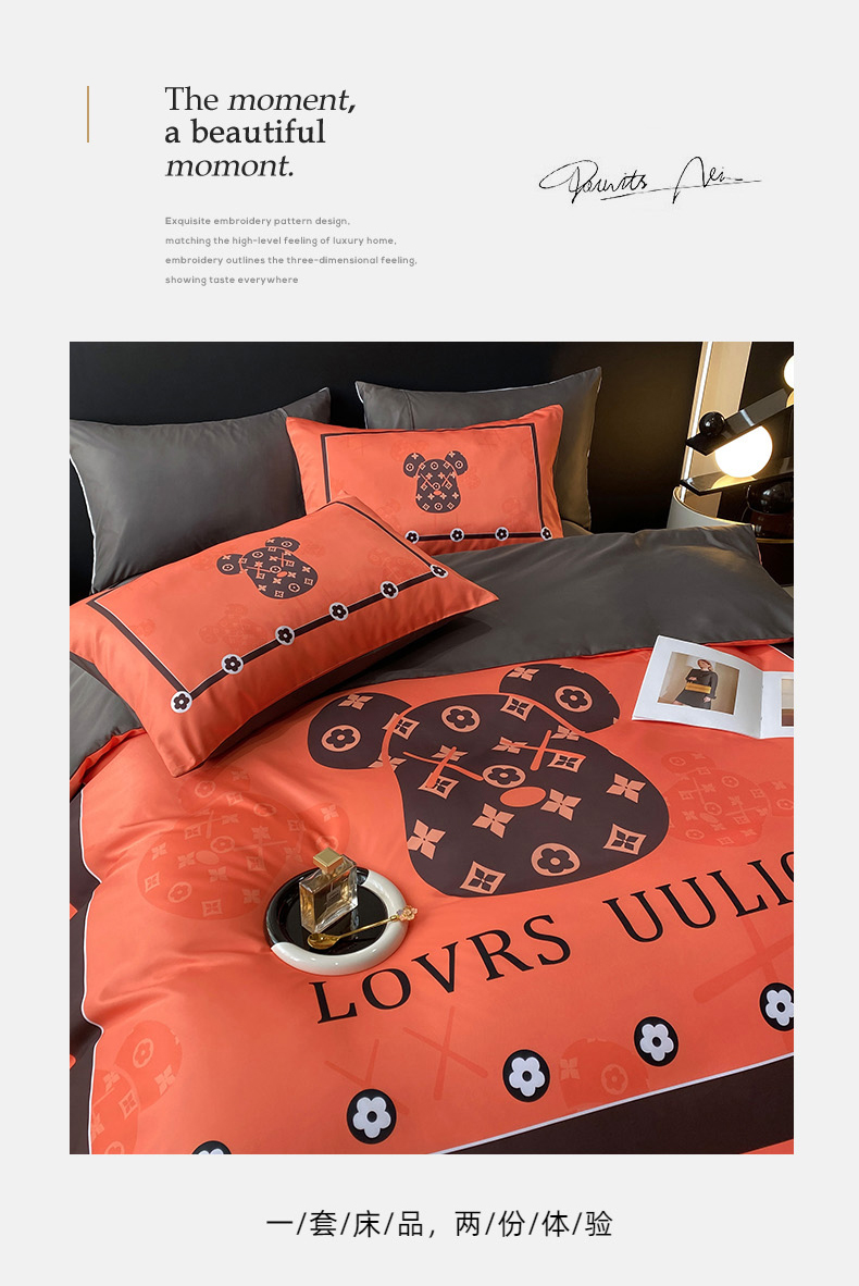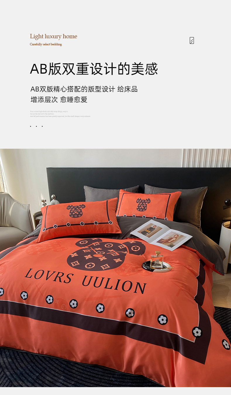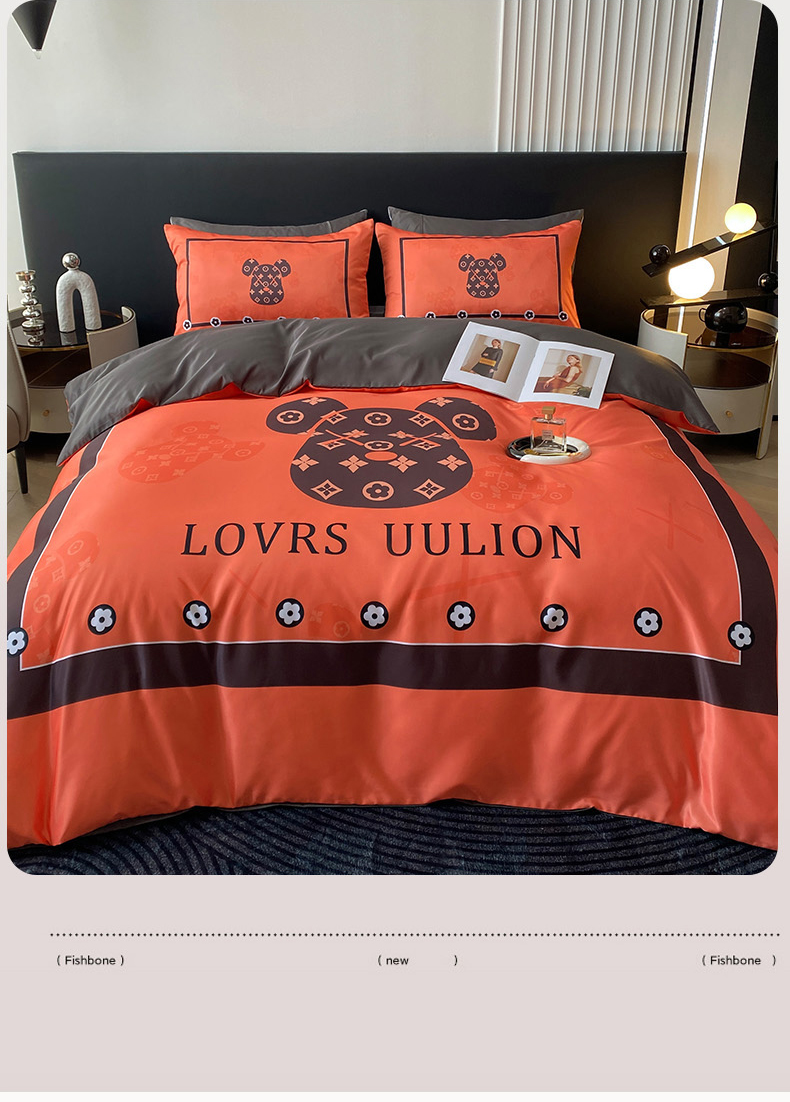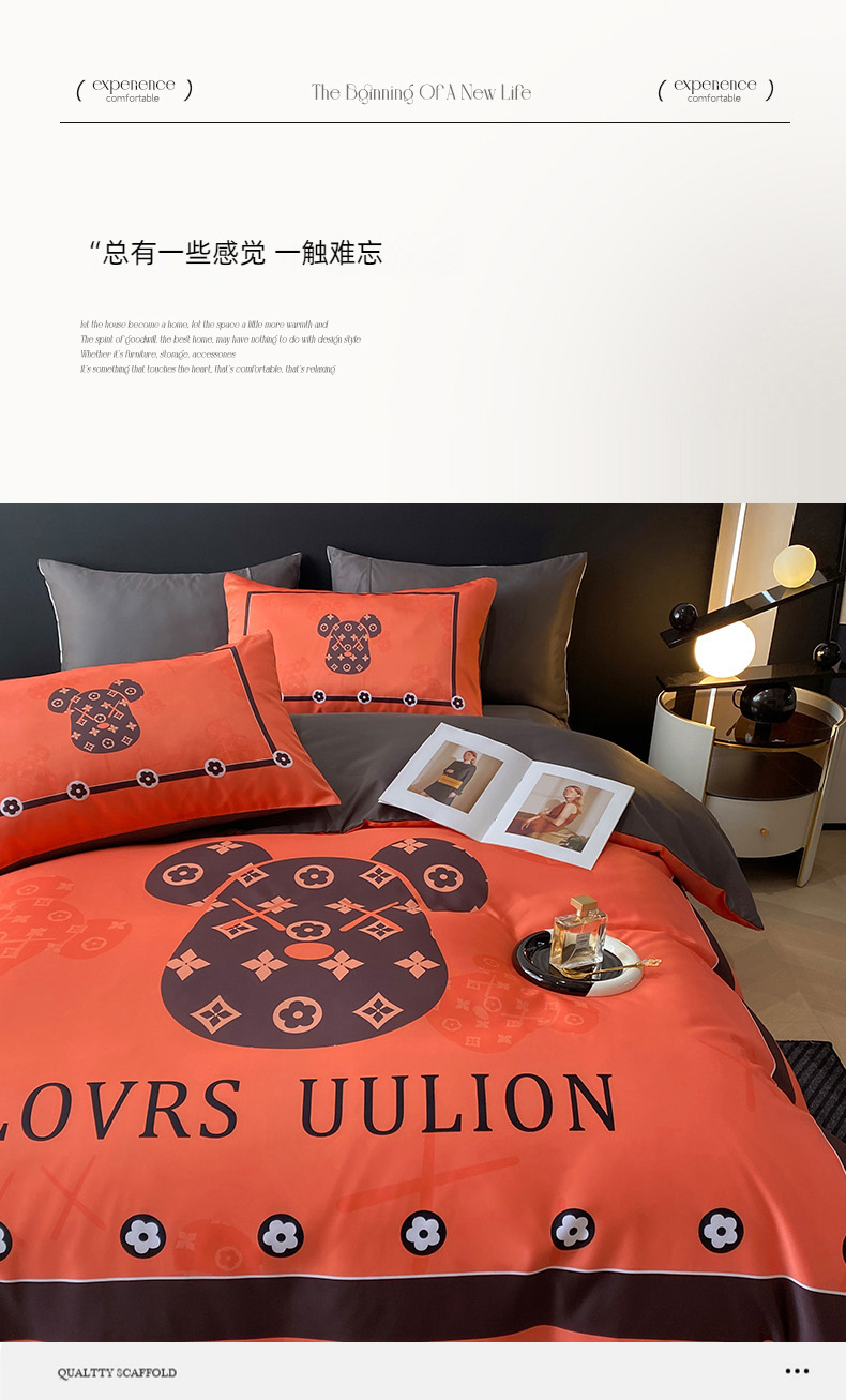 商品名称:色鬼布艺 2024新款冰丝四件套水洗真丝四件套 橘熊1