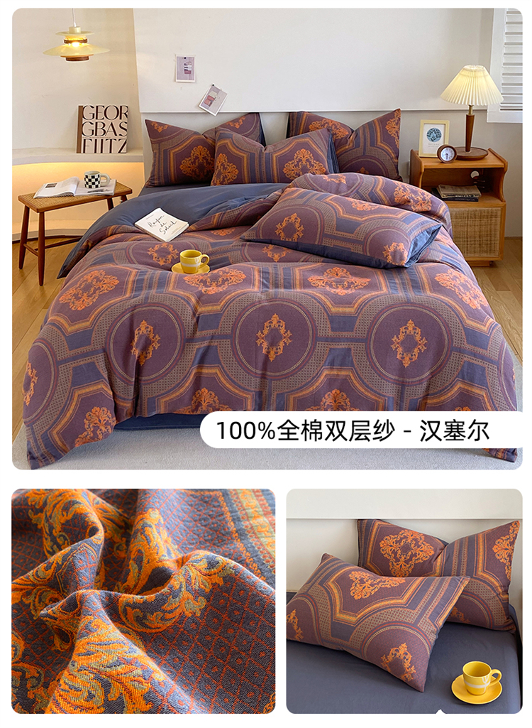 商品名称:2024新款全棉纯棉双层纱三层纱立体提花四件套 汉塞尔