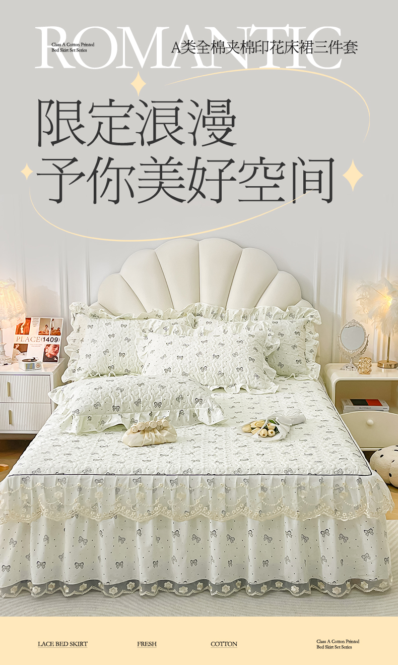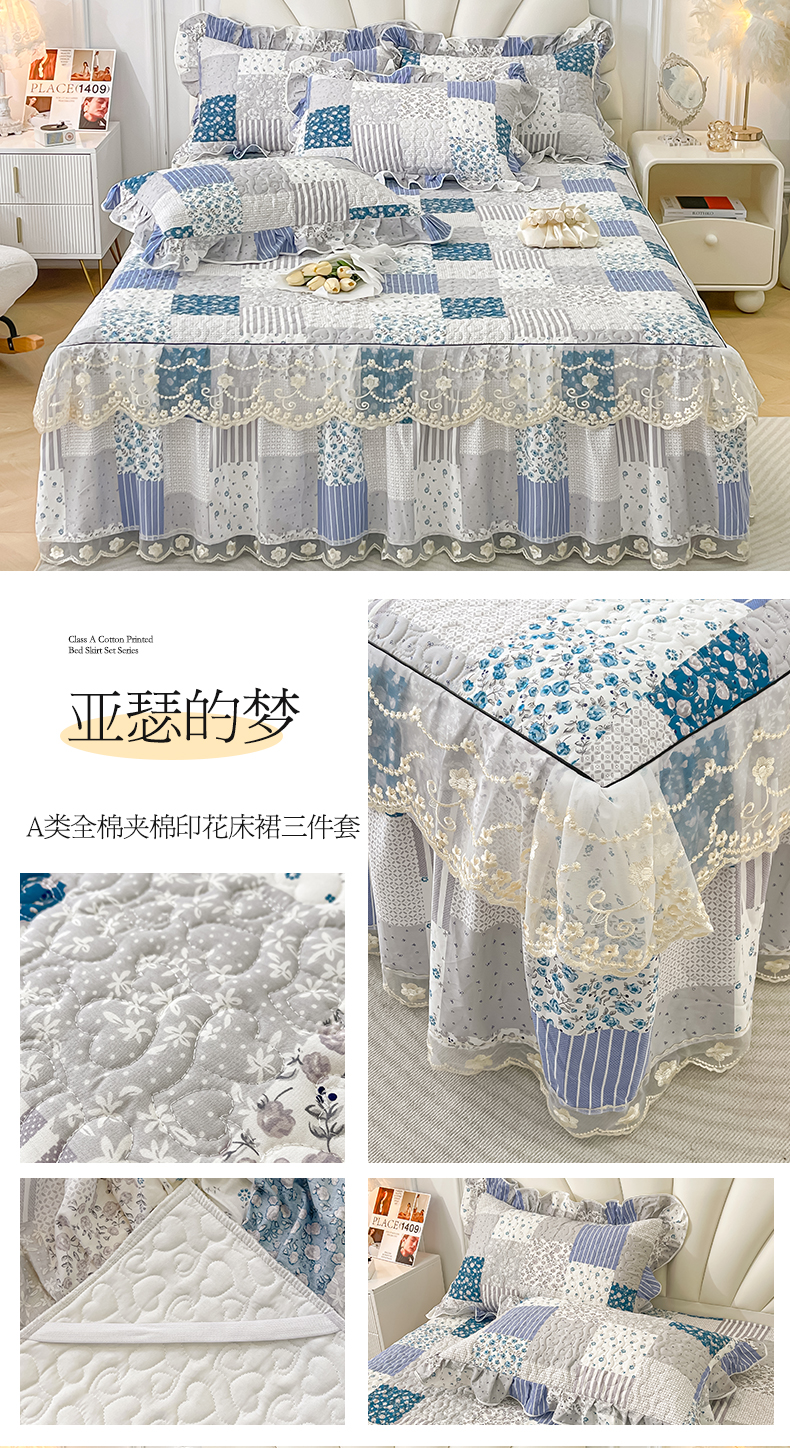 150*200cm夹棉床裙三件套