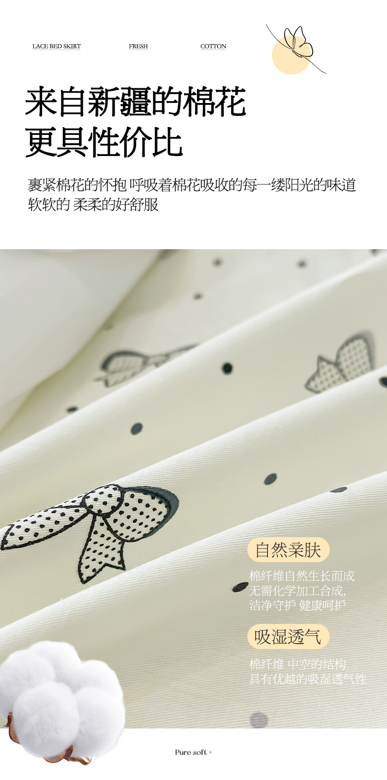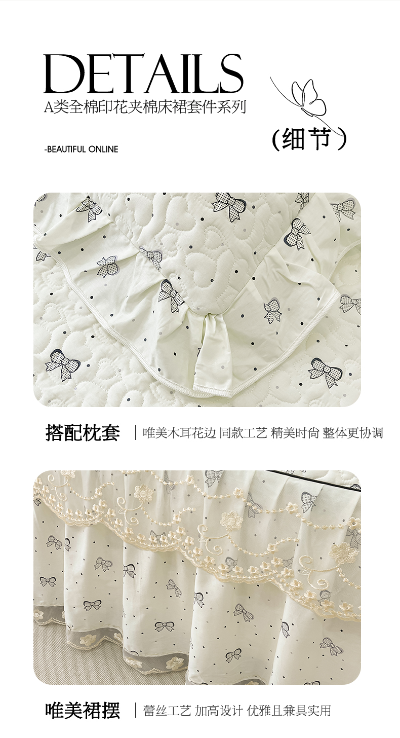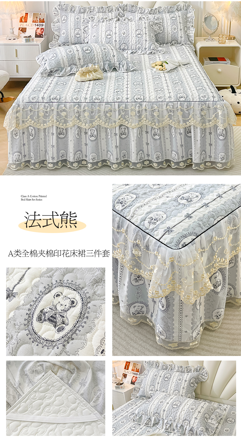 宜凡家纺 2024新款全棉夹棉印花床裙系列三件套 法式熊
