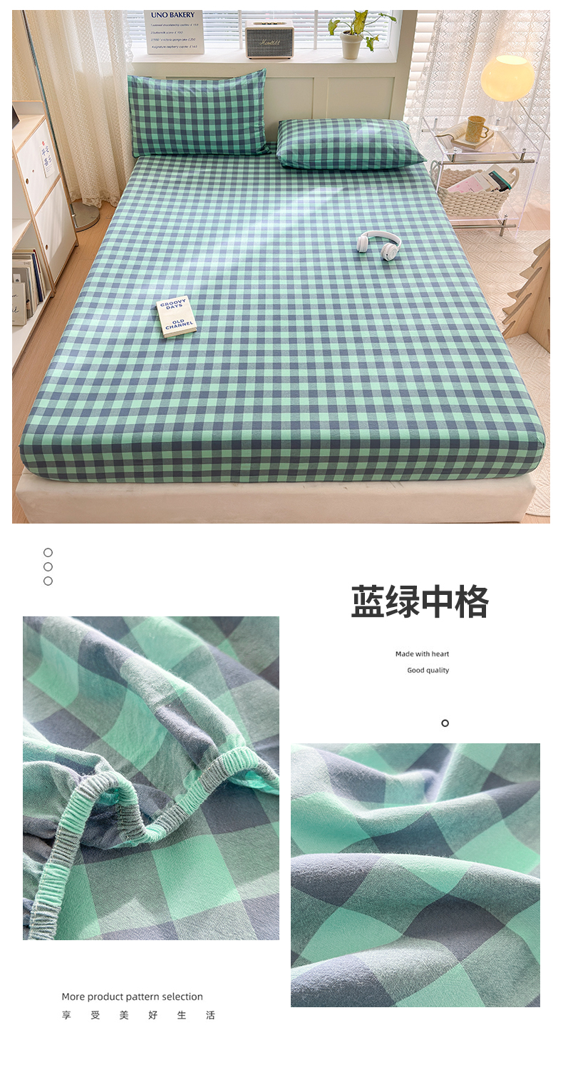 北欧良品 2024新款水洗棉单品床笠、床单--格纹款(床笠、床单) 蓝绿中格