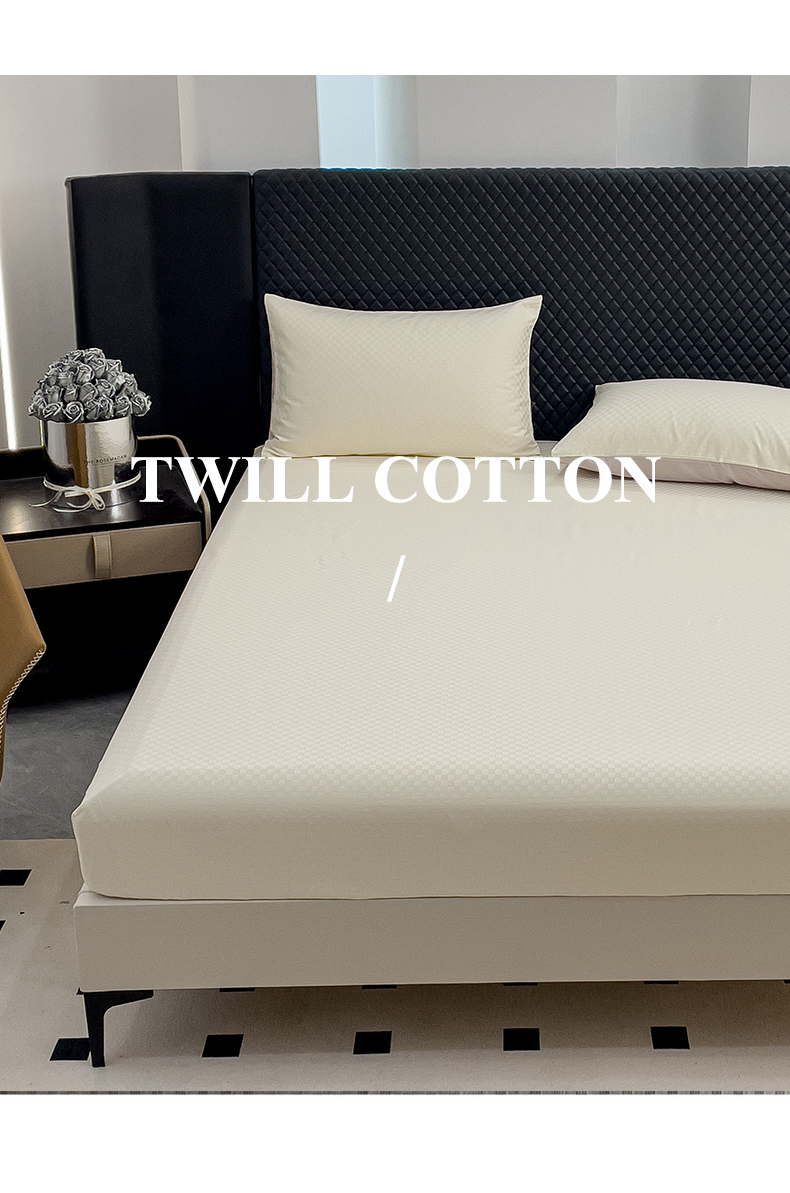 金鑫汇 2024新款提花小方格全棉套件单品系列-单床笠 奶昔白-淡紫