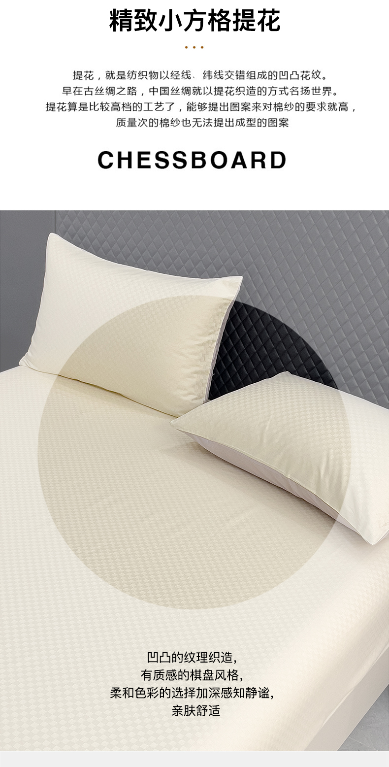 商品名称:金鑫汇 2024新款提花小方格全棉套件单品系列-单床笠 奶昔白-淡紫