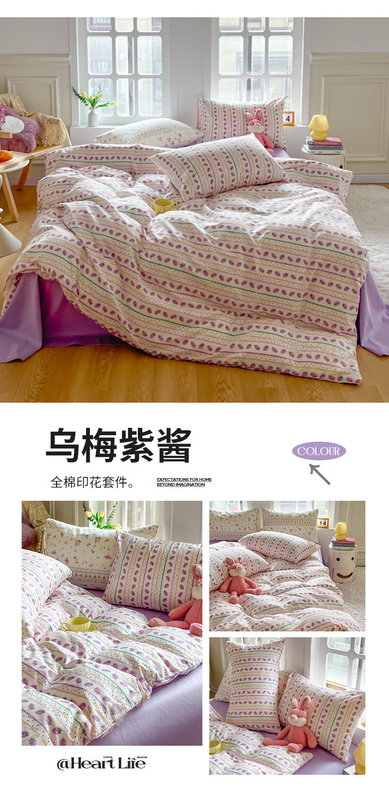 千朵 2024新款全棉四件套 乌梅紫酱