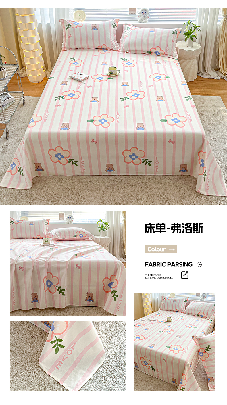 涵宸家纺 2024新款全棉小清新印花单品套件--单床单 床单-弗洛斯