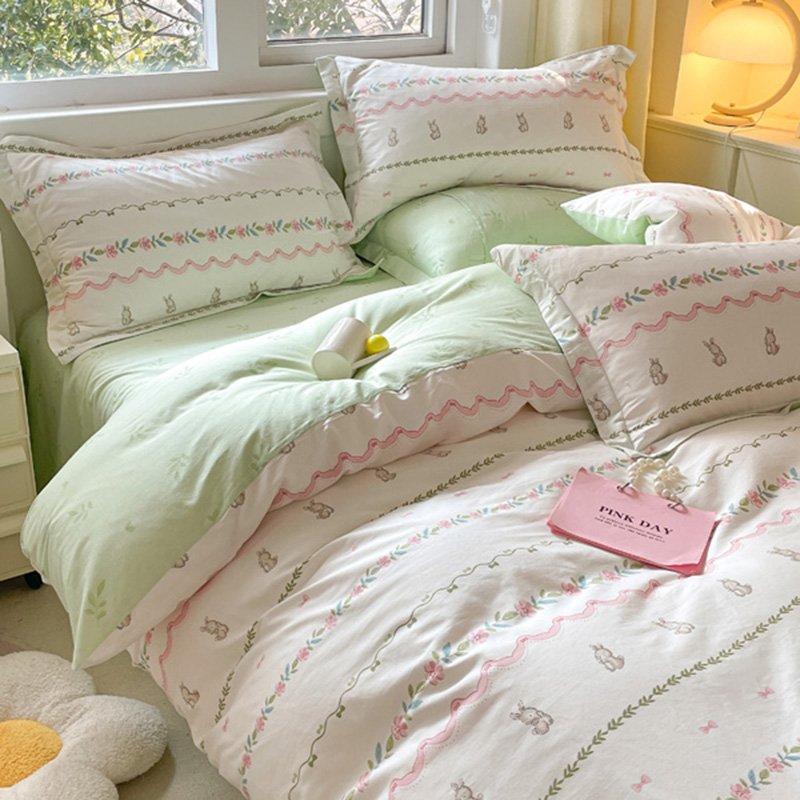 (总)涵宸家纺 2025新款全棉磨毛刺绣四件套系列-普莉,普莉-粉,普莉-绿,普莉-奶白