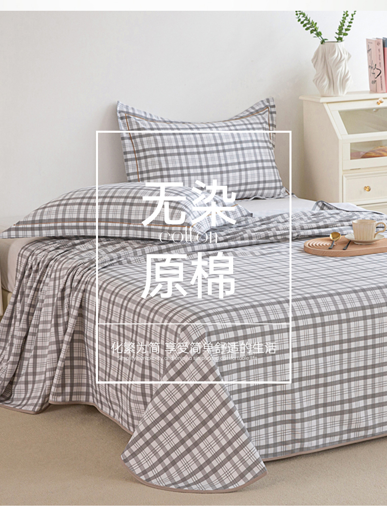 商品名称:金泰莱 2025新款原棉全棉老粗布凉席三件套全棉床单纯棉床单软凉席 高级灰格