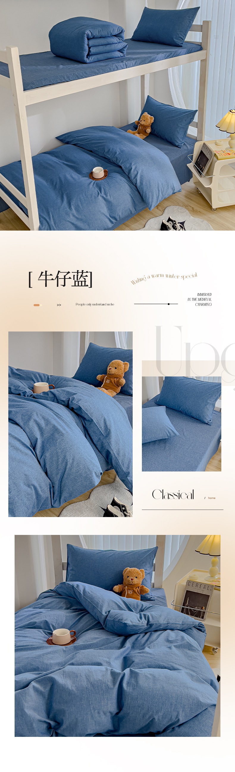 久典家居 2024新款A类全棉学生款三件套 牛仔蓝