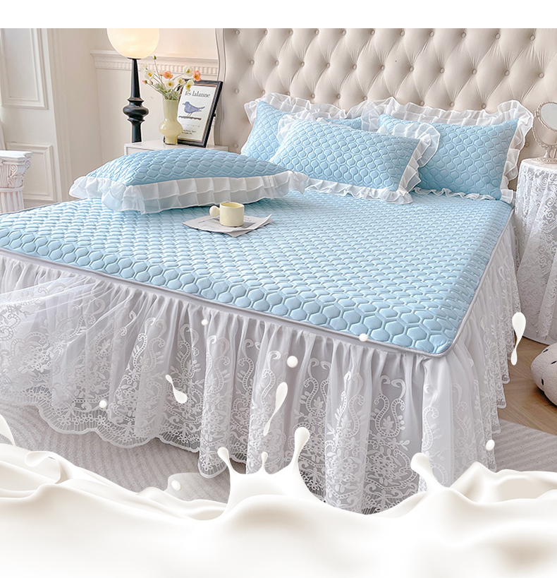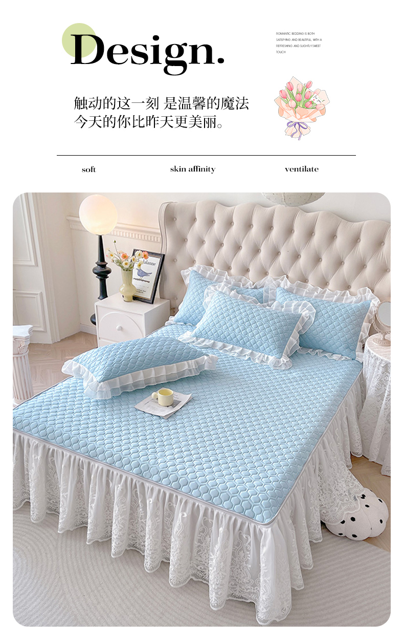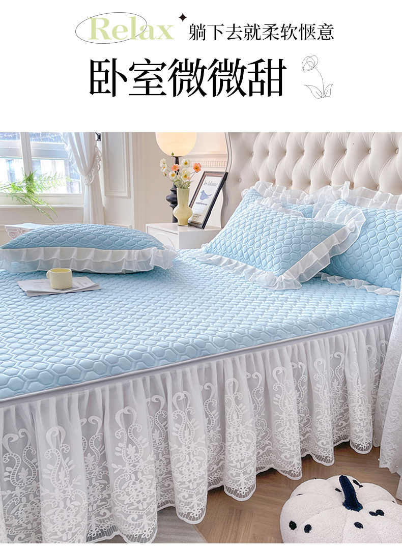 (总)虹星家纺 2025新款A类冰感凉豆豆床裙席三件套-素夏,素夏-抹茶绿,素夏-蜜桃粉,素夏-青果绿,素夏-天空蓝,素夏-月光灰