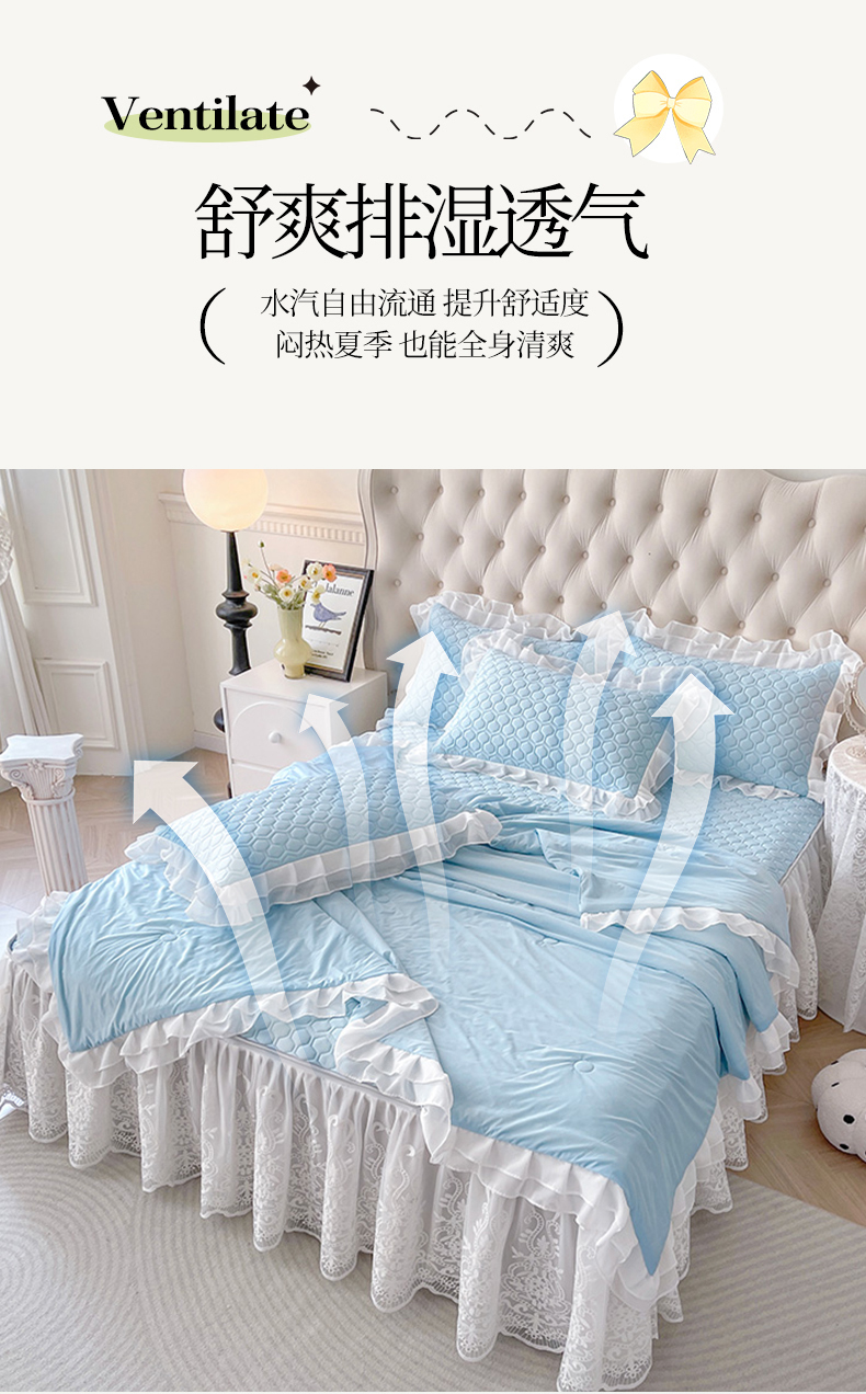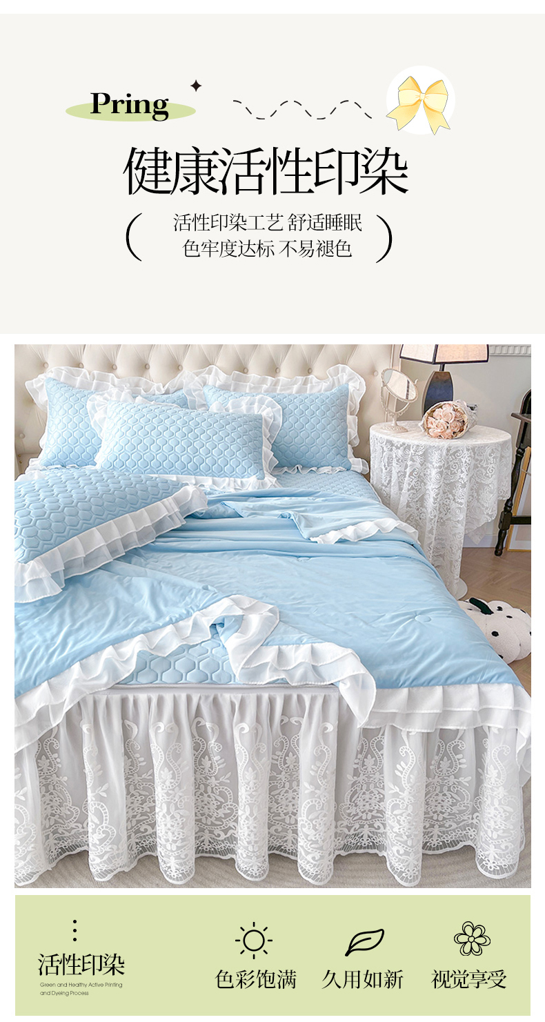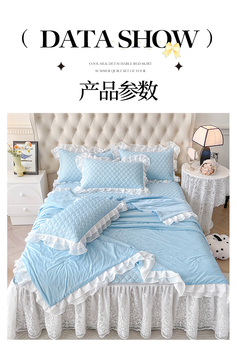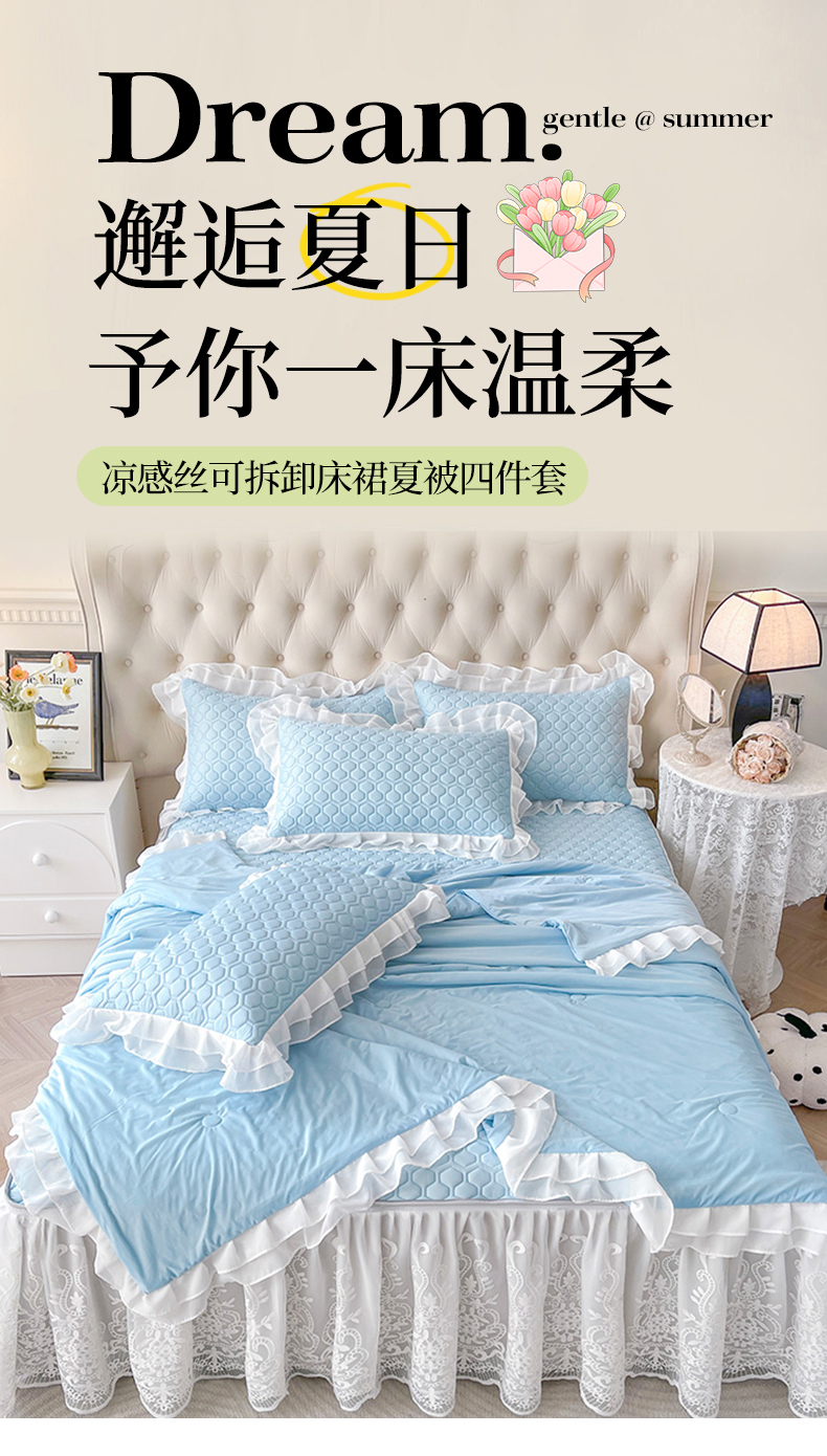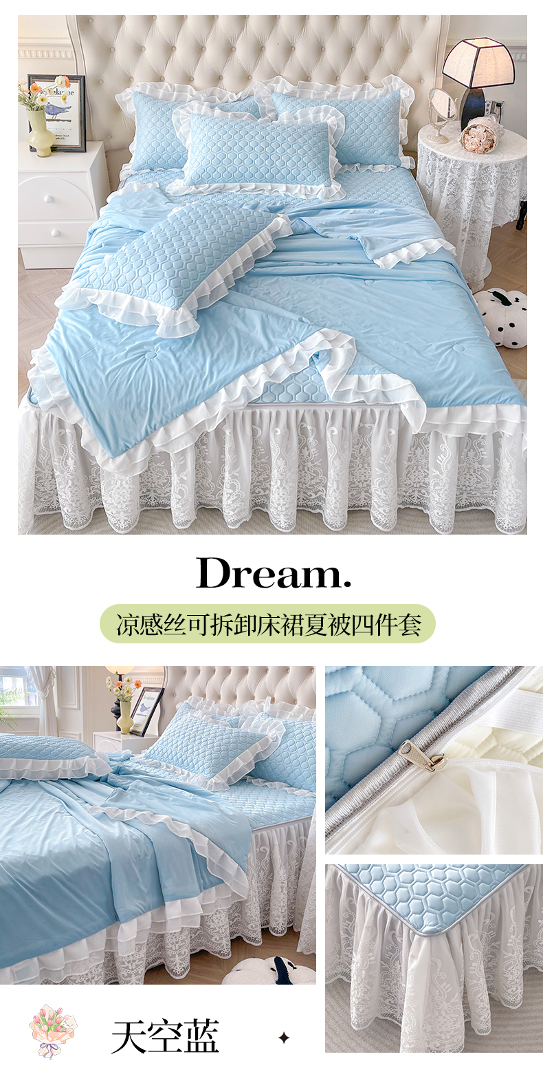 商品名称:虹星家纺 2024新款凉感丝印花可拆床裙套件-夏被凉席四件套 天空蓝