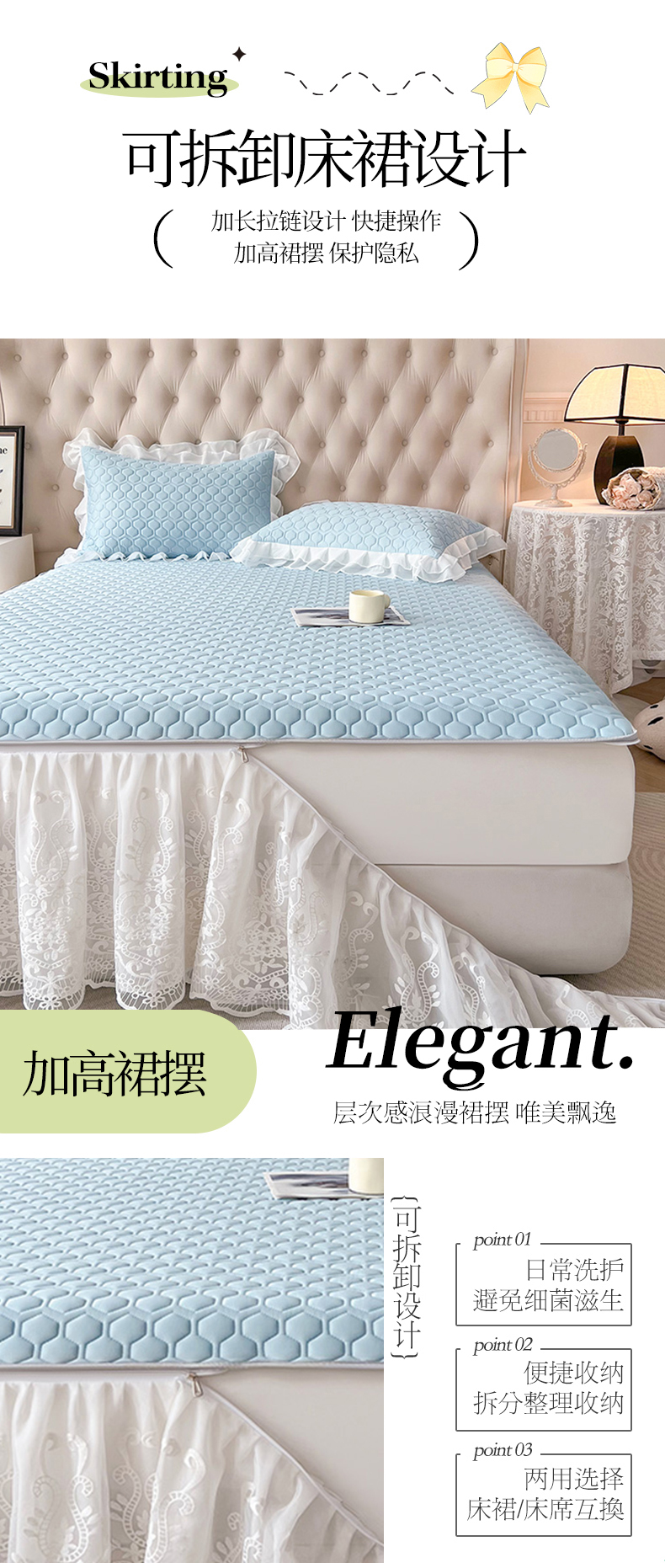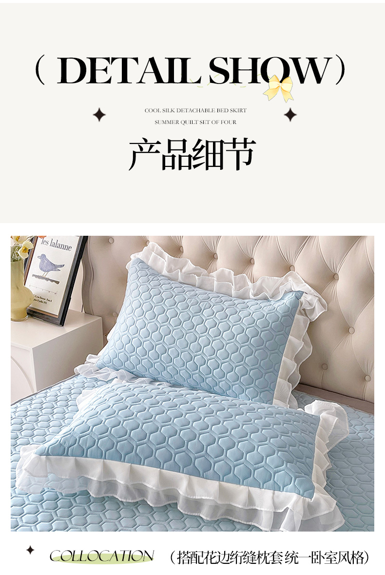 (总)虹星家纺 2024新款A类冰感凉豆豆可拆卸床裙席三件套,静谧灰,宝石蓝,冰川蓝,梦幻粉,青果绿,珍珠灰