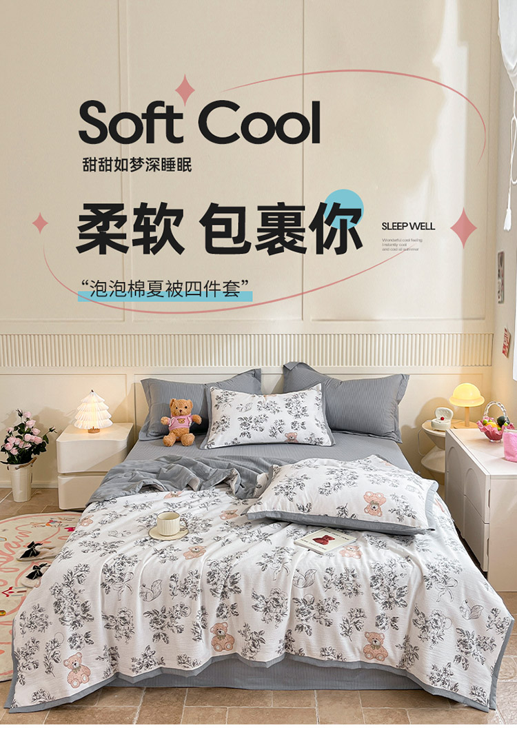 商品名称:(总)2024新款泡泡棉小缺角工艺夏被四件套