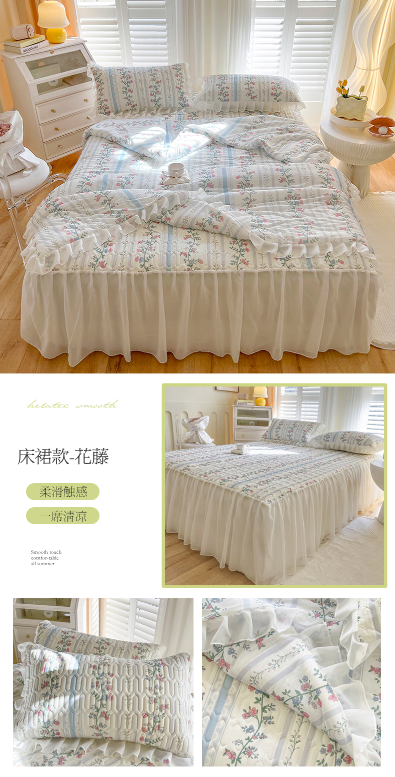 商品名称:(总)慕澄家纺 2024新款小版印花床裙款乳胶凉席三件套