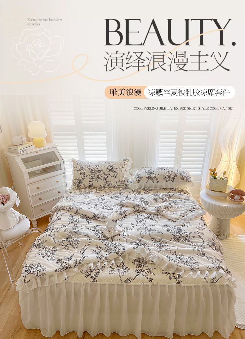 (总)慕澄家纺 2024新款小版印花床裙款乳胶凉席三件套