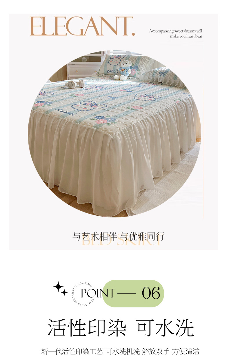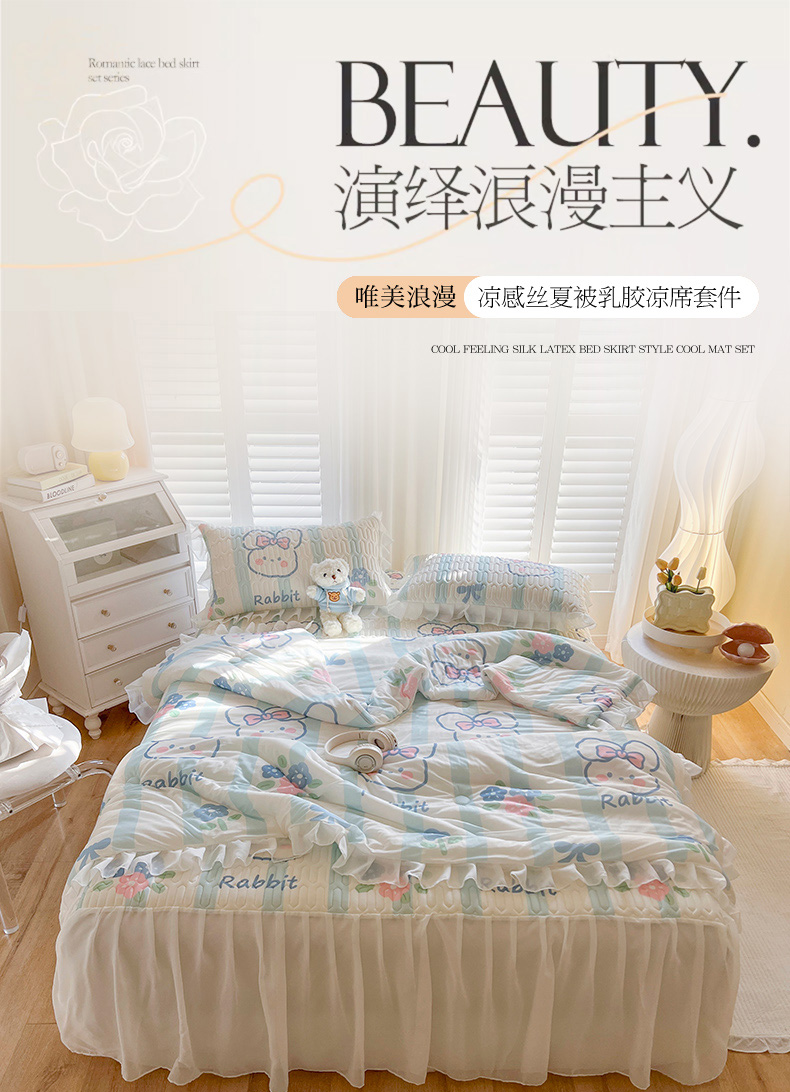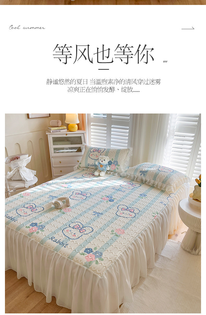 商品名称:慕澄家纺 2024新款小版印花床裙款乳胶凉席三件套 床裙款-条纹兔
