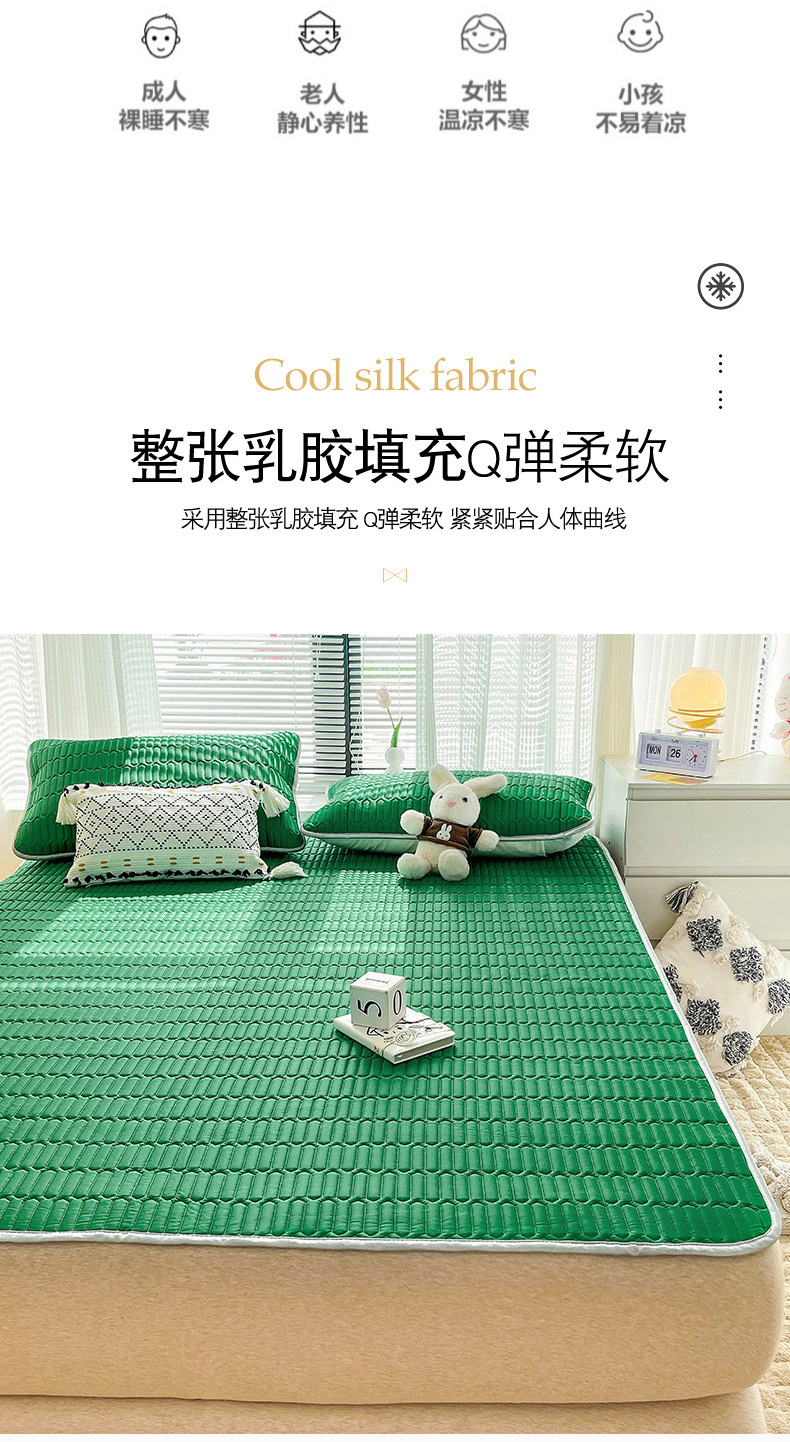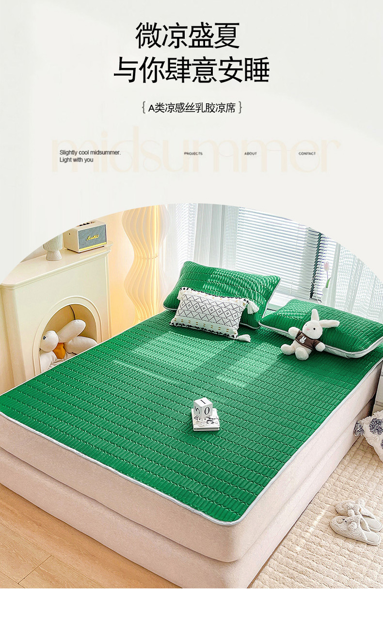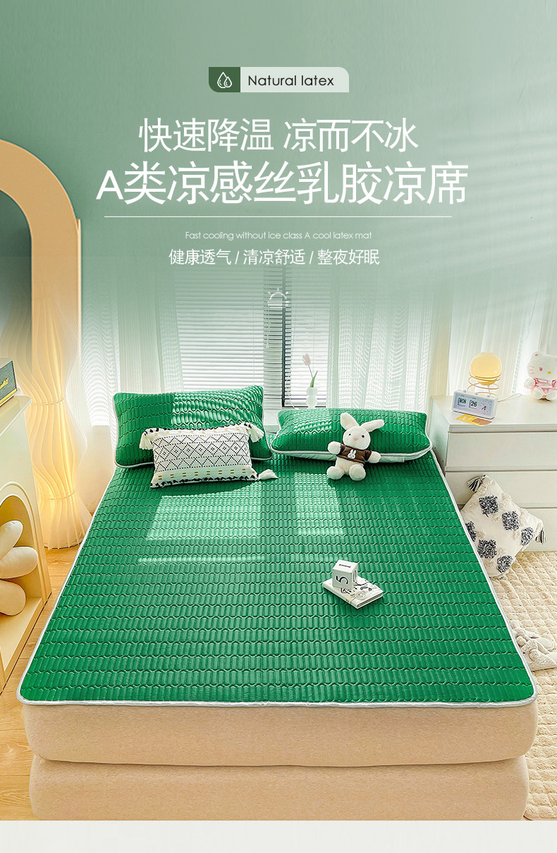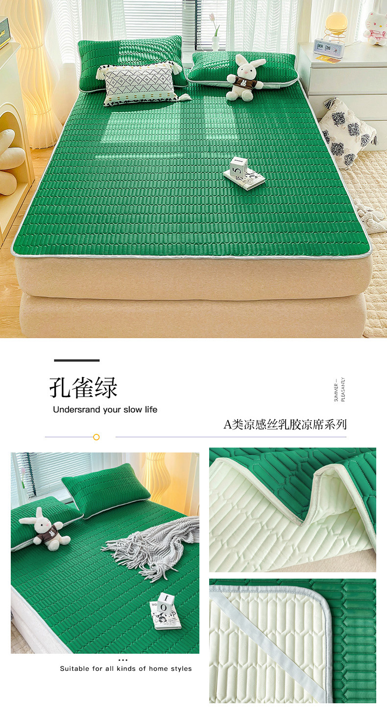 寐居家纺 2024新款A类凉感丝纯色天然乳胶凉席 孔雀绿