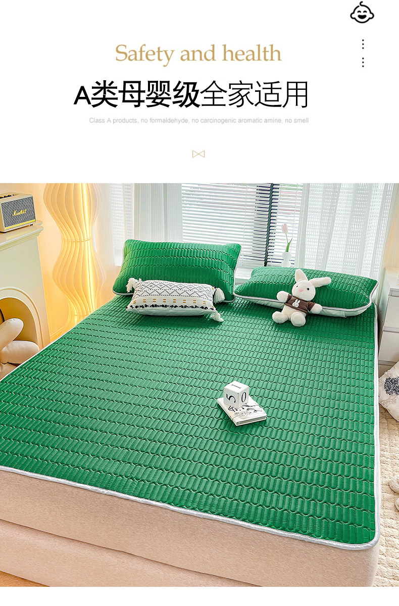 商品名称:寐居家纺 2024新款A类凉感丝纯色天然乳胶凉席 孔雀绿