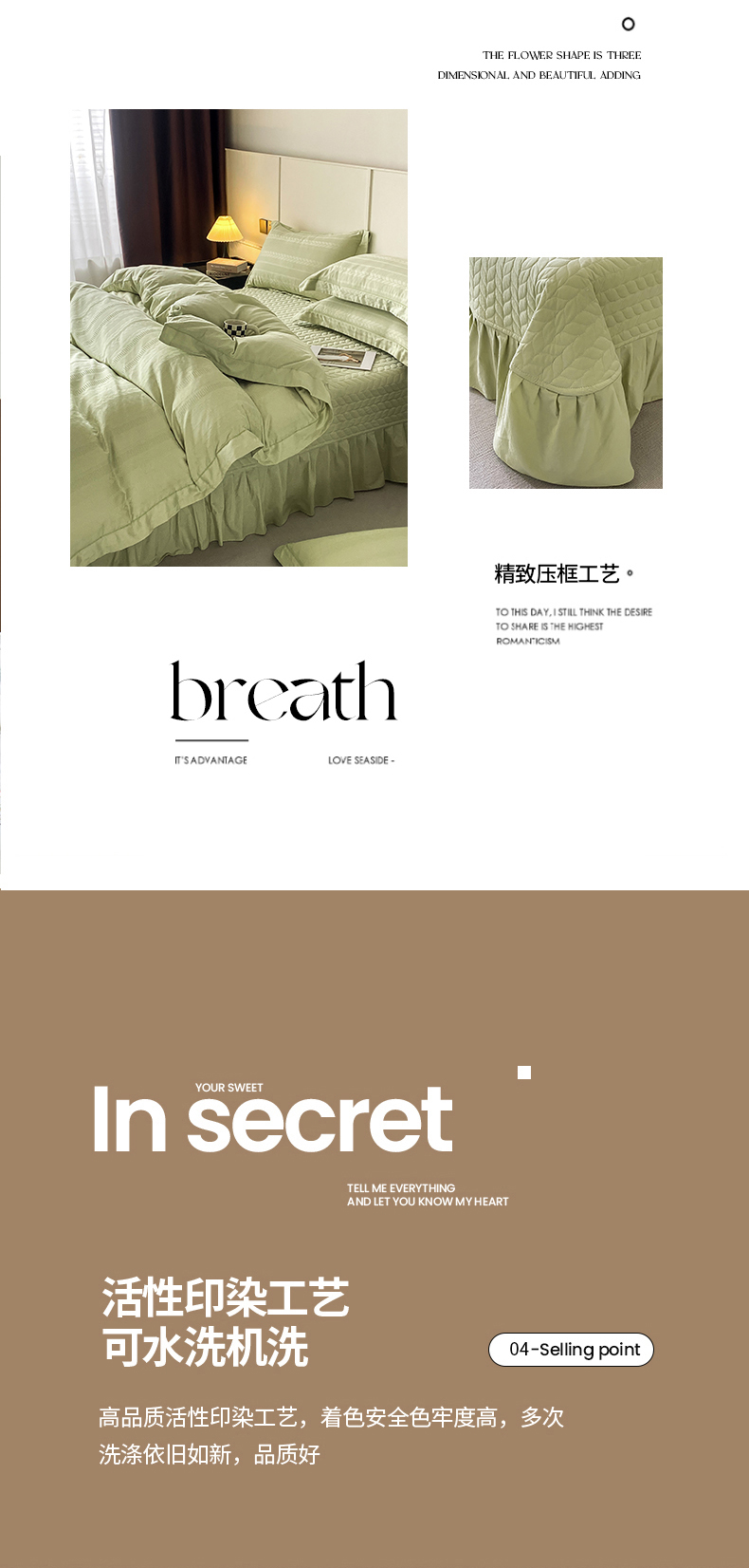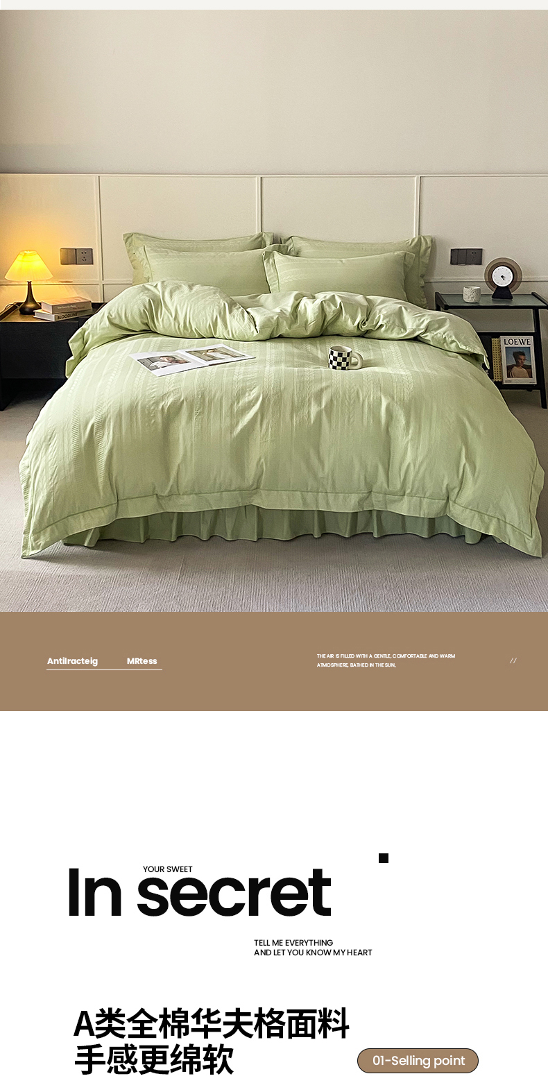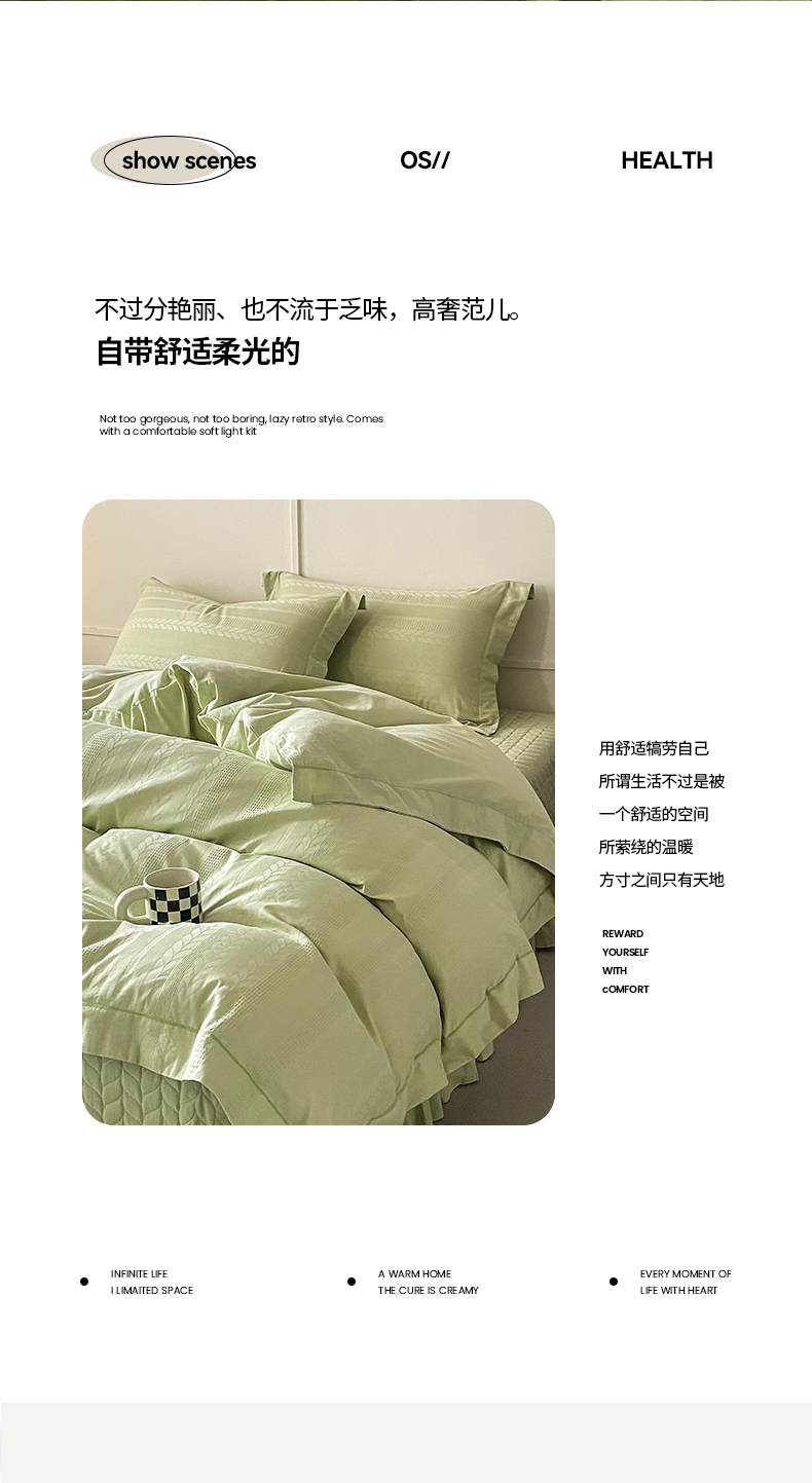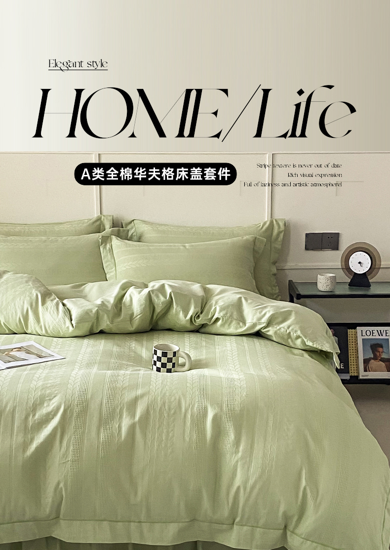 商品名称:美伦美焕 2023直播爆款纯色轻奢宽边韩版床裙全棉床盖四件套大麦果绿