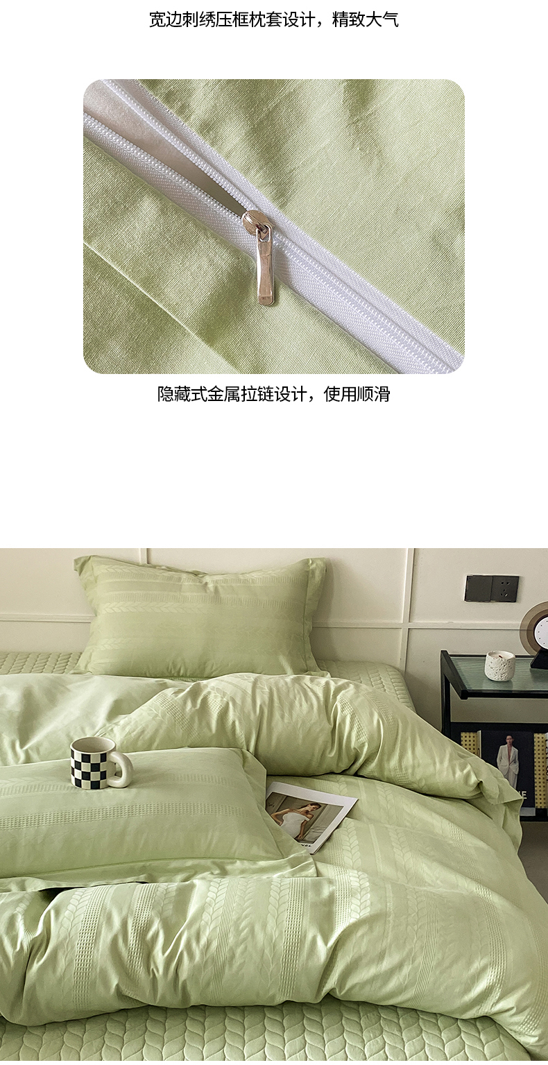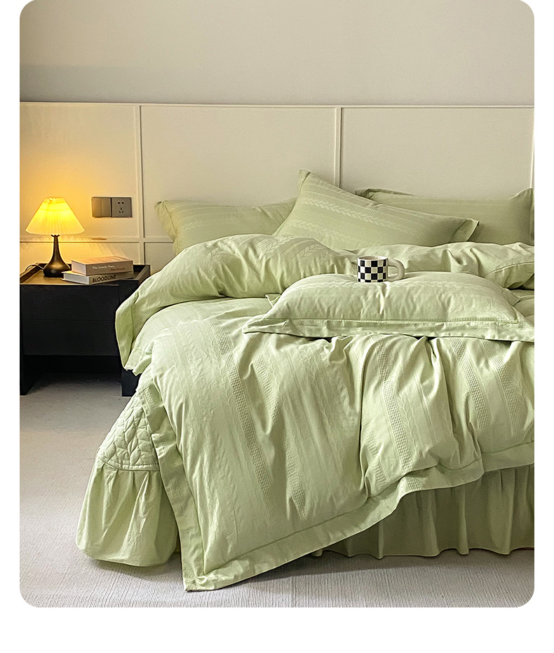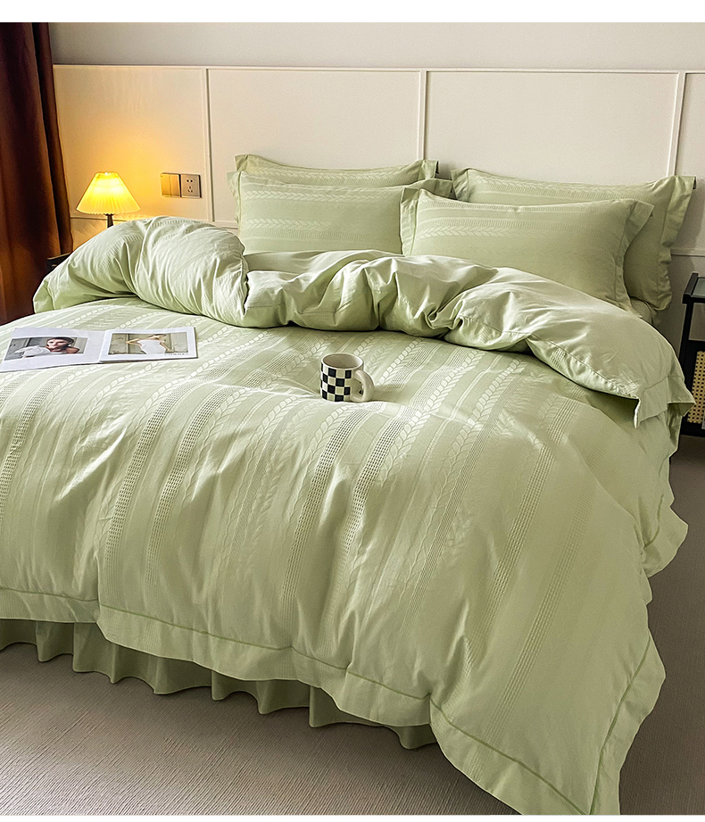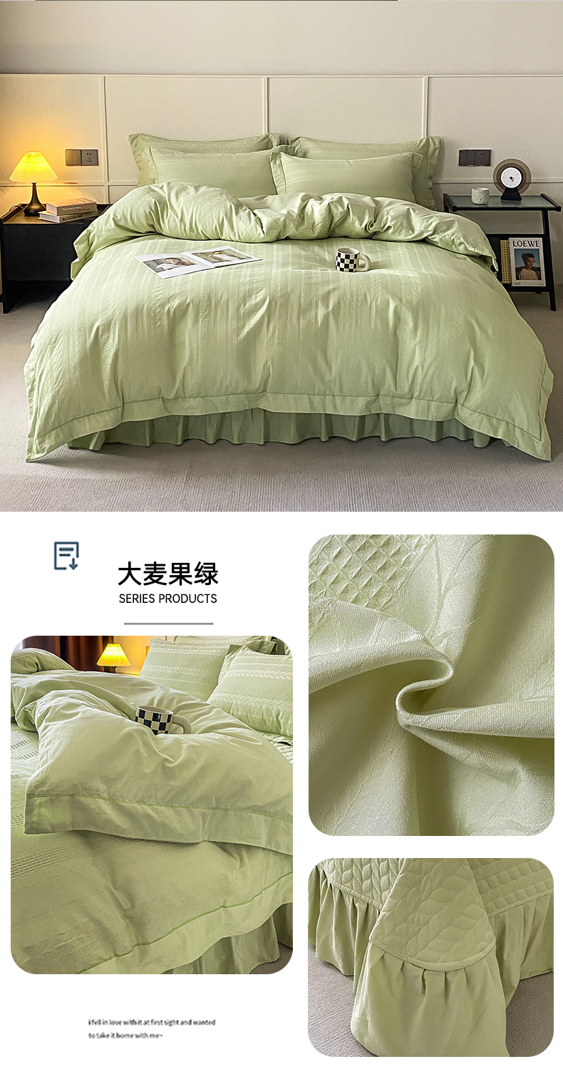 美伦美焕 2023直播爆款纯色轻奢宽边韩版床裙全棉床盖四件套大麦果绿