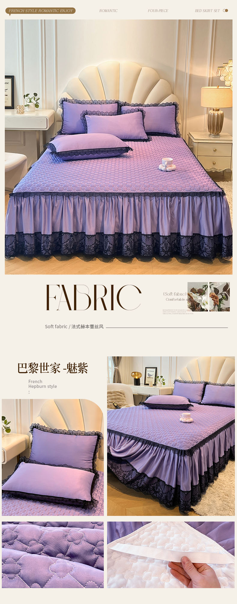 (总)恋尚 2025新款韩式蕾丝丝光棉夹棉床裙四件套,蜜芙-浅蓝,蜜芙-米黄,蜜芙-蜜桃粉,蜜芙-浅白,蜜芙-水绿,蜜芙-香芋紫