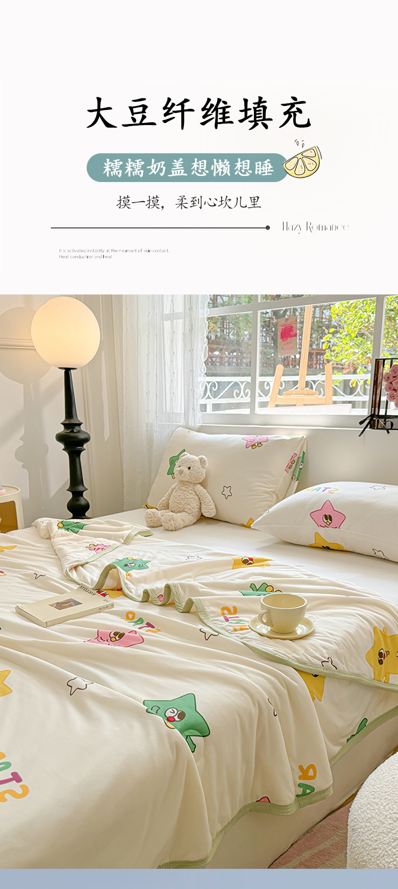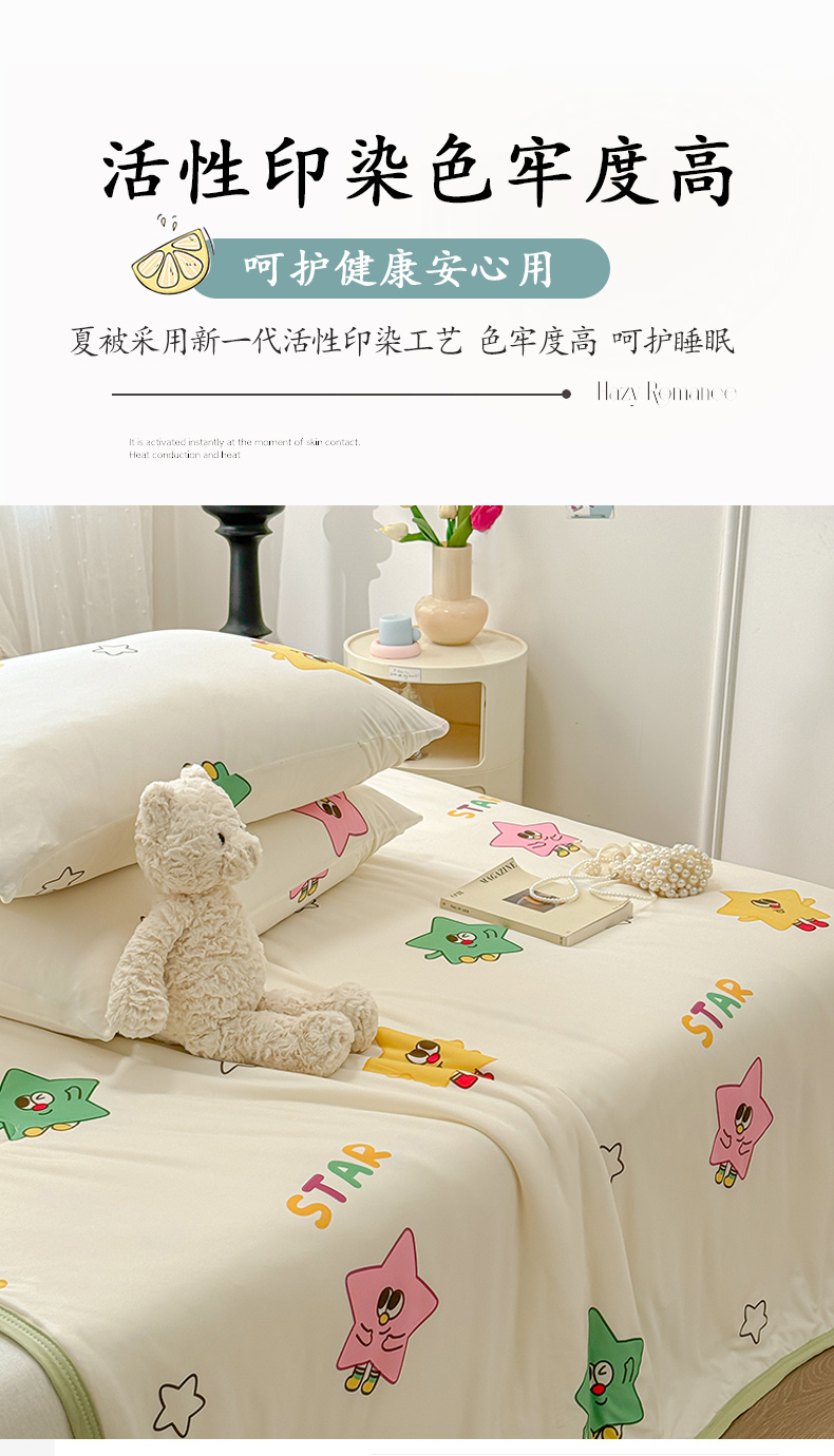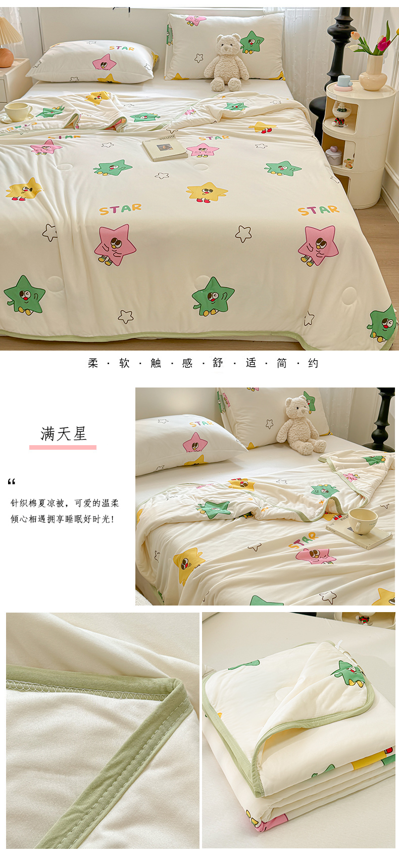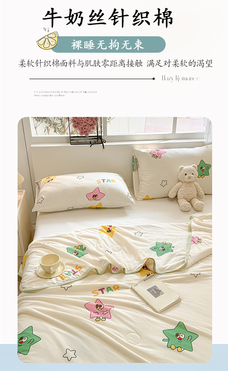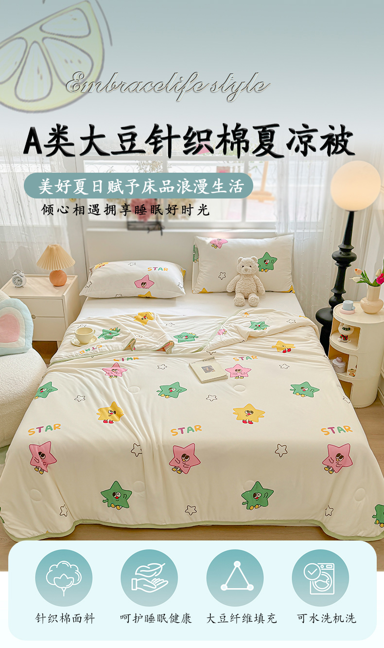 商品名称:葡萄家 2024新款A类母婴级大豆纤维牛奶丝针织棉夏凉被 满天星