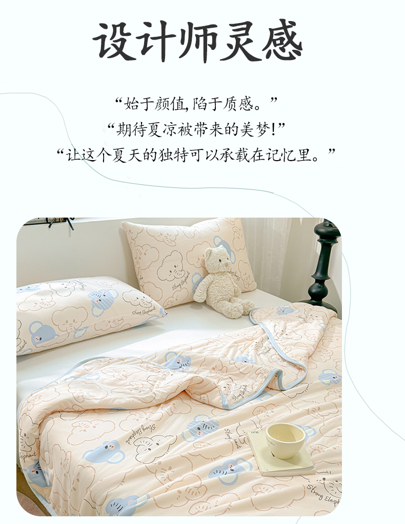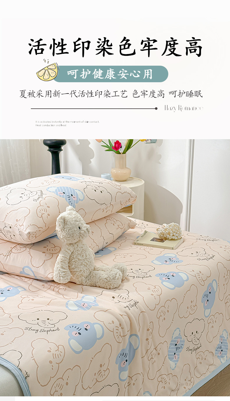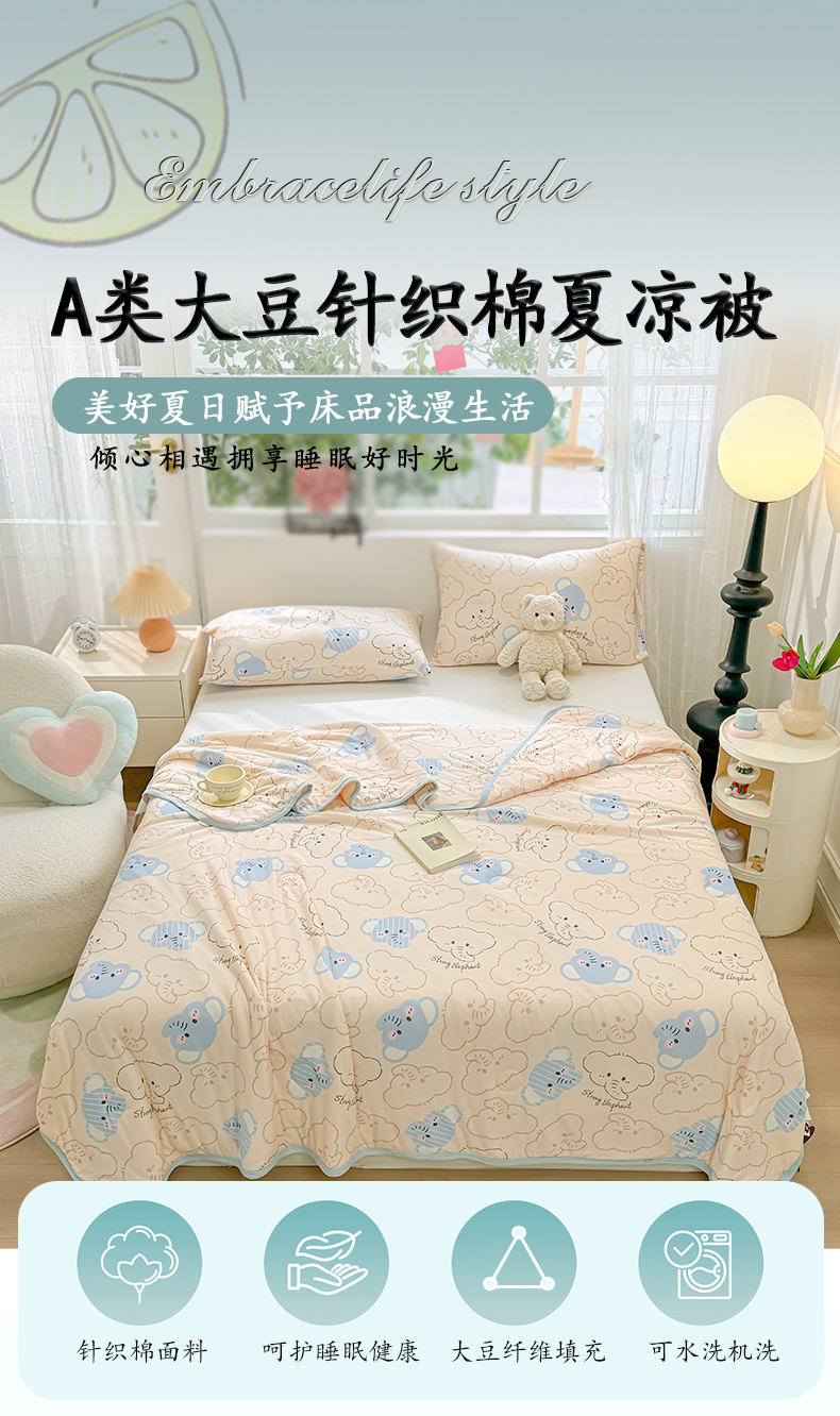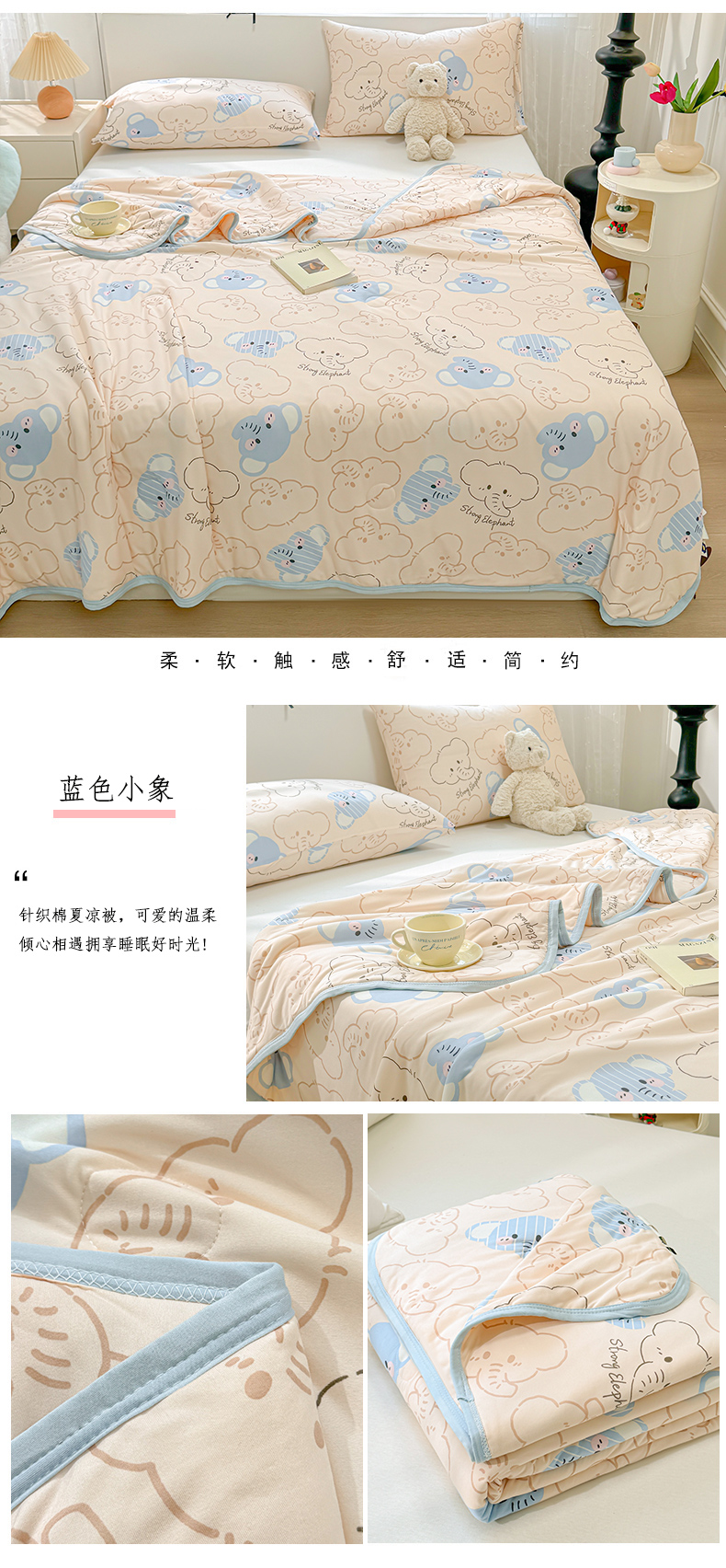 商品名称:葡萄家 2024新款A类母婴级大豆纤维牛奶丝针织棉夏凉被 蓝色小象