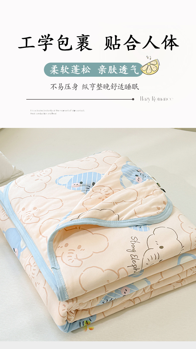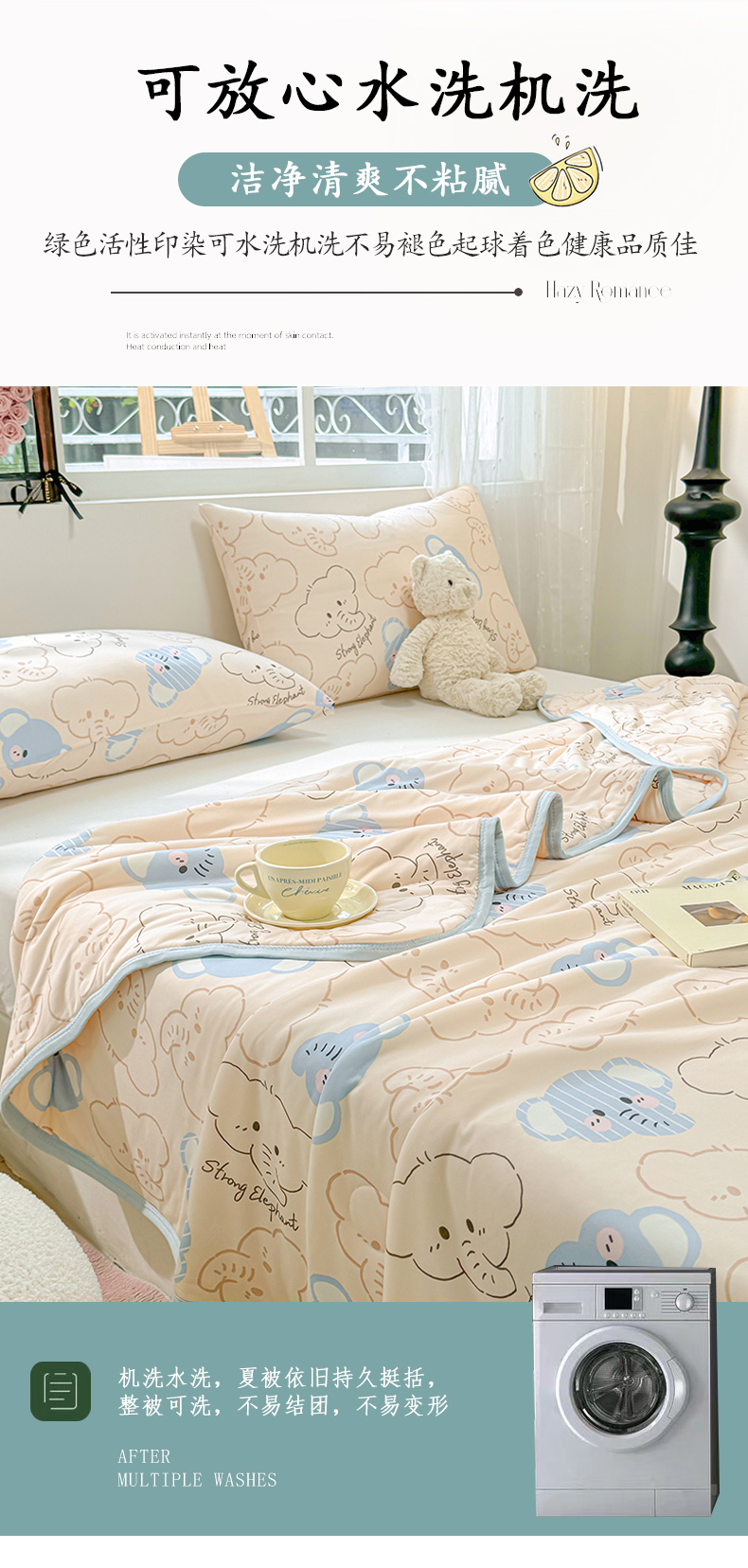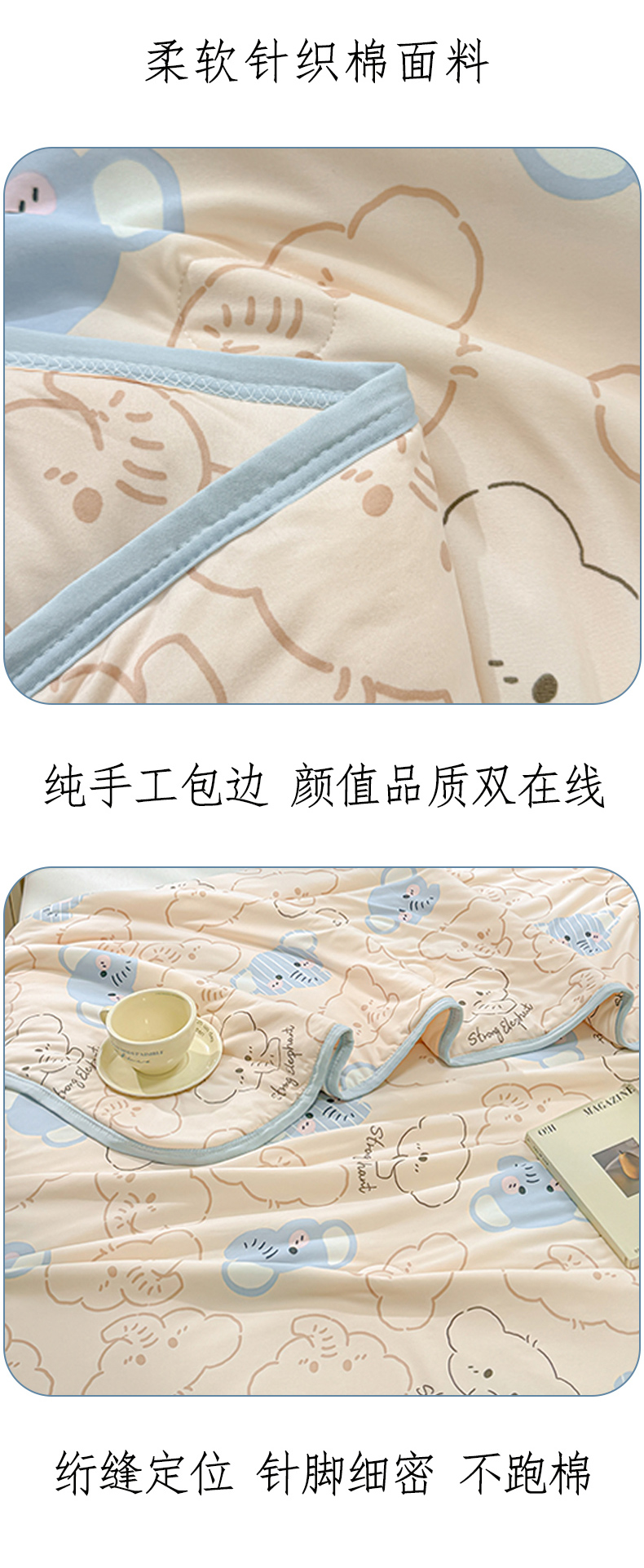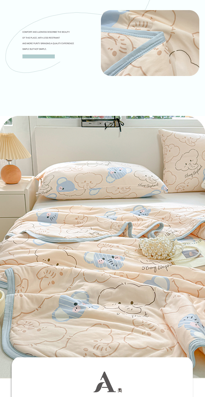 商品名称:葡萄家 2024新款A类母婴级大豆纤维牛奶丝针织棉夏凉被 蓝色小象