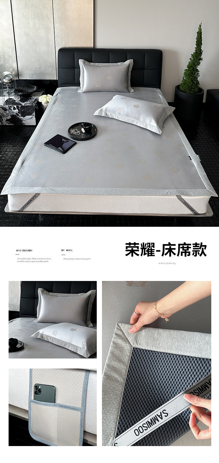 商品名称:三味舒屋 2025新款轻奢主义抗菌防螨凉感提花冰丝养生席床席款 荣耀