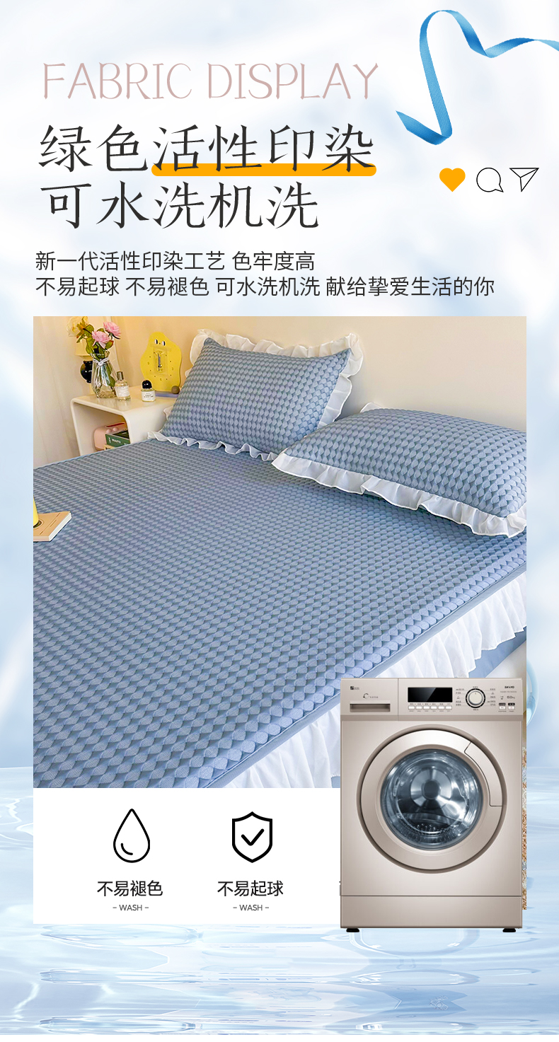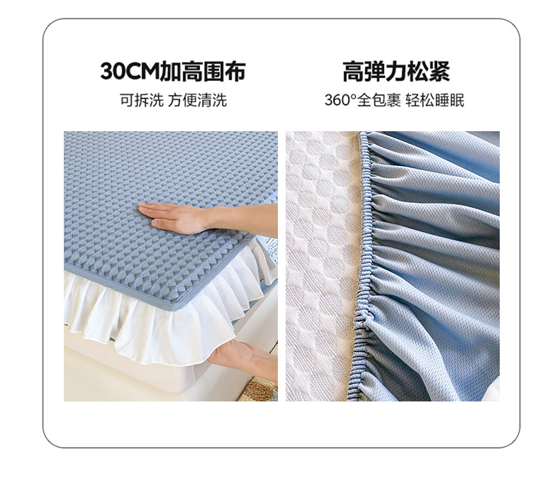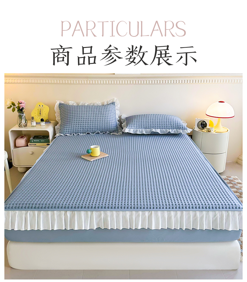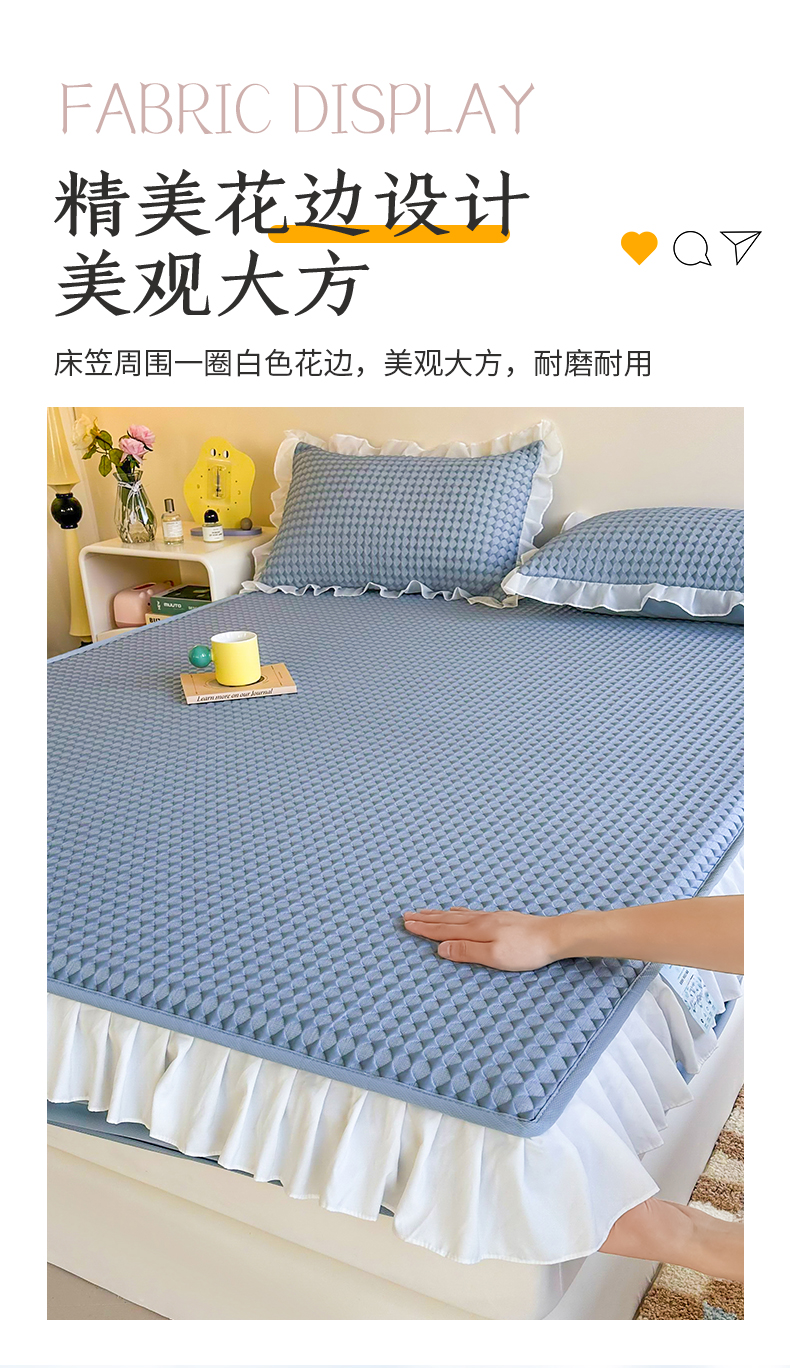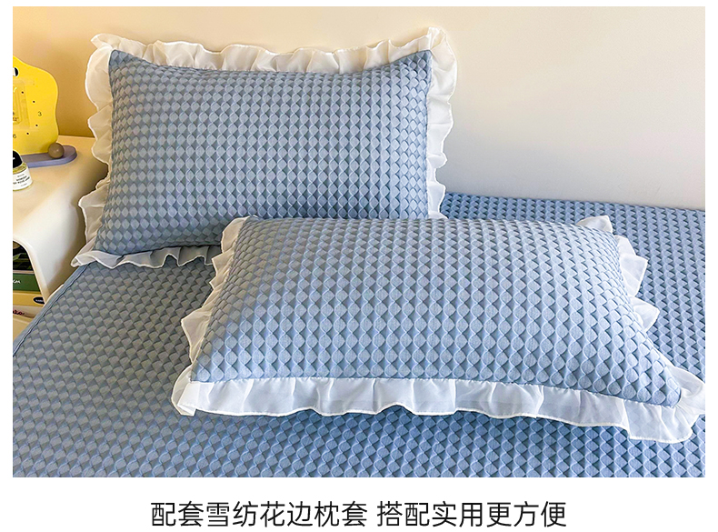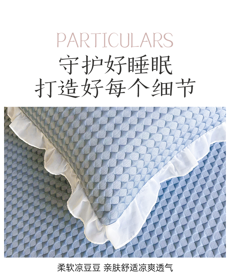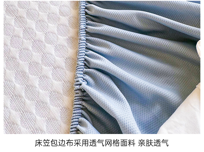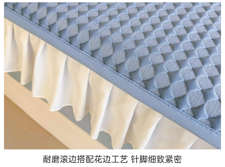 商品名称:屹成家纺 2024新款PE高分子凉豆豆冰丝凉席床笠款 菱形格-蓝灰