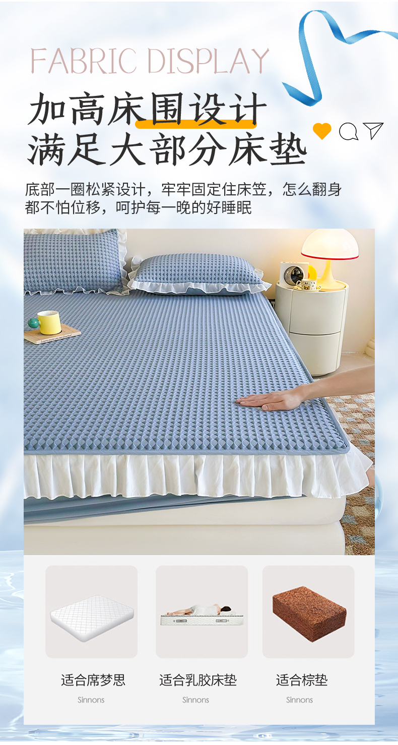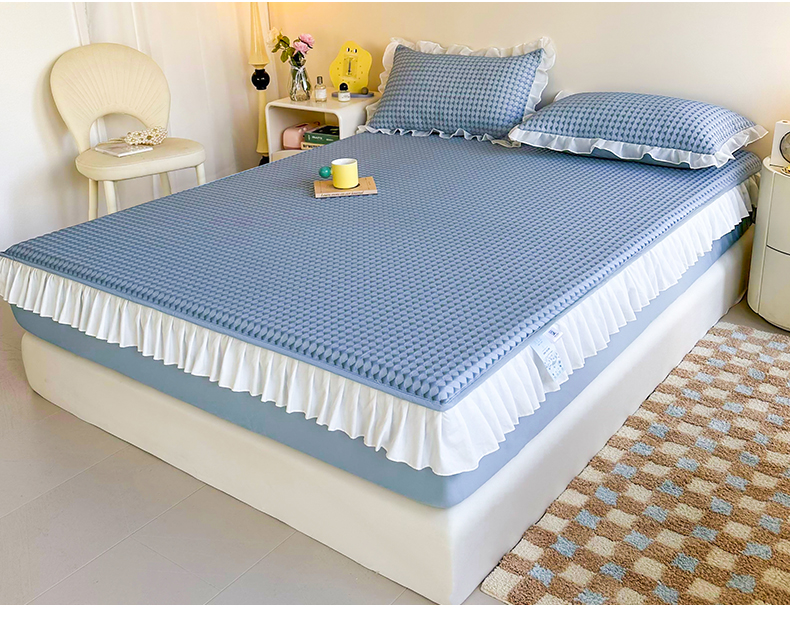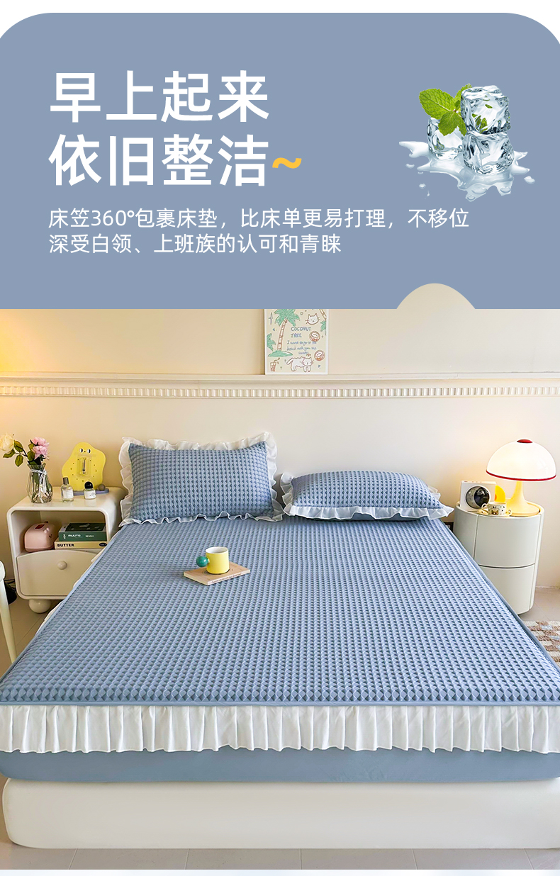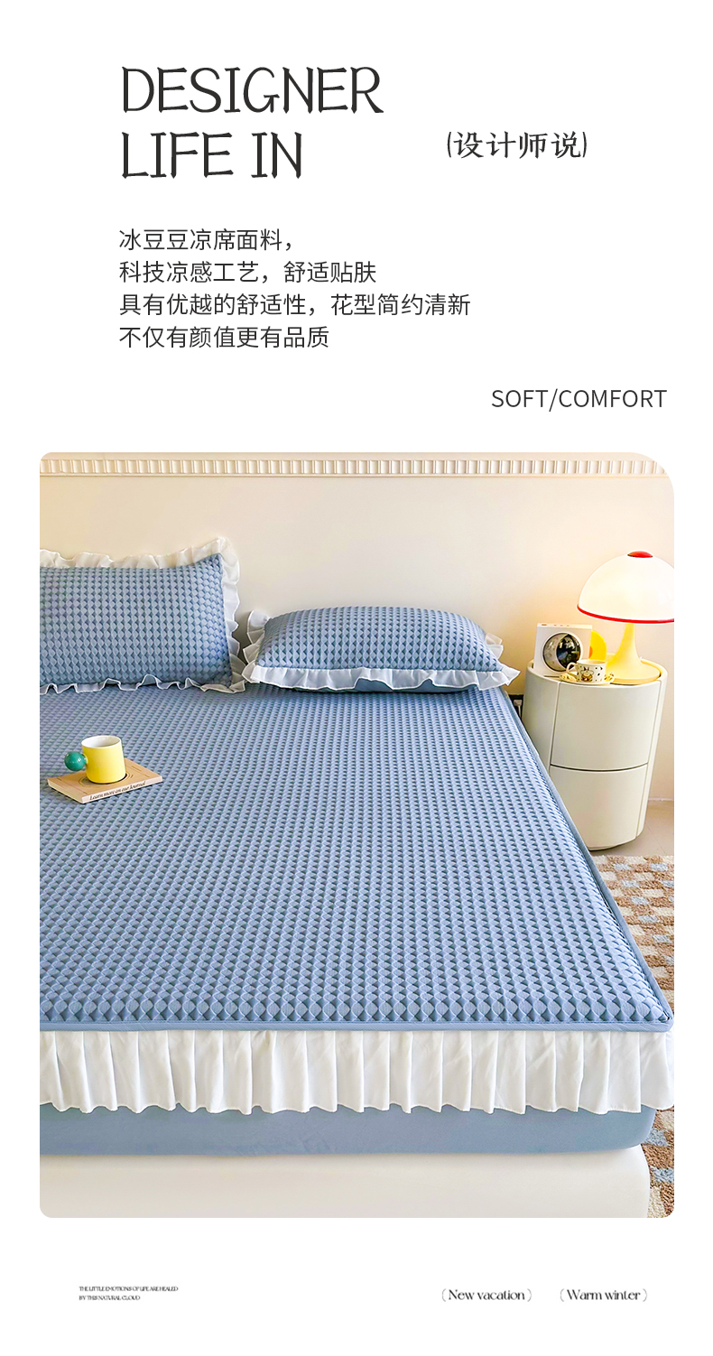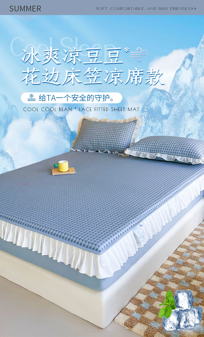 屹成家纺 2024新款PE高分子凉豆豆冰丝凉席床笠款 菱形格-蓝灰