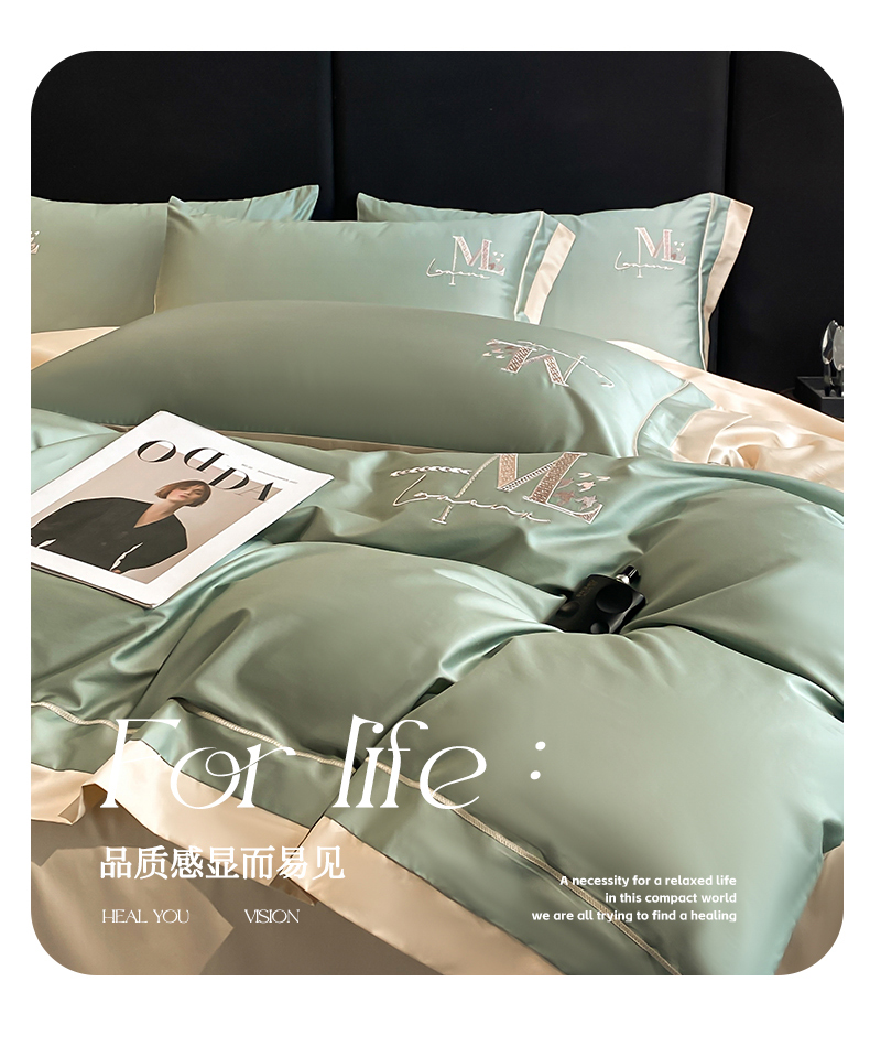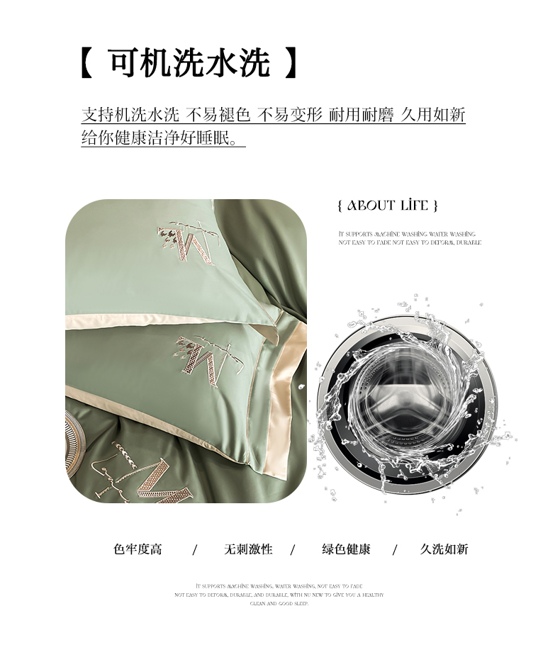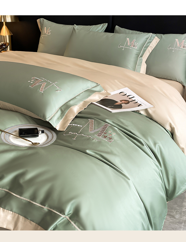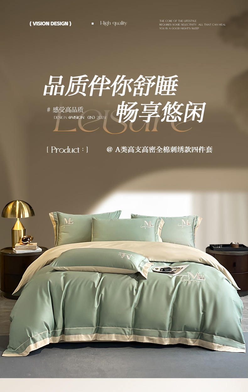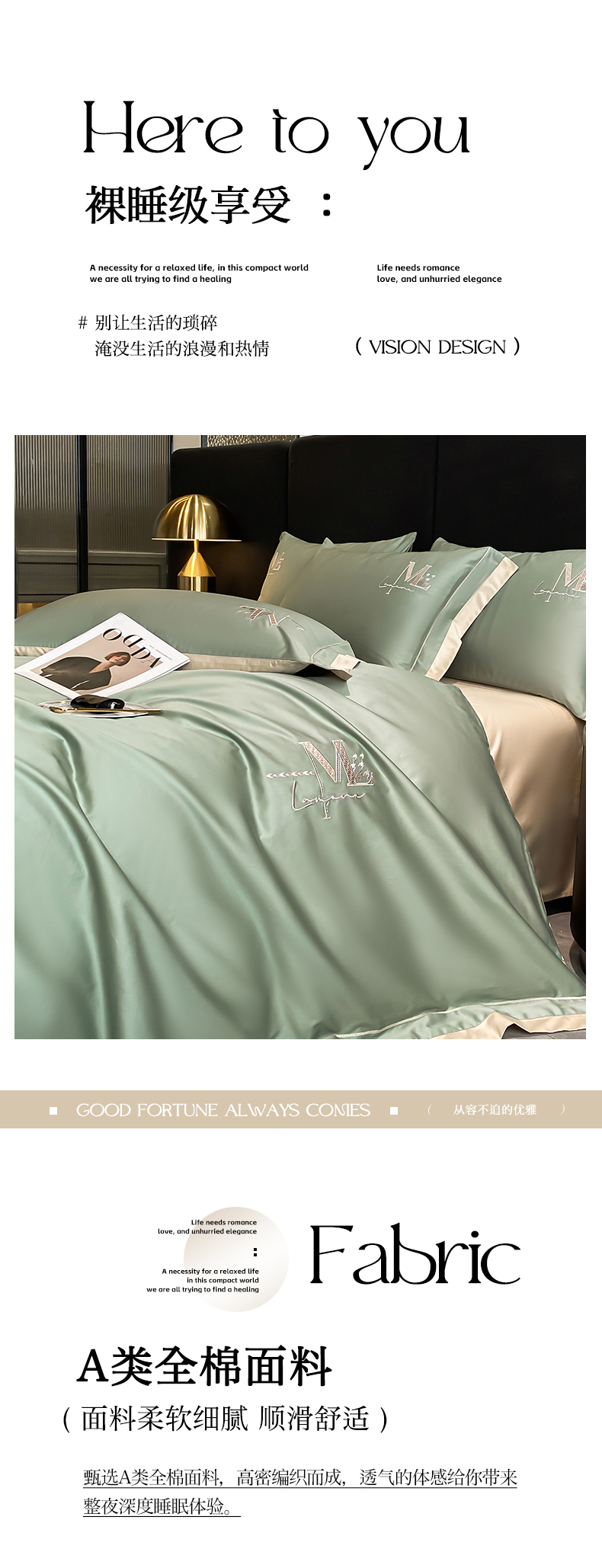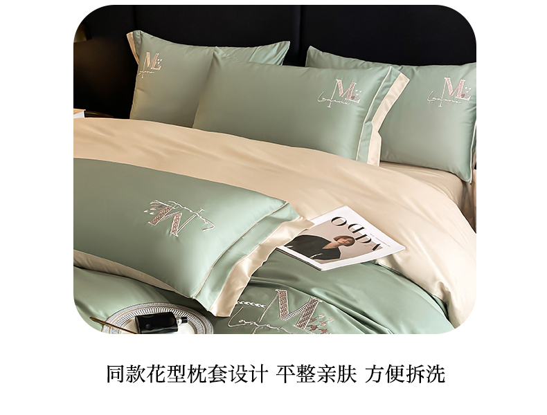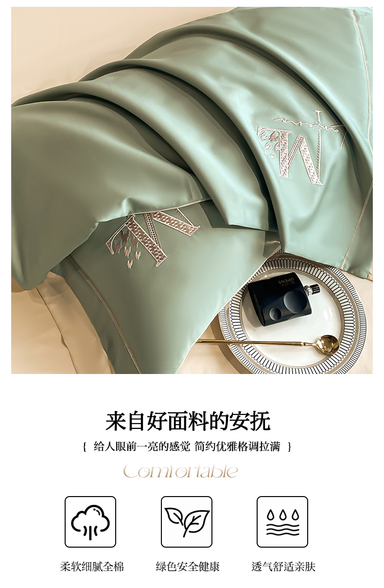 商品名称:拼社家纺 长绒棉全棉刺绣四件套-M系列 阿克曼绿
